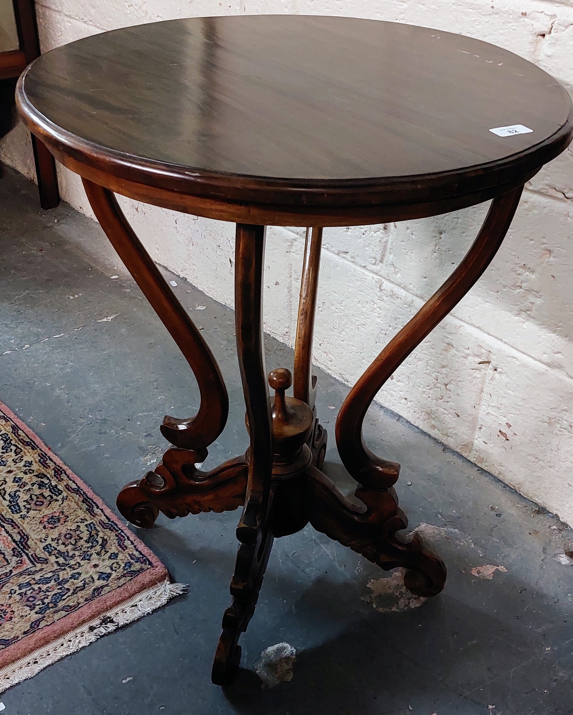 Round Mahogany Occasional Table on Carved Base - C. 59cm W x 74cm H