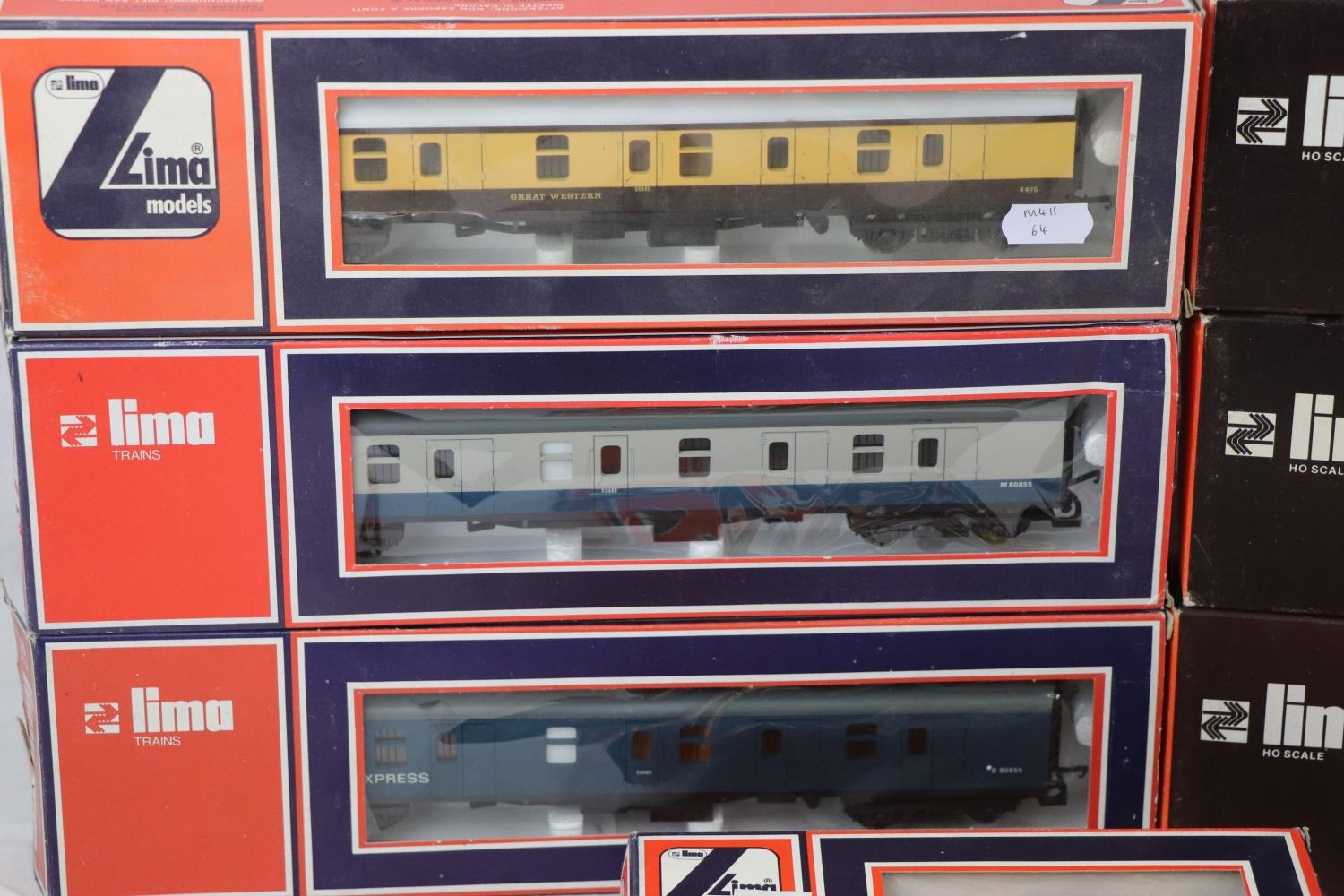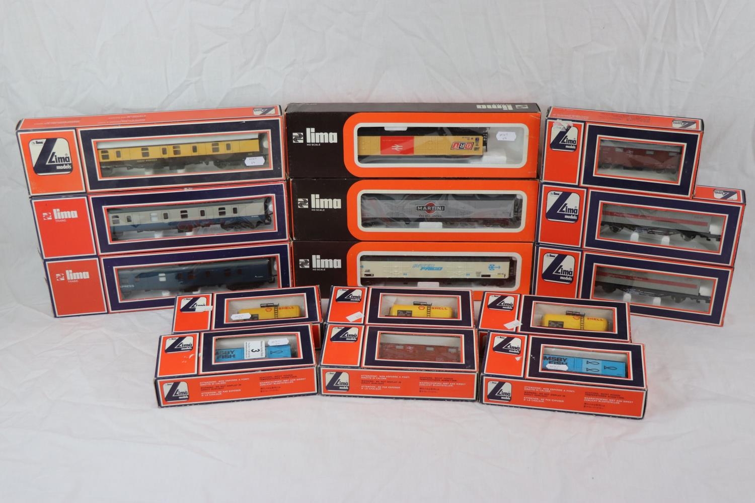 15 Boxed Lima OO gauge items of rolling stock to include coaches, vans and wagons