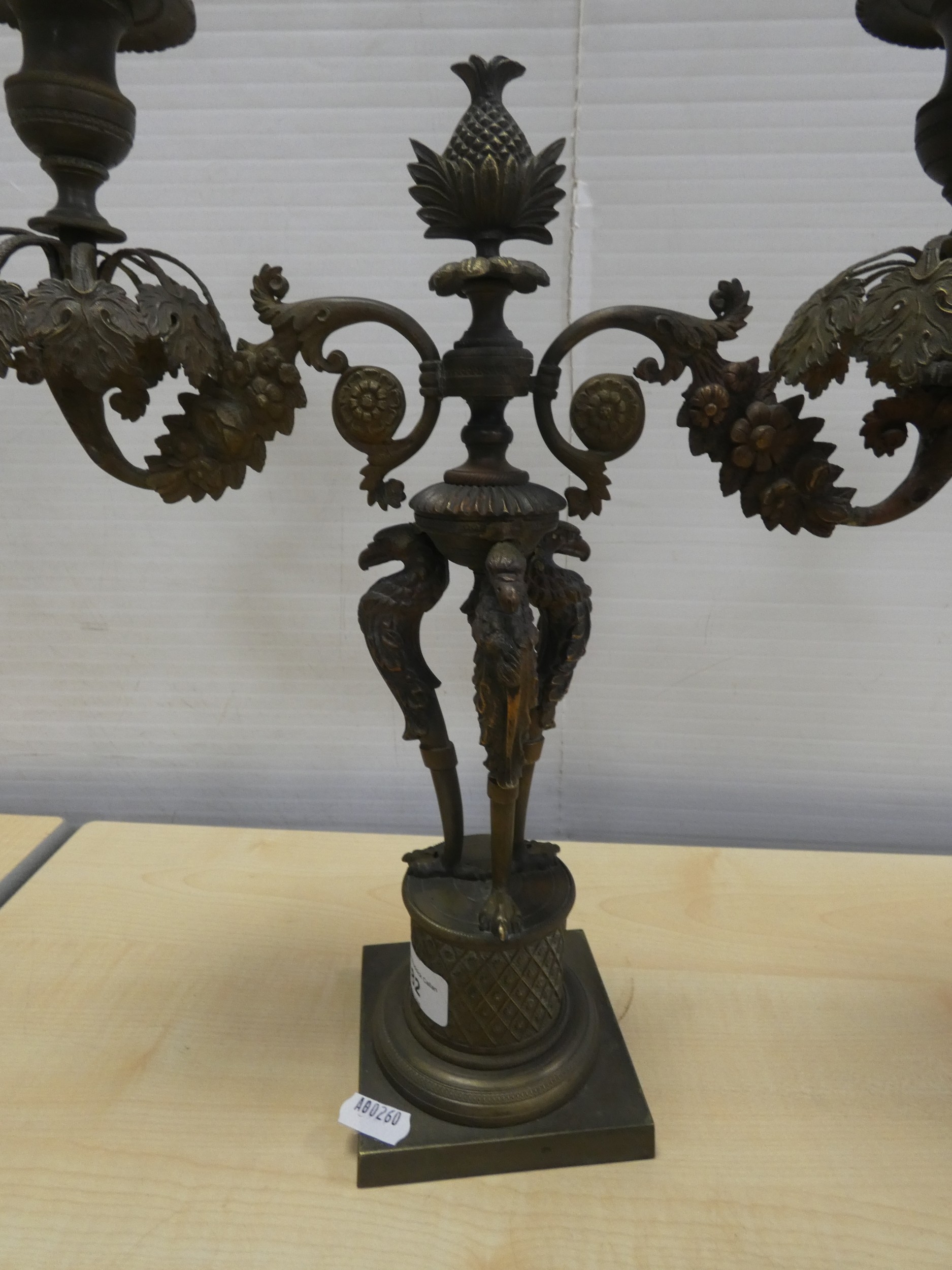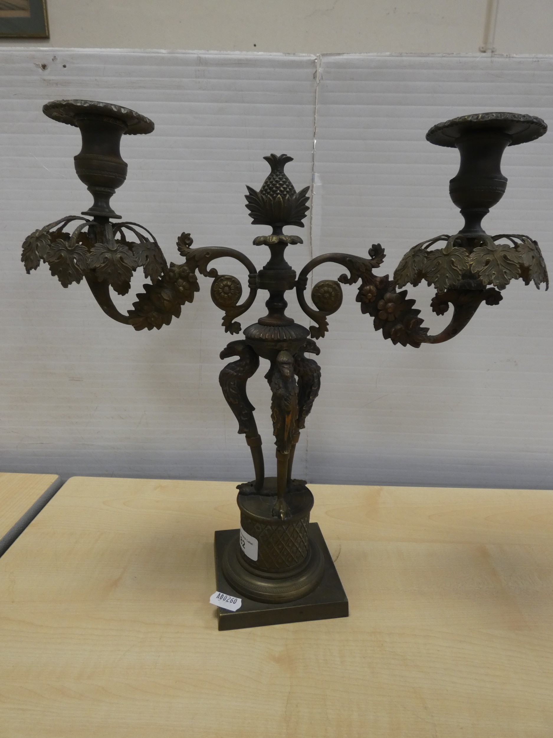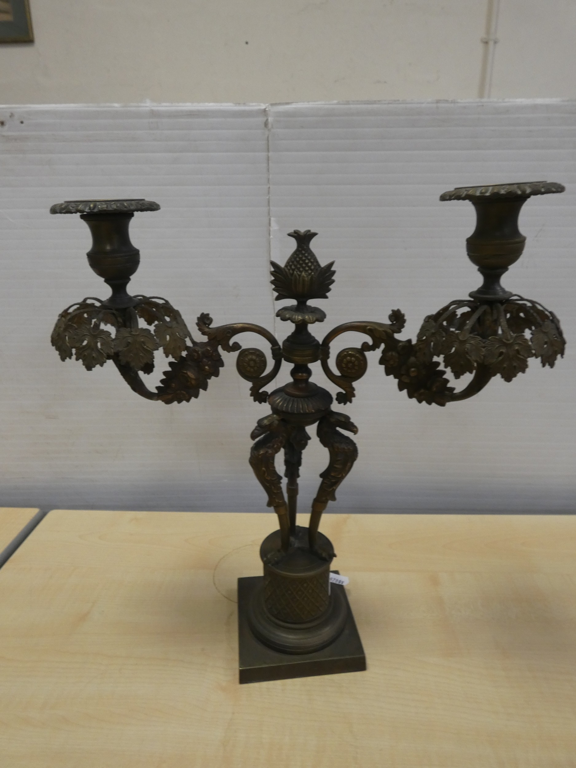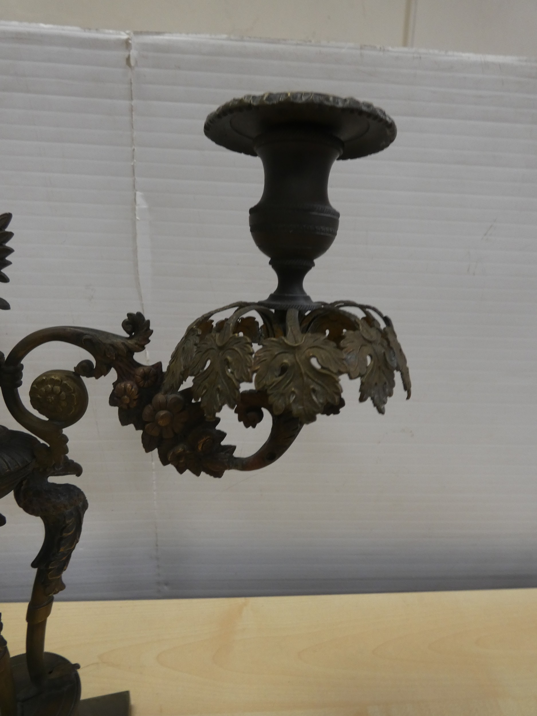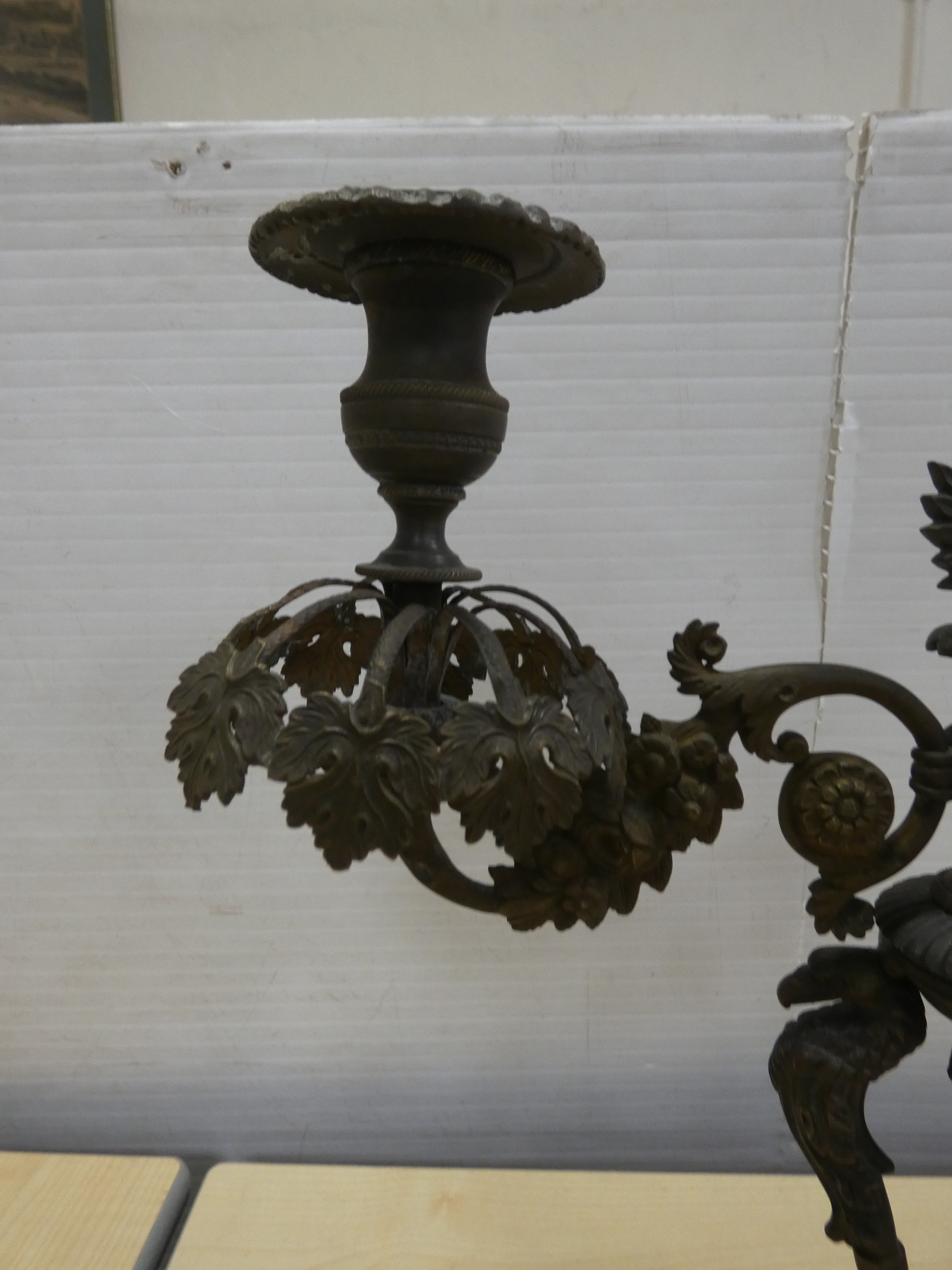 French cast bronze candleabrum, decorated with flowerheads and standing griffins.
