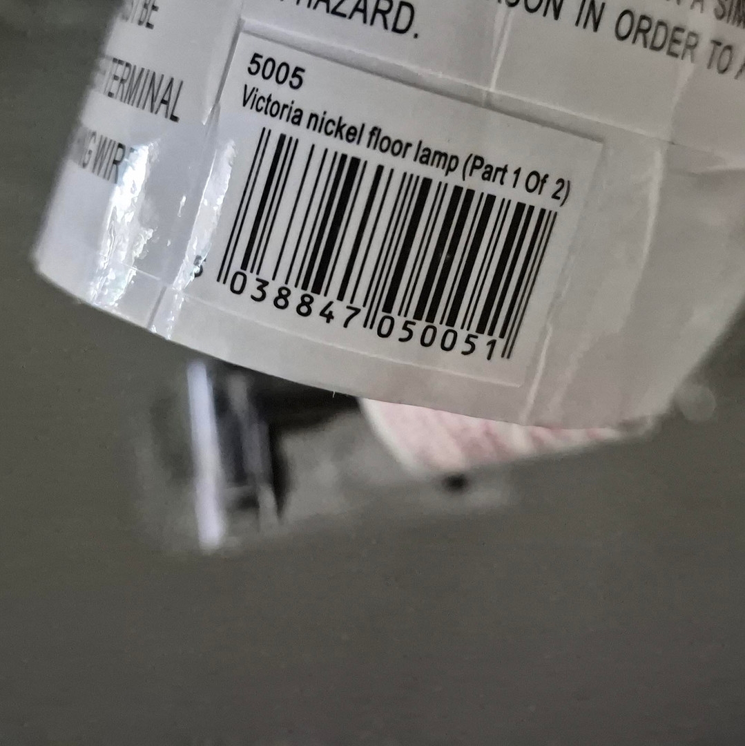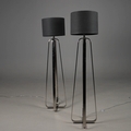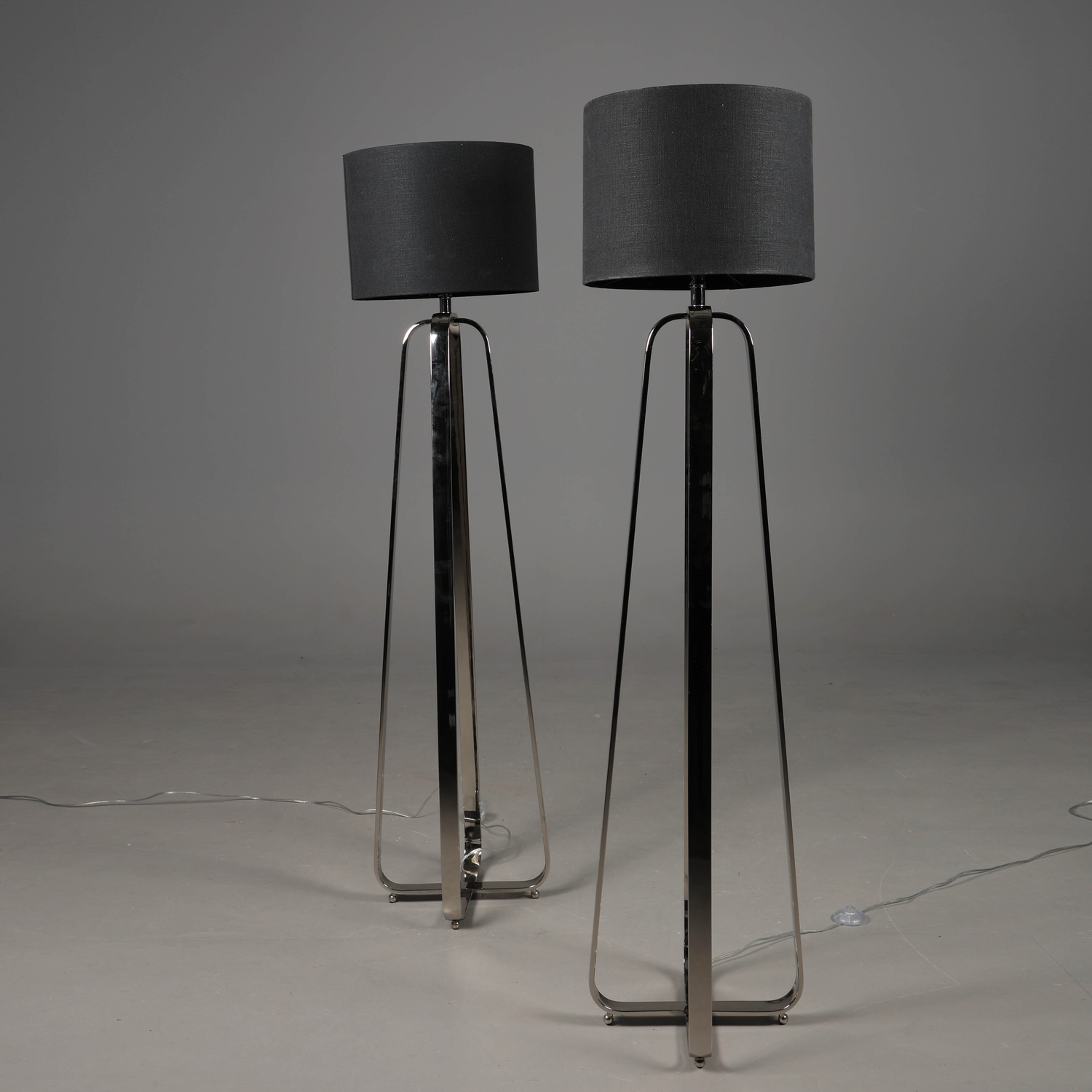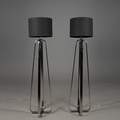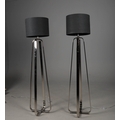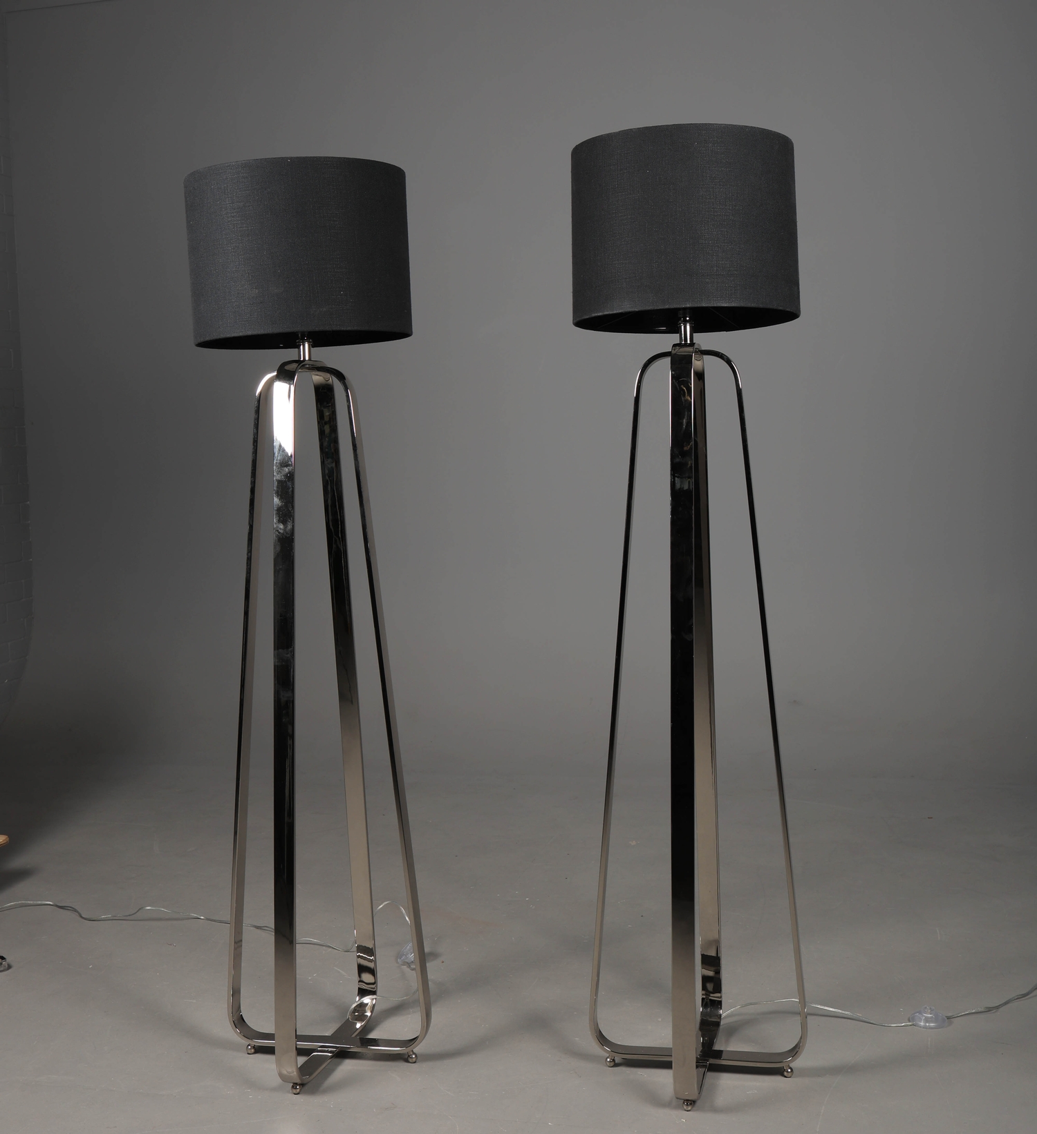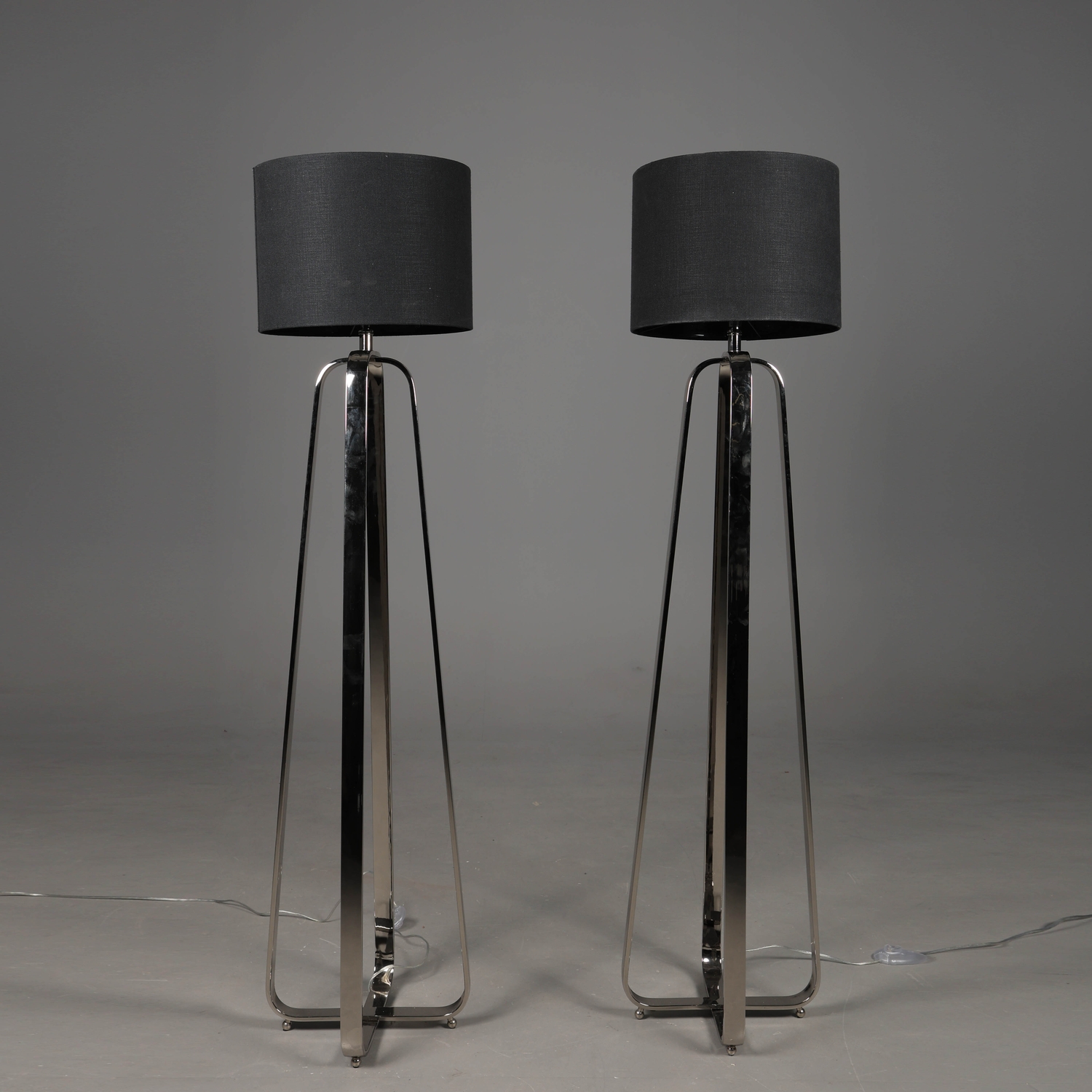R V ASTLEY VICTORIA NICKLE FLOOR LAMPS, A PAIR. with shades. (2).