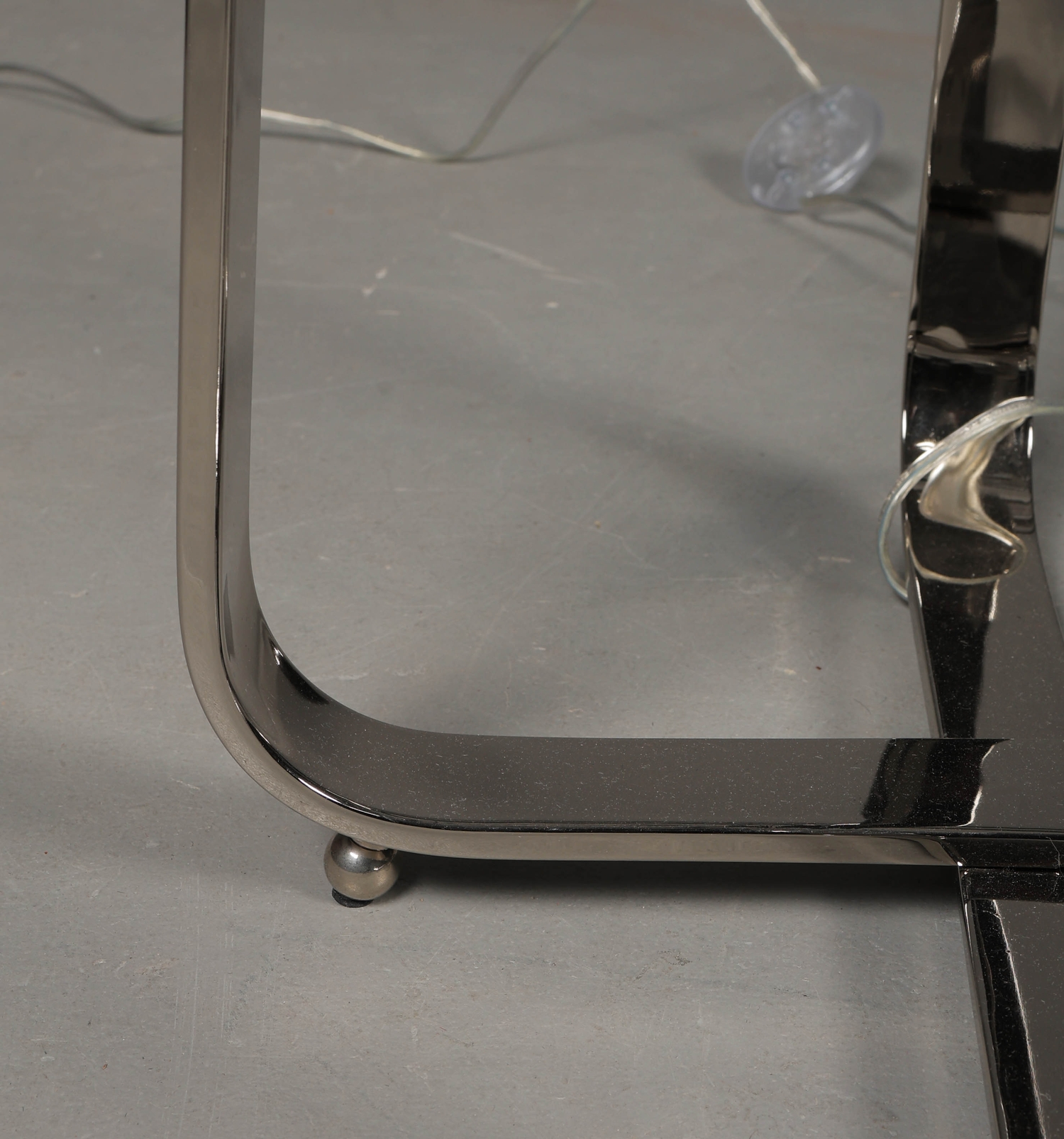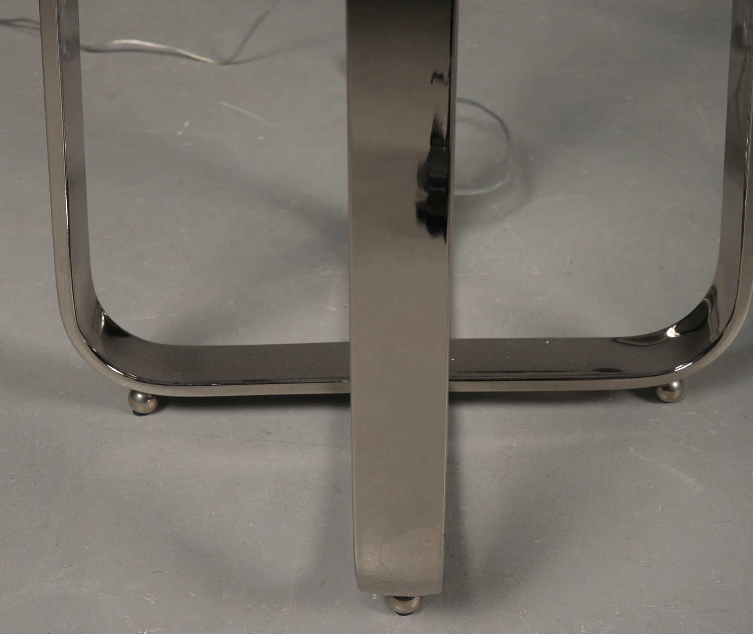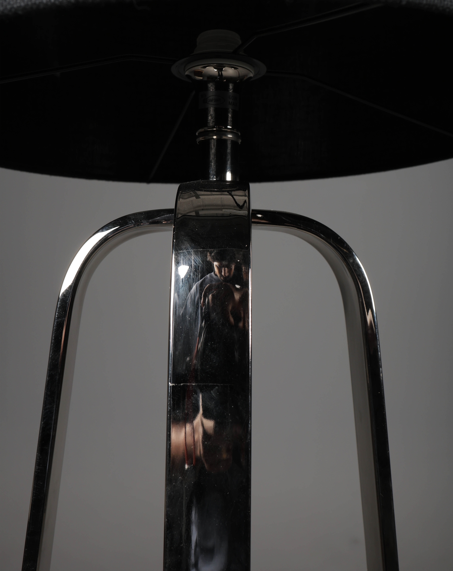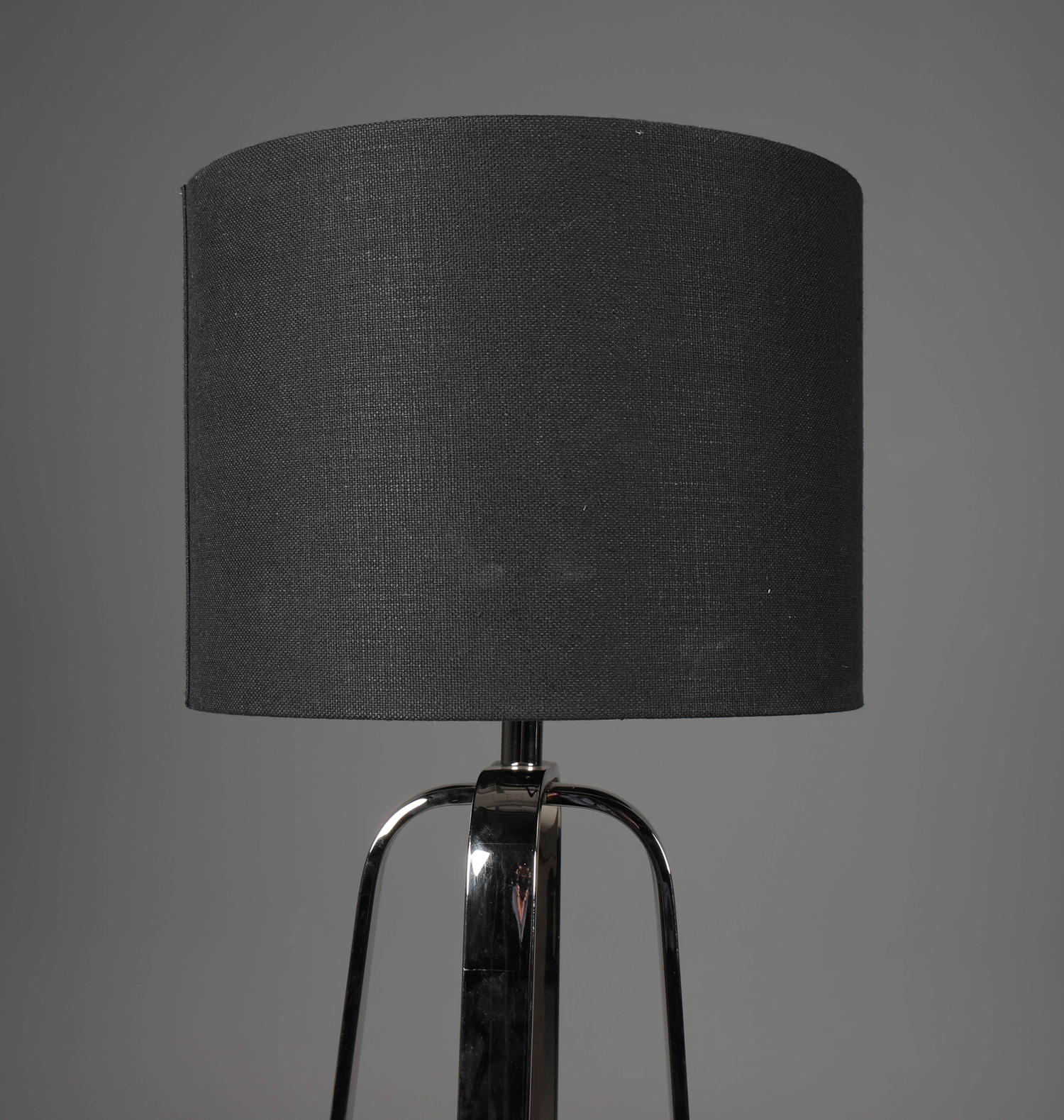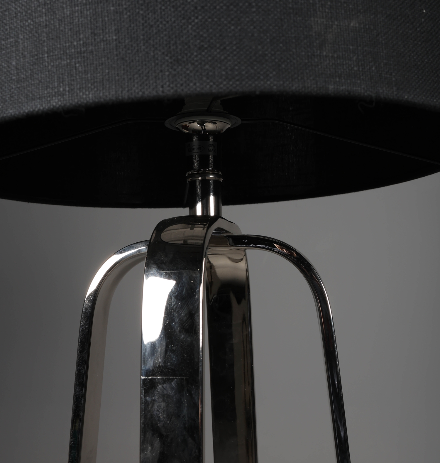 R V ASTLEY VICTORIA NICKLE FLOOR LAMPS, A PAIR. with shades. (2).