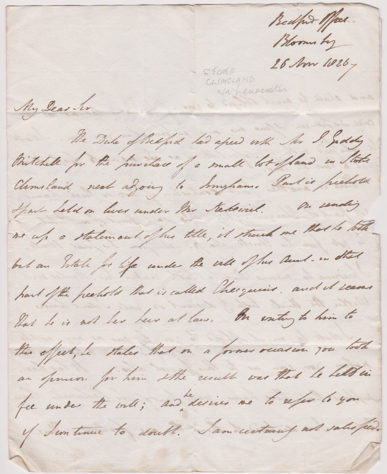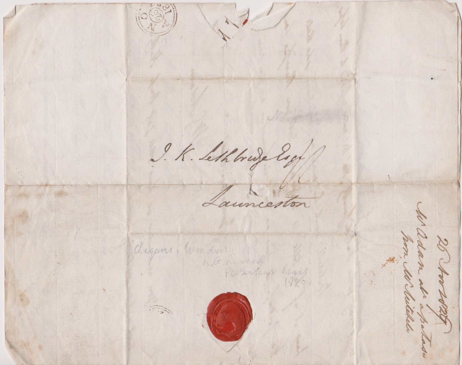 Great Britain 1826-EL dated 26th Nov 1826-posted to Launceston cancelled black 2 ring No26 1826 cancel-included is information on letter writer W.G. Adam