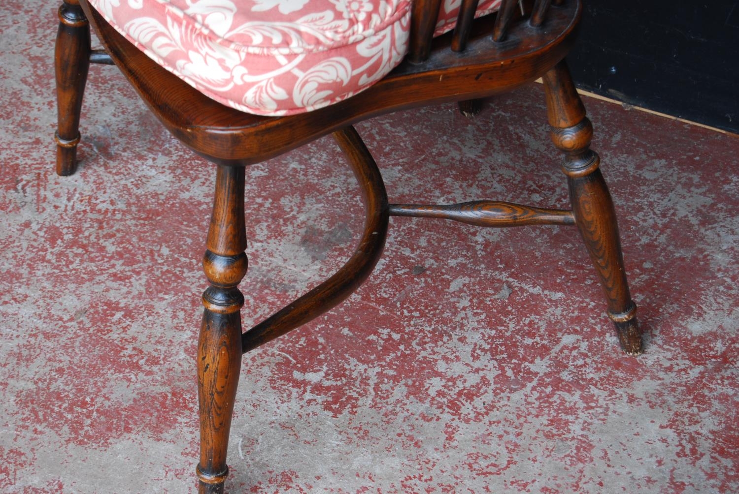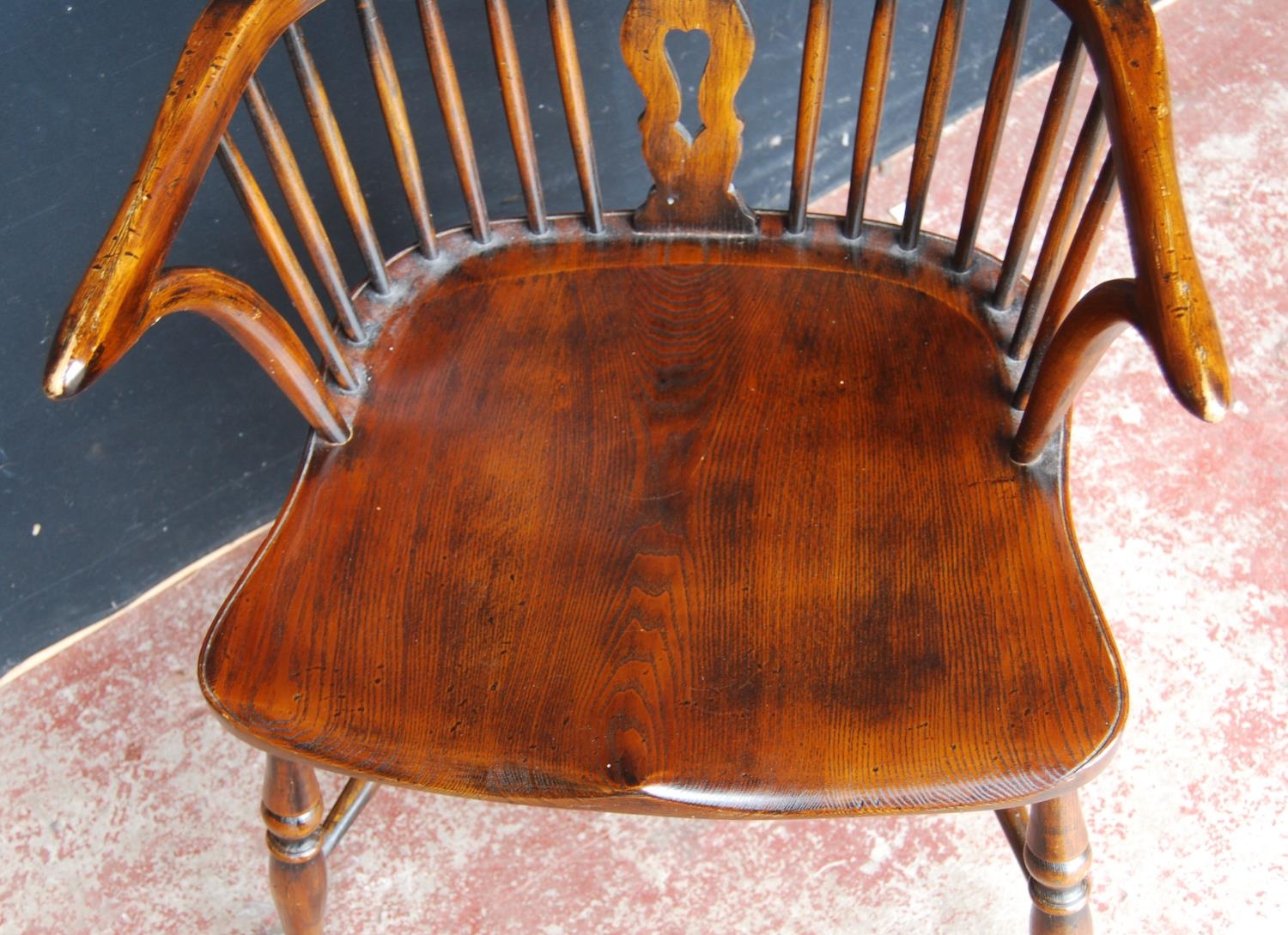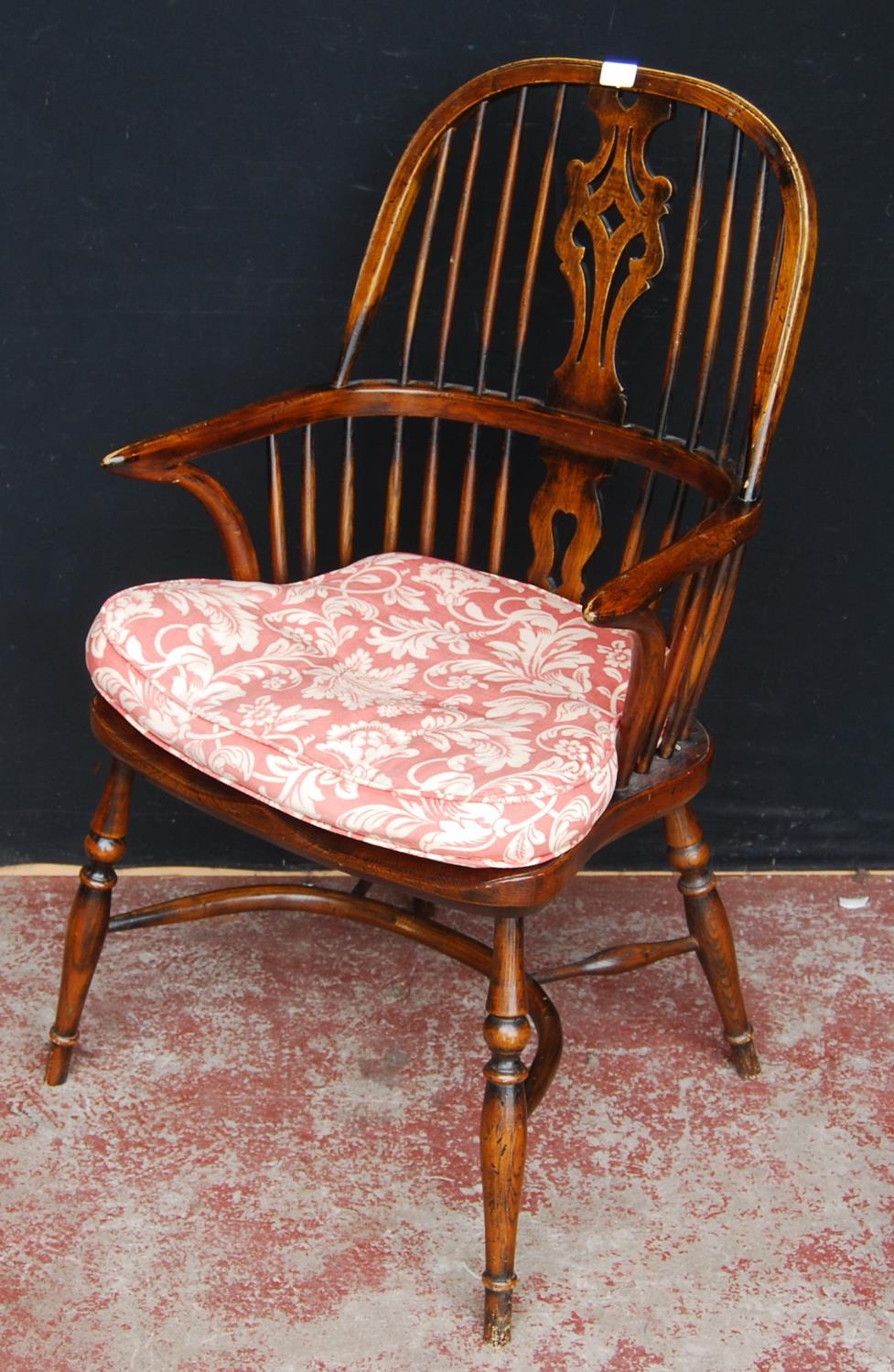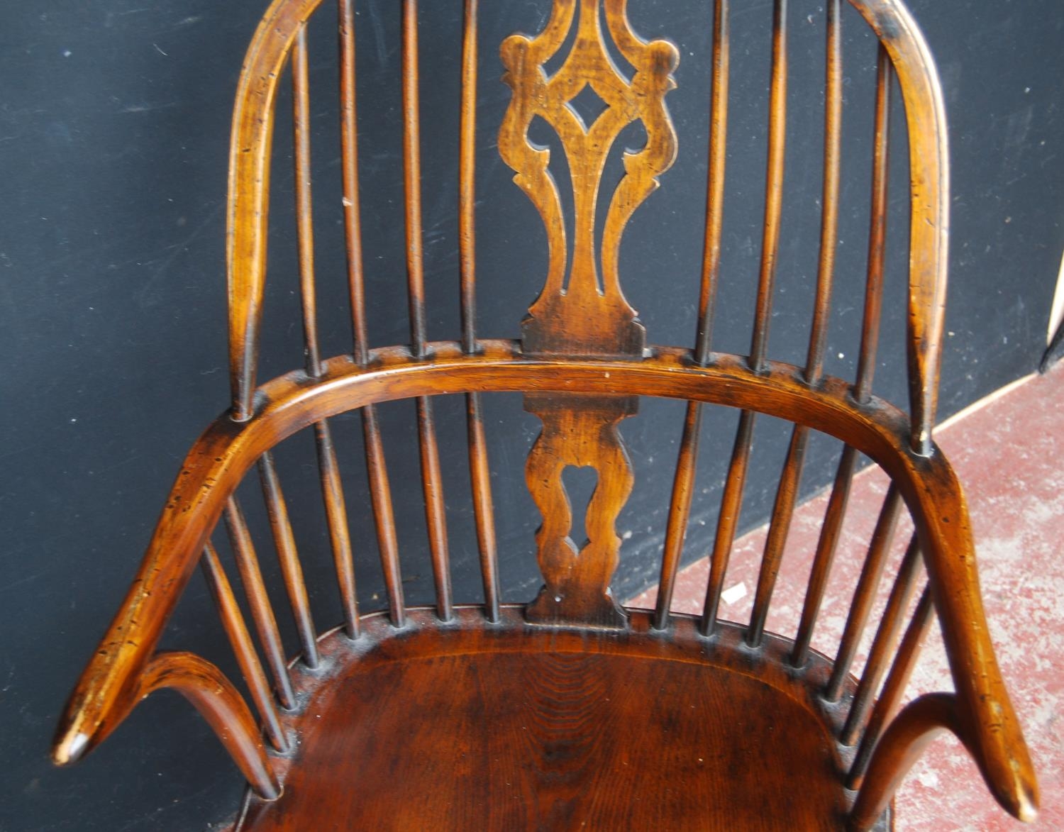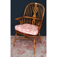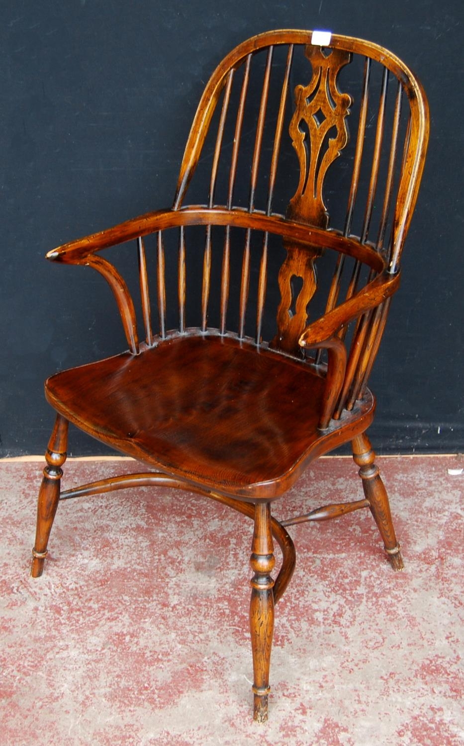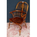 19th century ash and elm Windsor armchair, the hoop stick back with a pierced splat and dish seat, on turned supports with adjoining hoop under stretcher, 102cm high.
