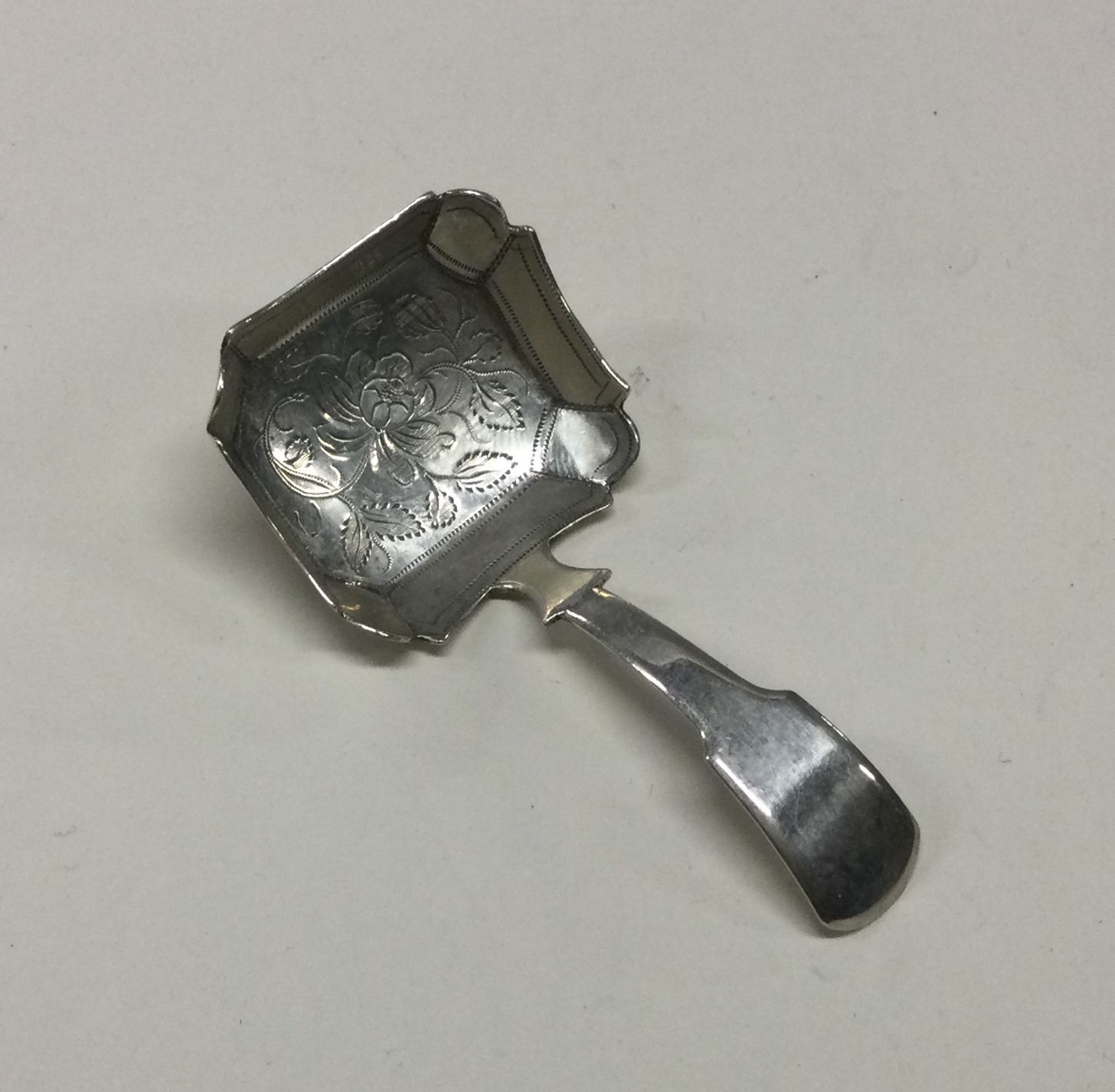 A square bowl silver caddy spoon. London 1817. Approx. 10 grams. Est. £30 - £50.