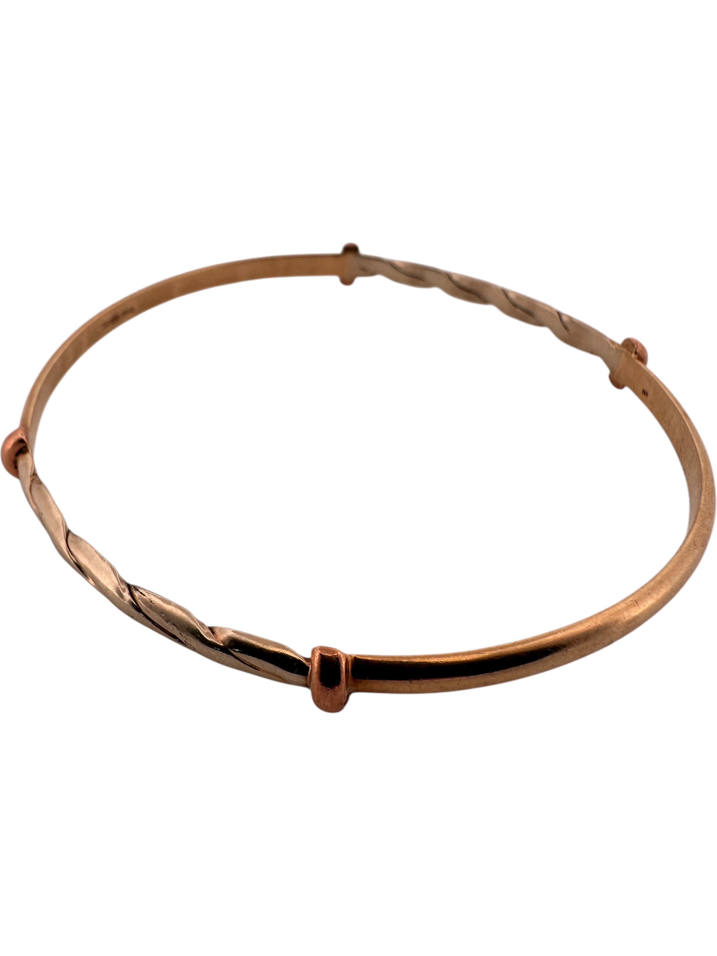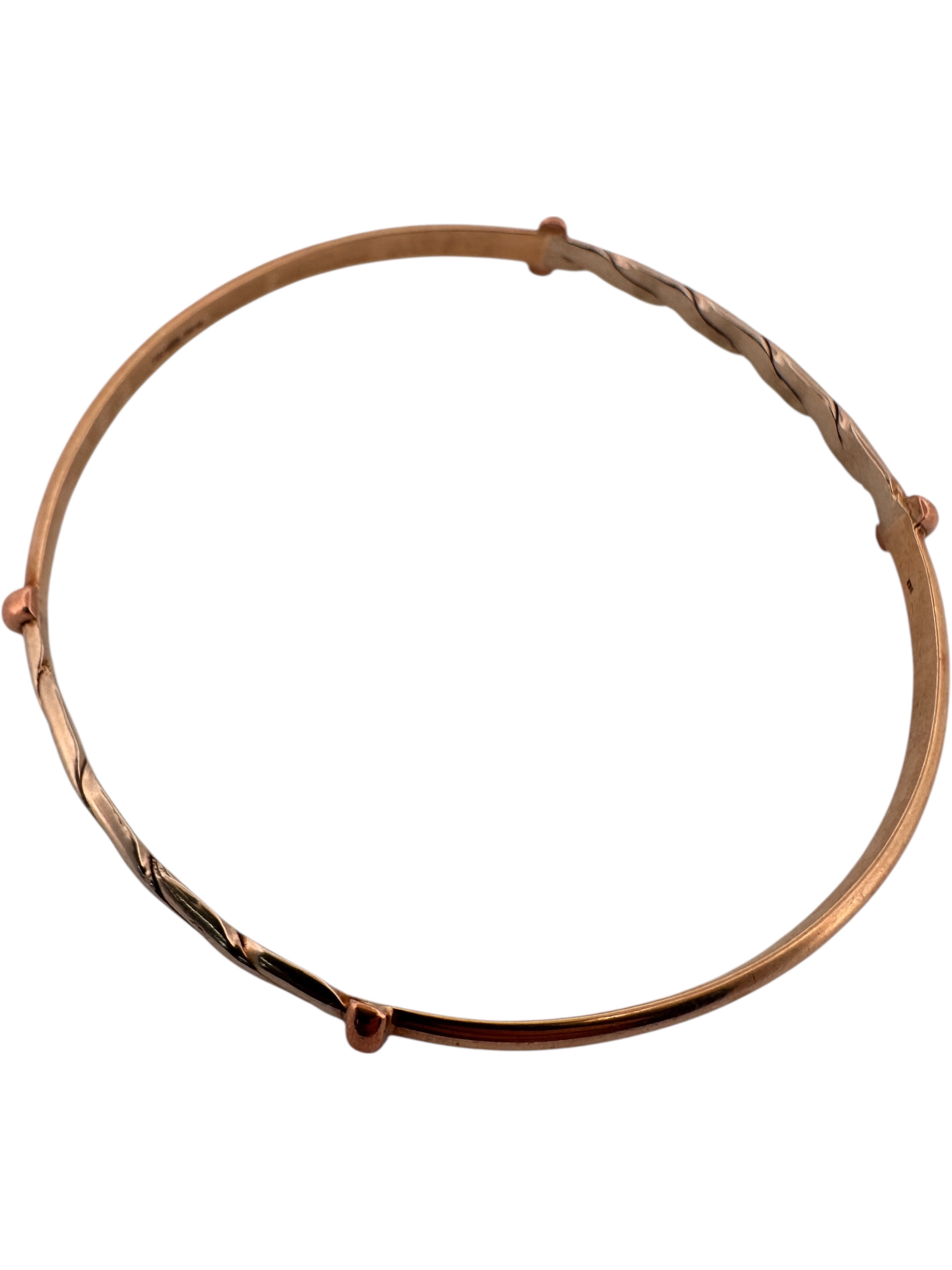 Nine Carat Tri-colour Gold Bangle with Rope Detail, Hallmarked. 13g