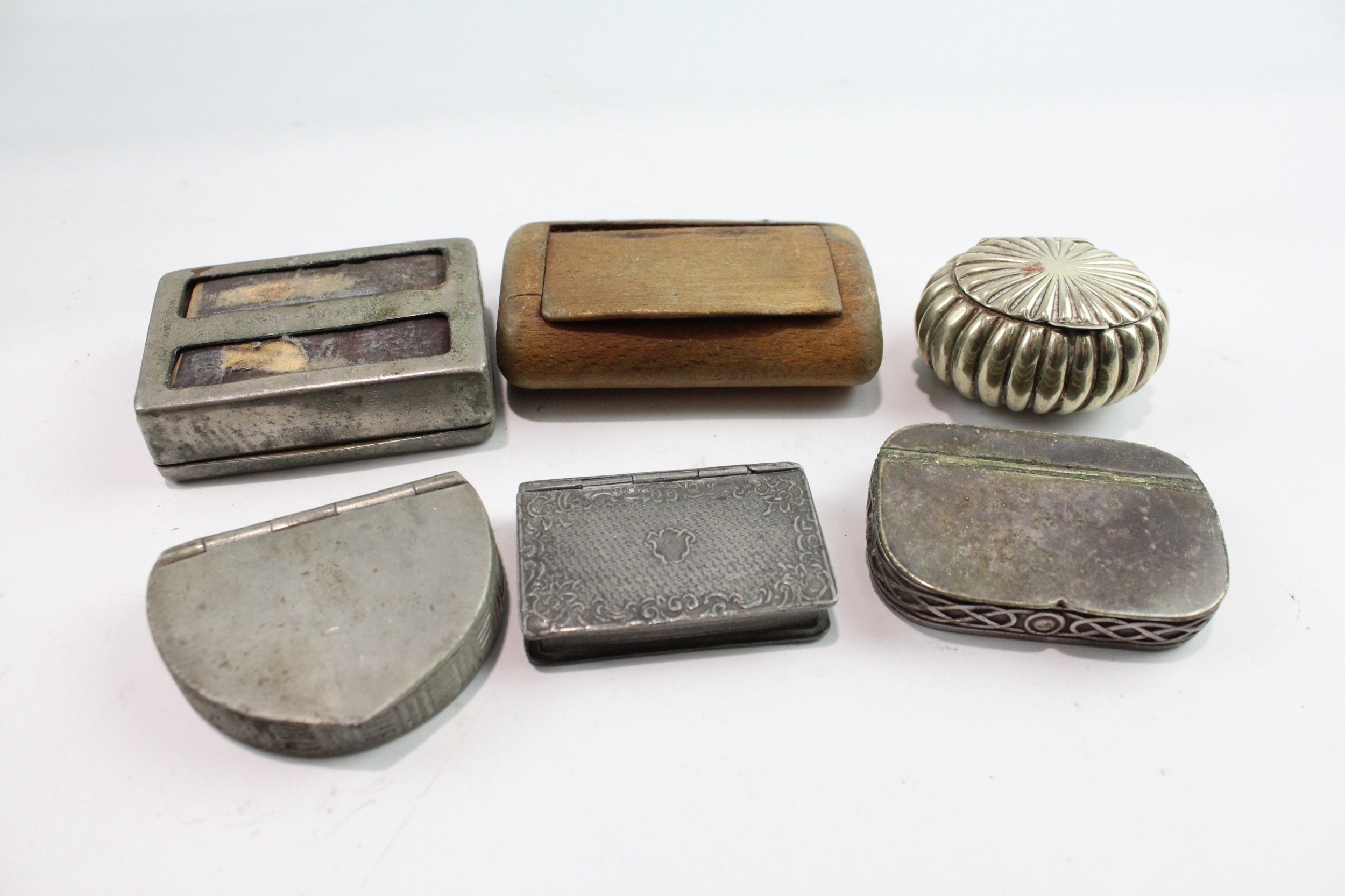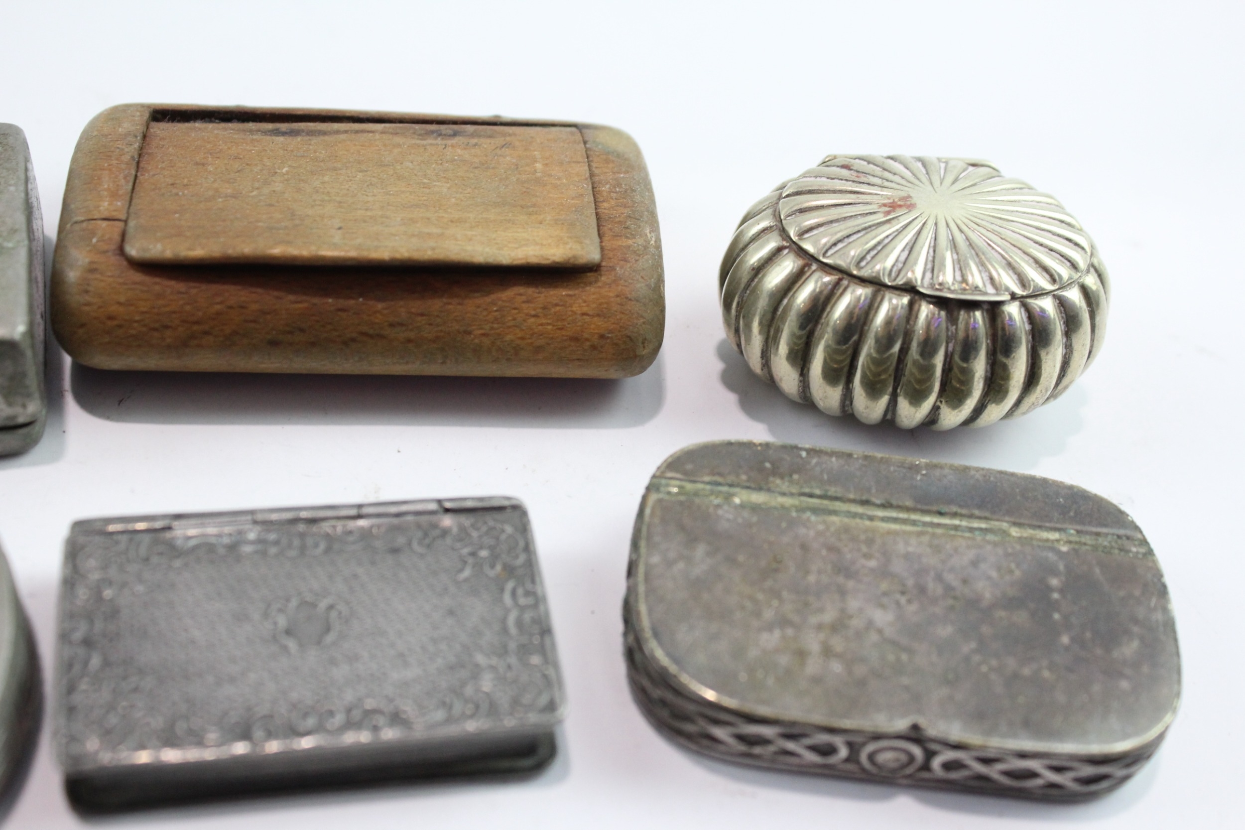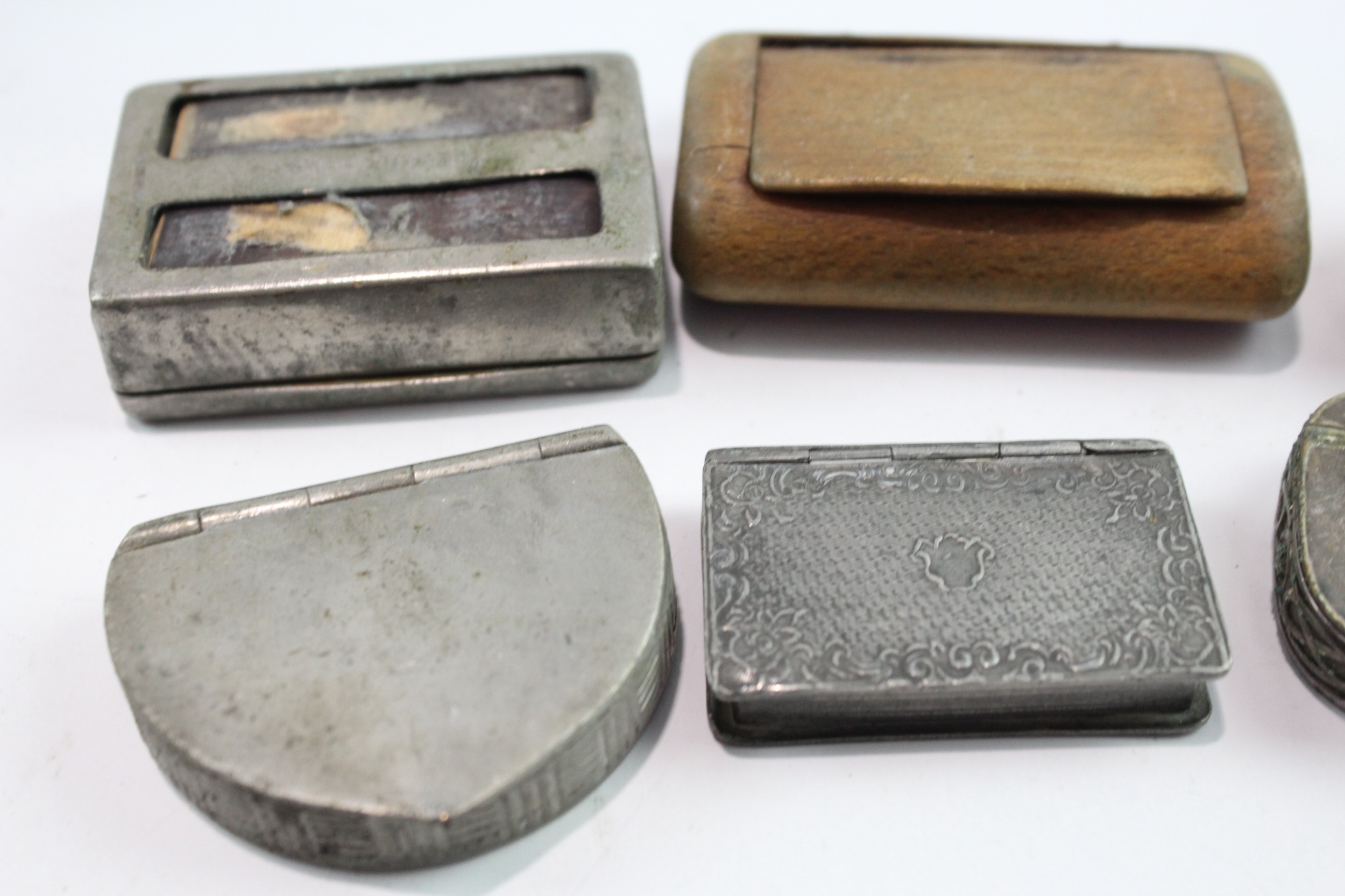 Snuff Boxed Mixed Tobacciana Collectables Inc Wooden, Pewter, Shell Design, Etc