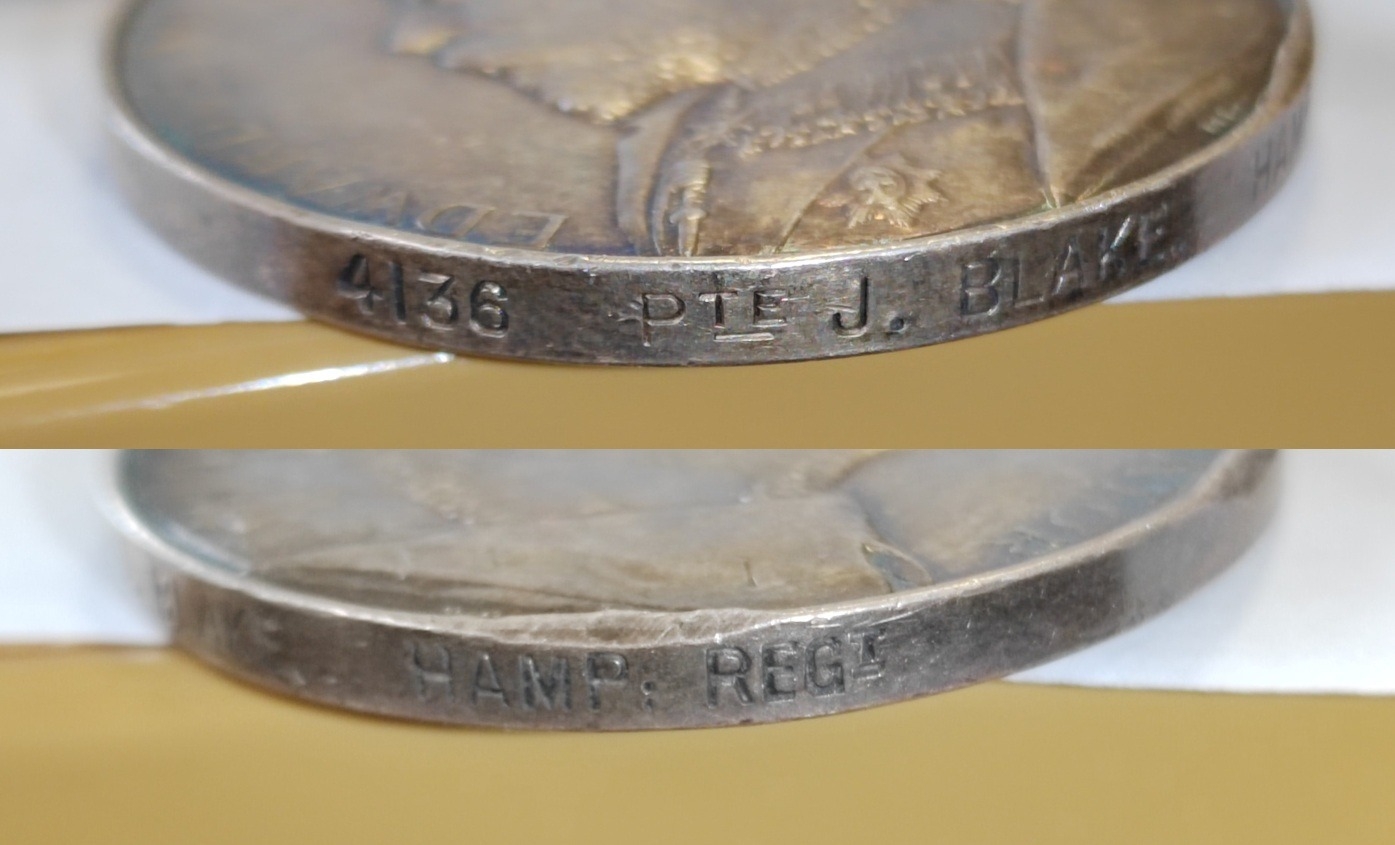 1. AGSM with 2 clasp Somaliland 1902-04, Jidballi to 4136 Pte. J. Blake. Hamp: Regt, 2. WW1 trio to 19332 Pte. J. Blake. Devon. R.,