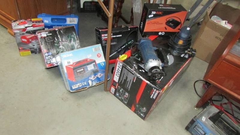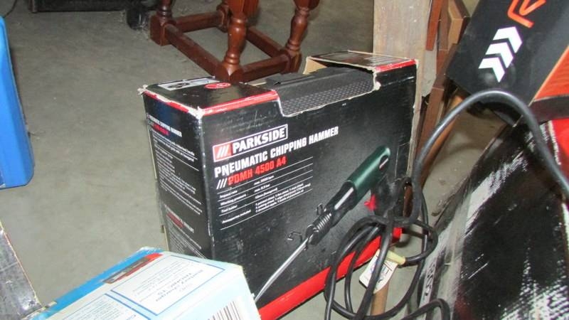 A good lot of boxed and unboxed tools including wet/dry grinder, Pnuematic chipping hammer etc., (Collect only)
