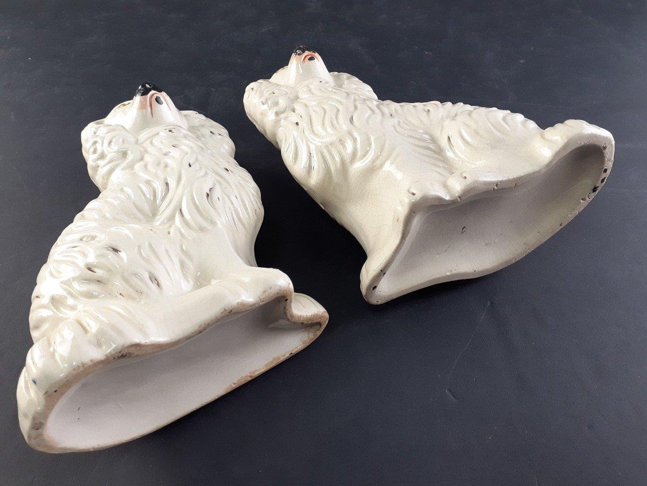 A pair of Staffordshire flatbacks in nice condition. 20cm tall approx.