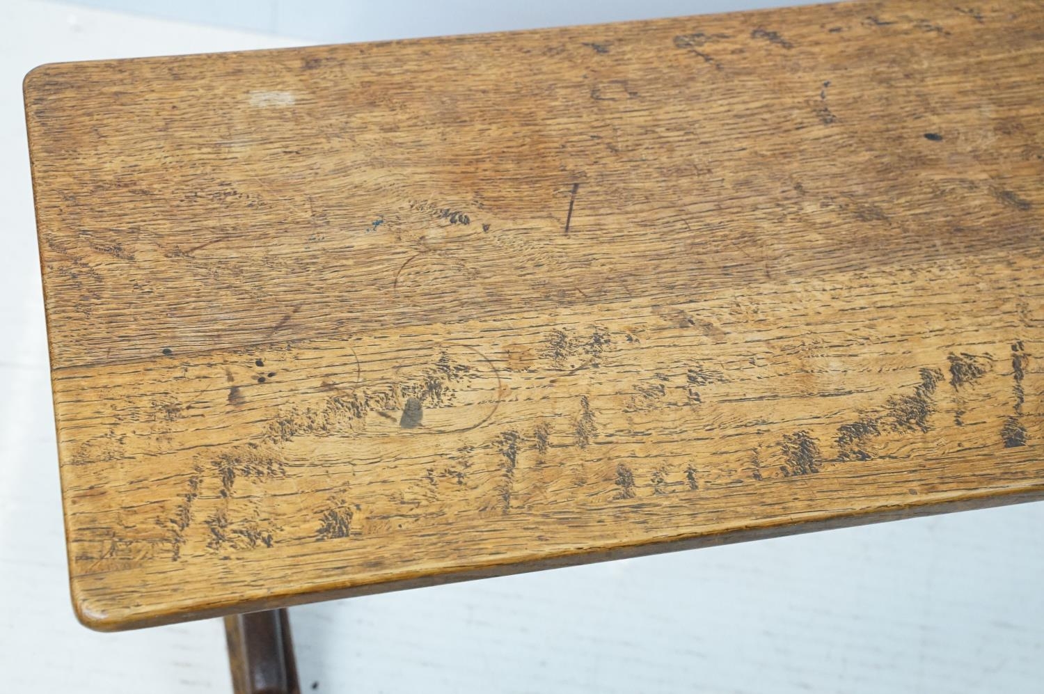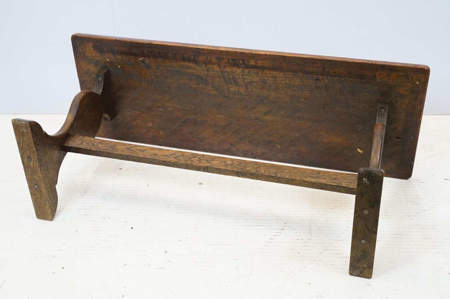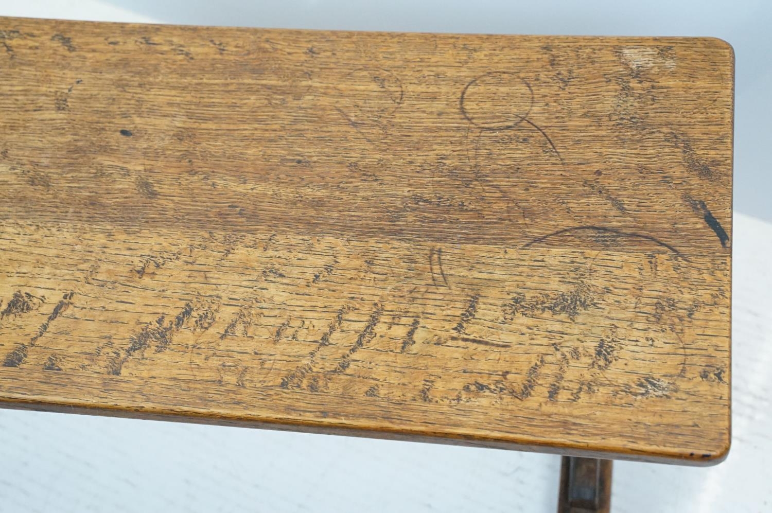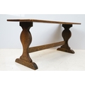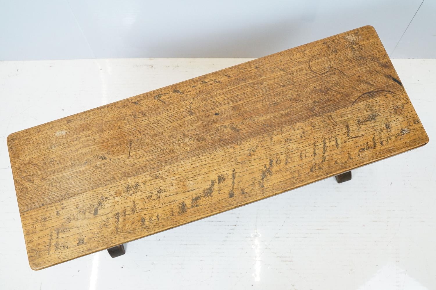 Oak coffee table of stretchered form, 41cm high x 91cm wide x 32cm deep