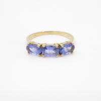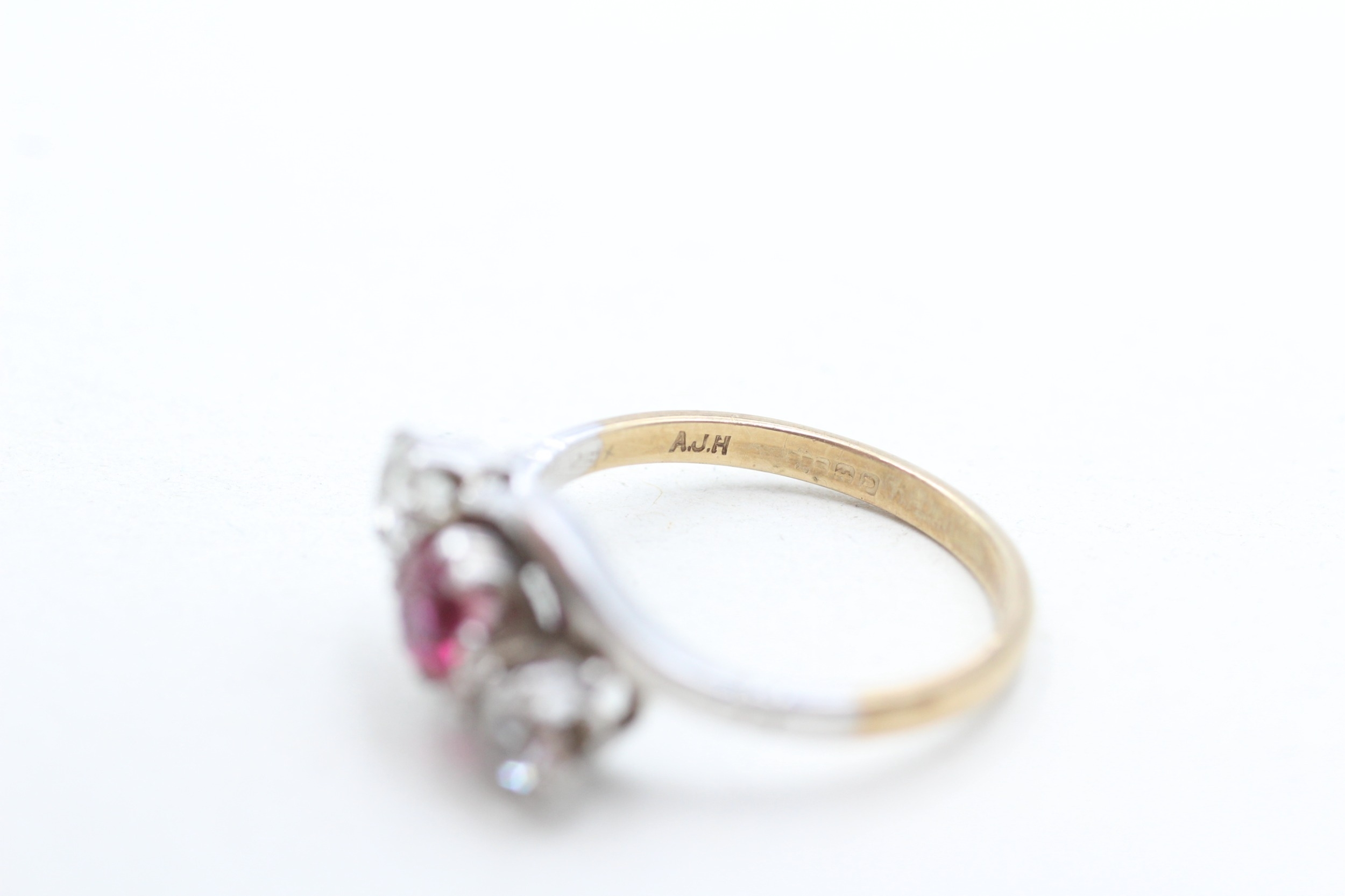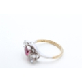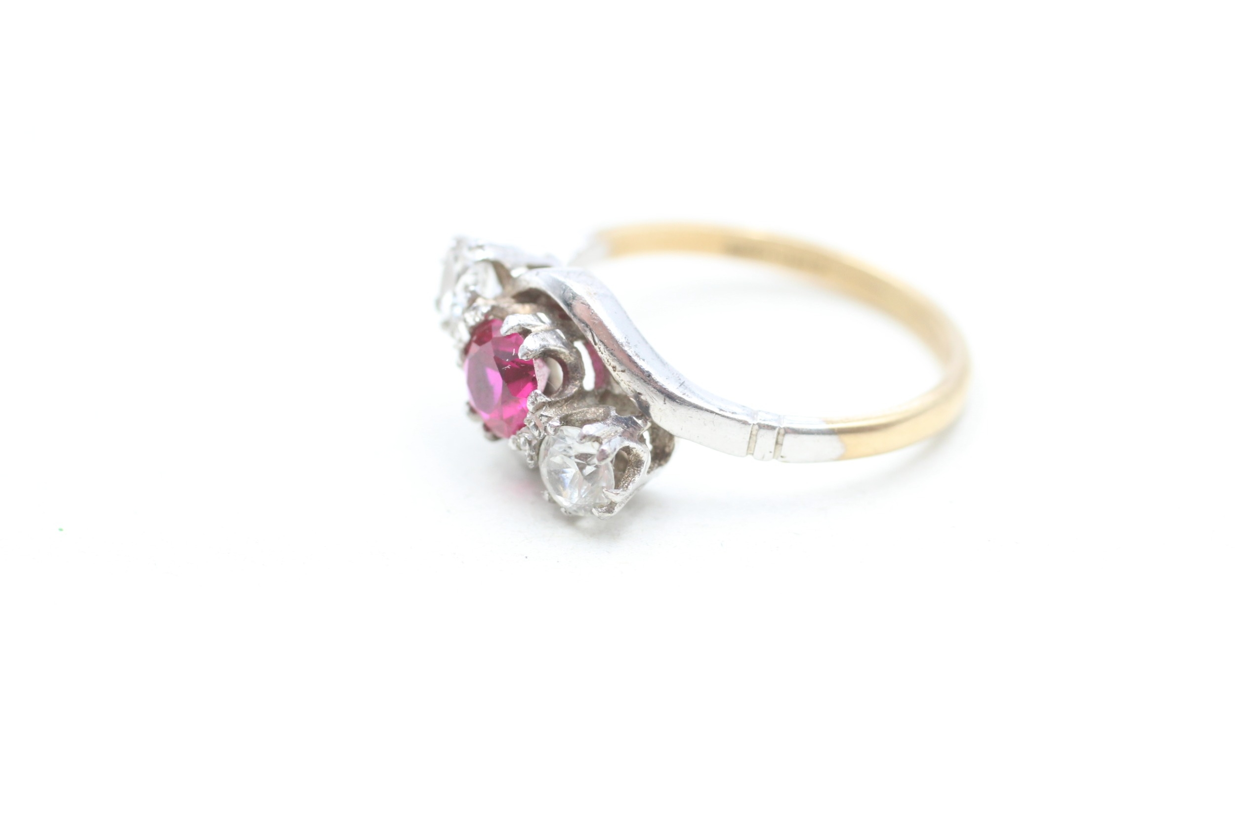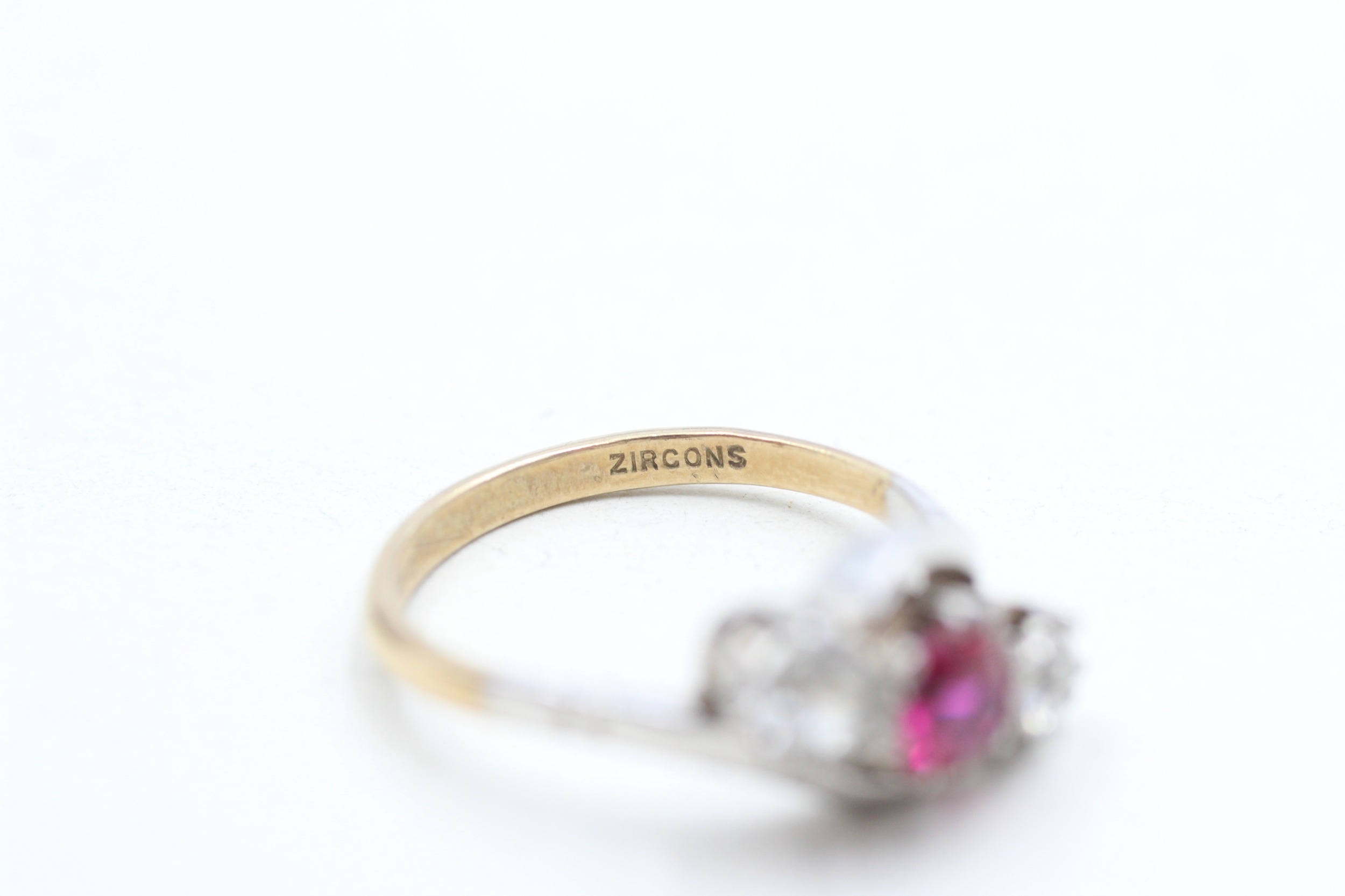9ct gold synthetic ruby and zircon trilogy ring (2.2g) Size M
