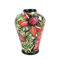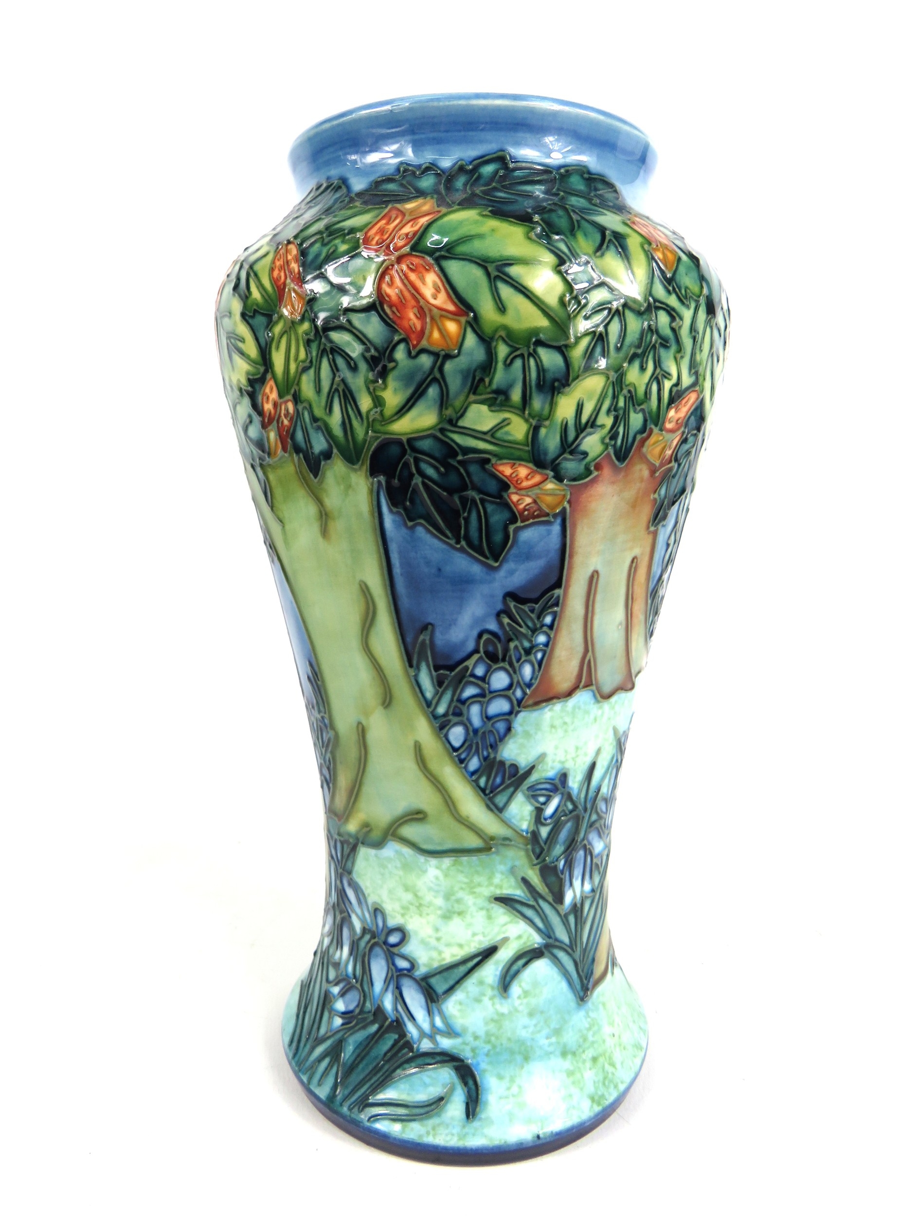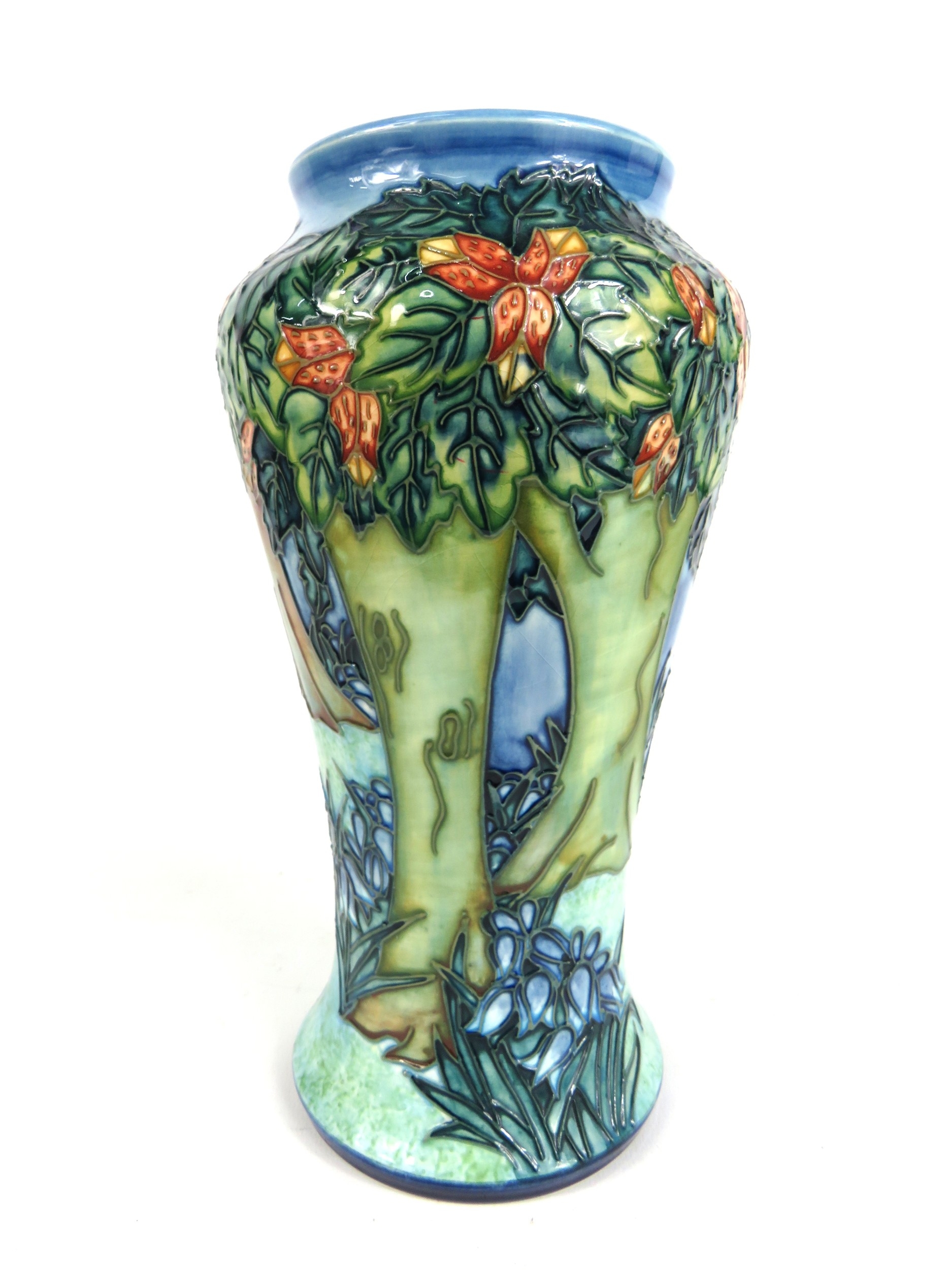 Moorcroft vase, New Forest Series 'Vereley' design by Rachel Bishop with tree and floral design - 26cm tall