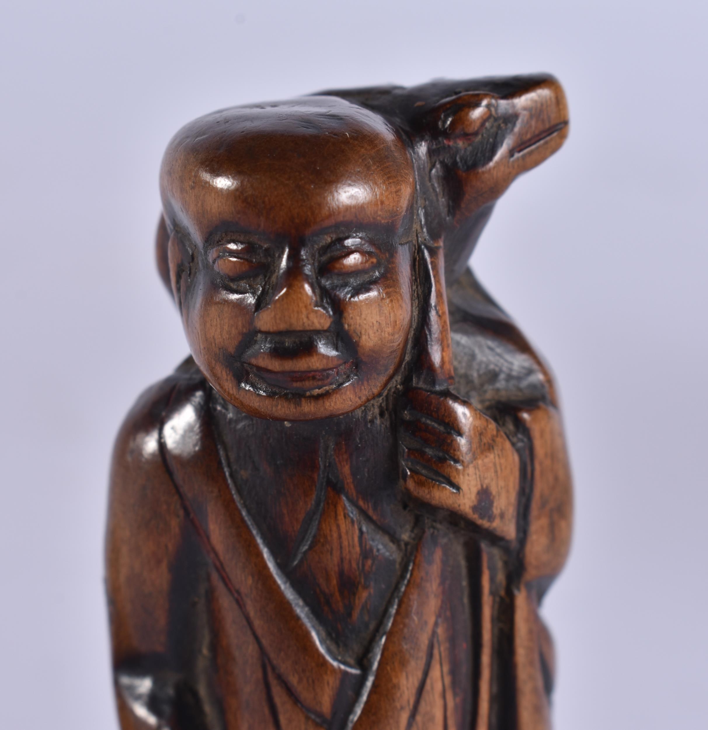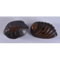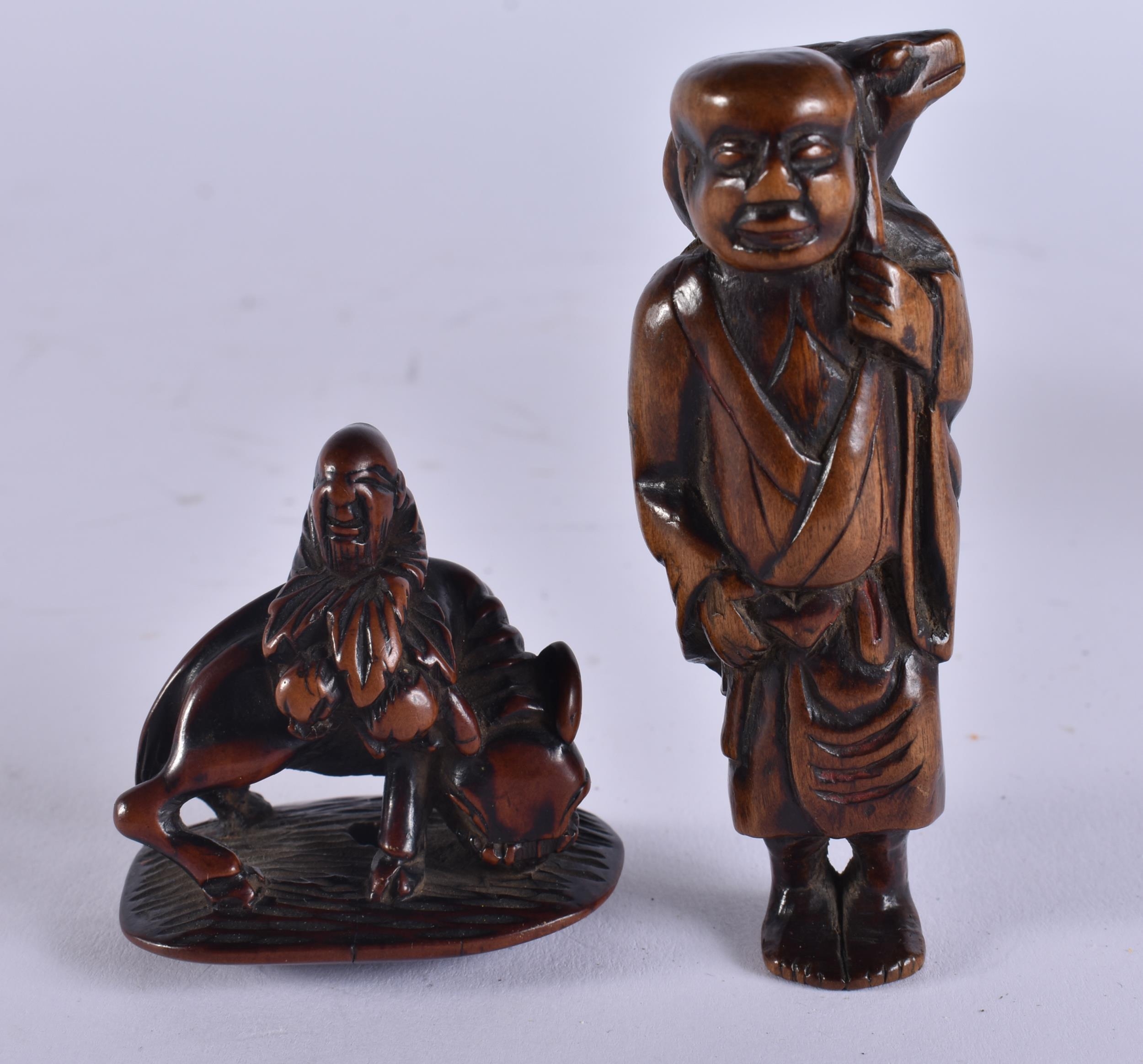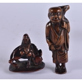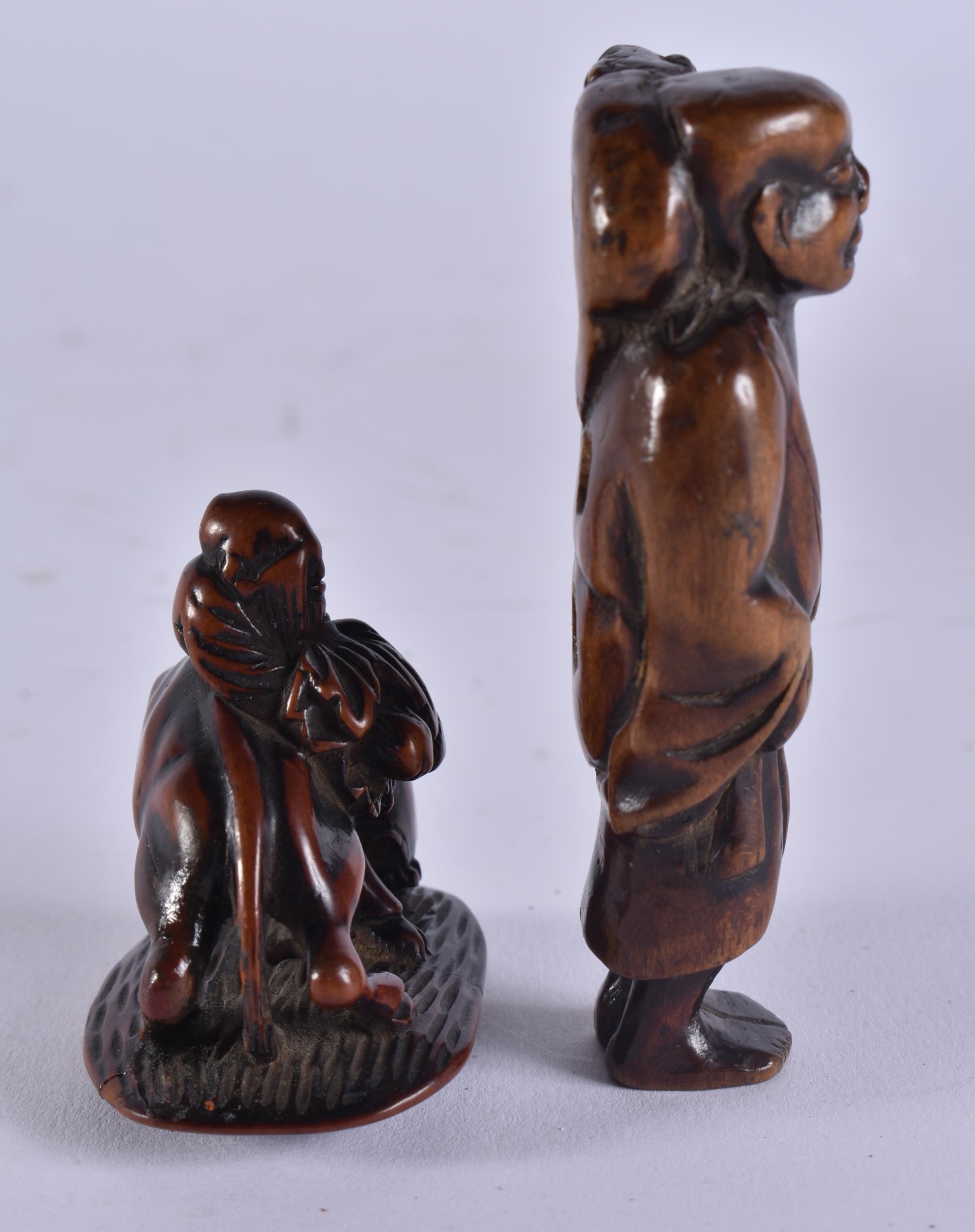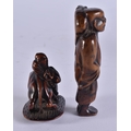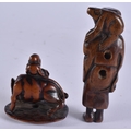 TWO 18TH CENTURY JAPANESE EDO PERIOD CARVED WOOD NETSUKES. Largest 8 cm long. (2)