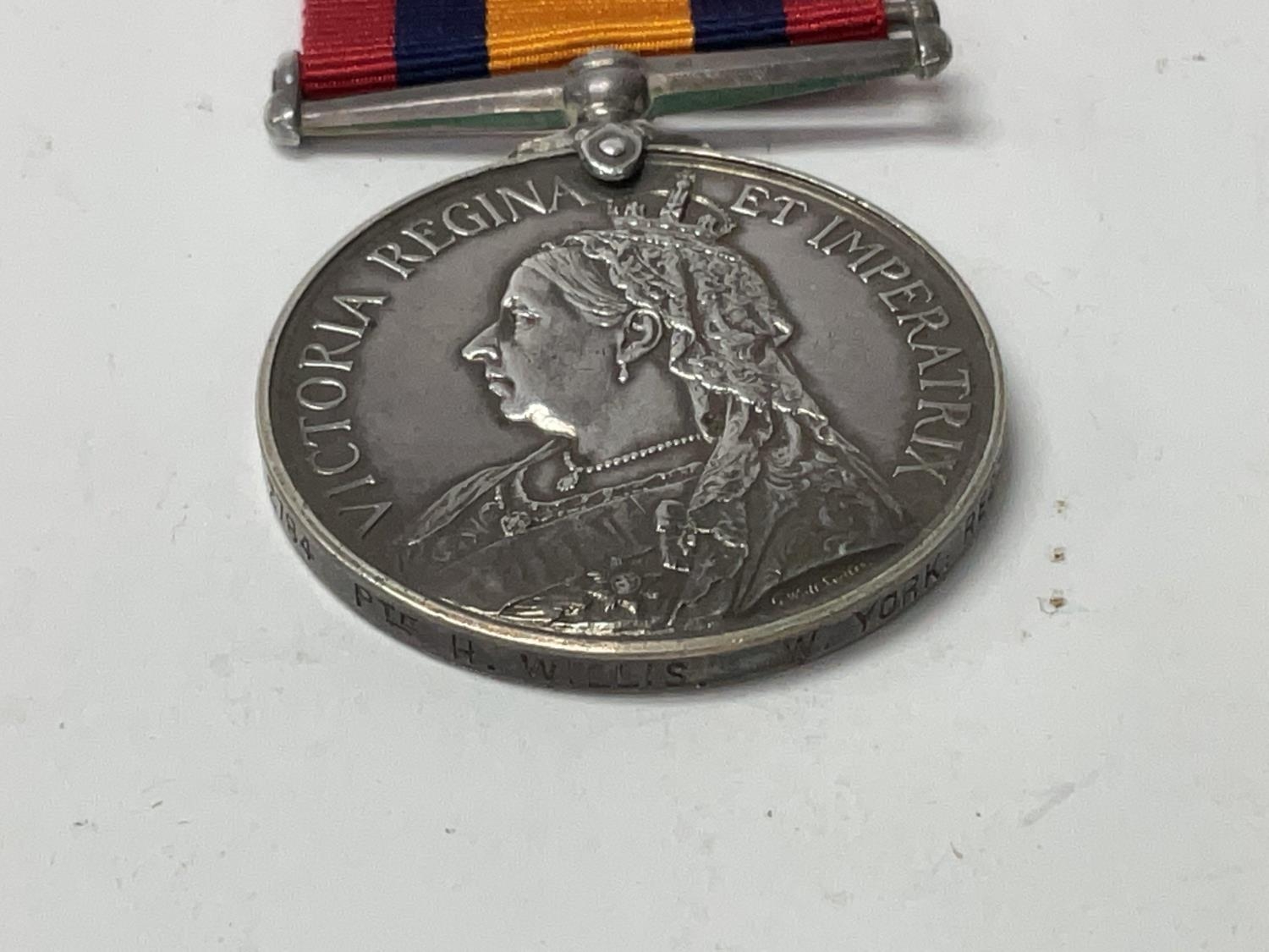 A Queens South Africa Medal 1899-1902, awarded to Pte. H.Willis W.York Regt.