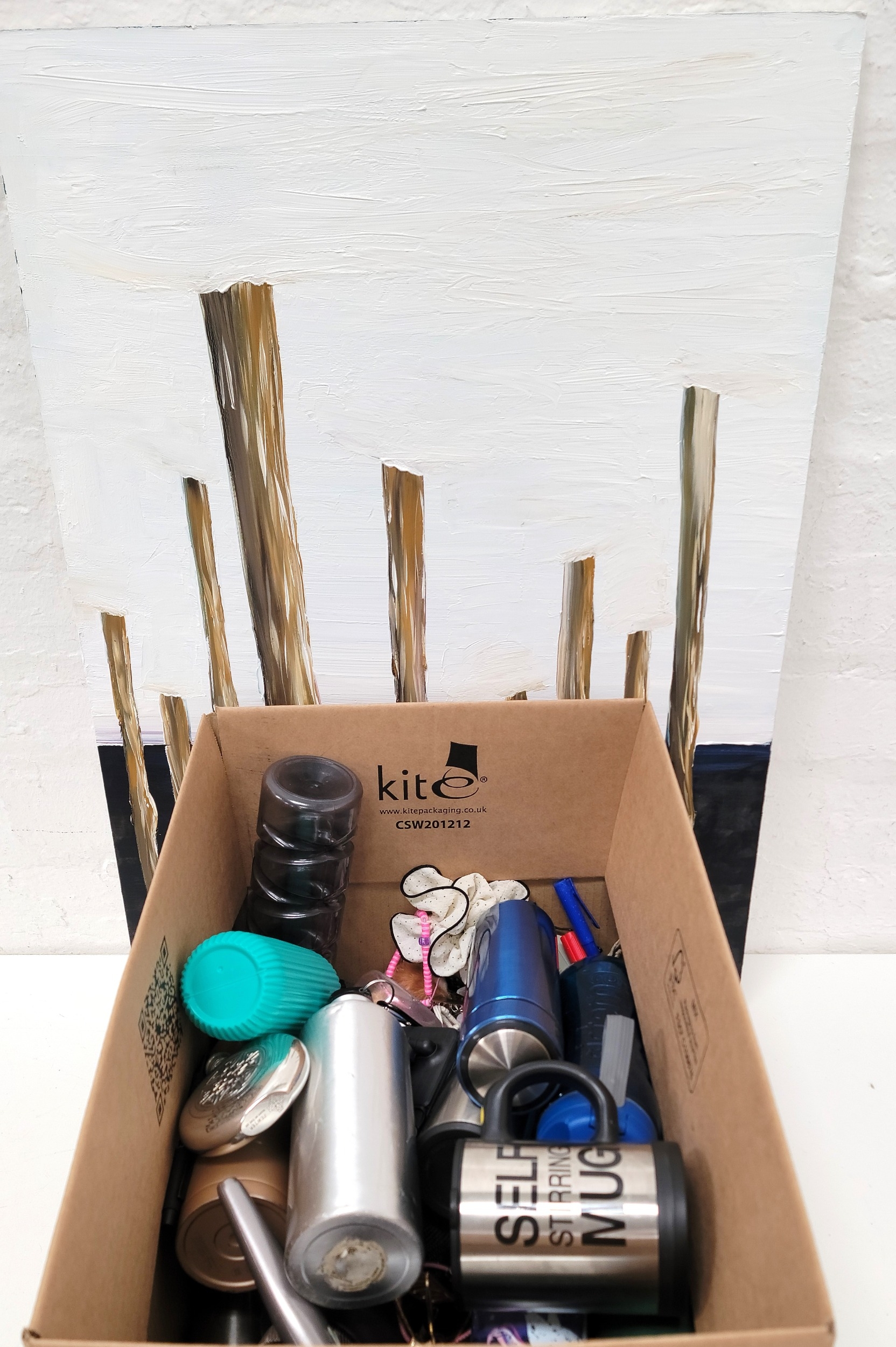 including: a painting, a hip flask, a quantity of thermoses and water bottles, bottle opener, accessories, etc.