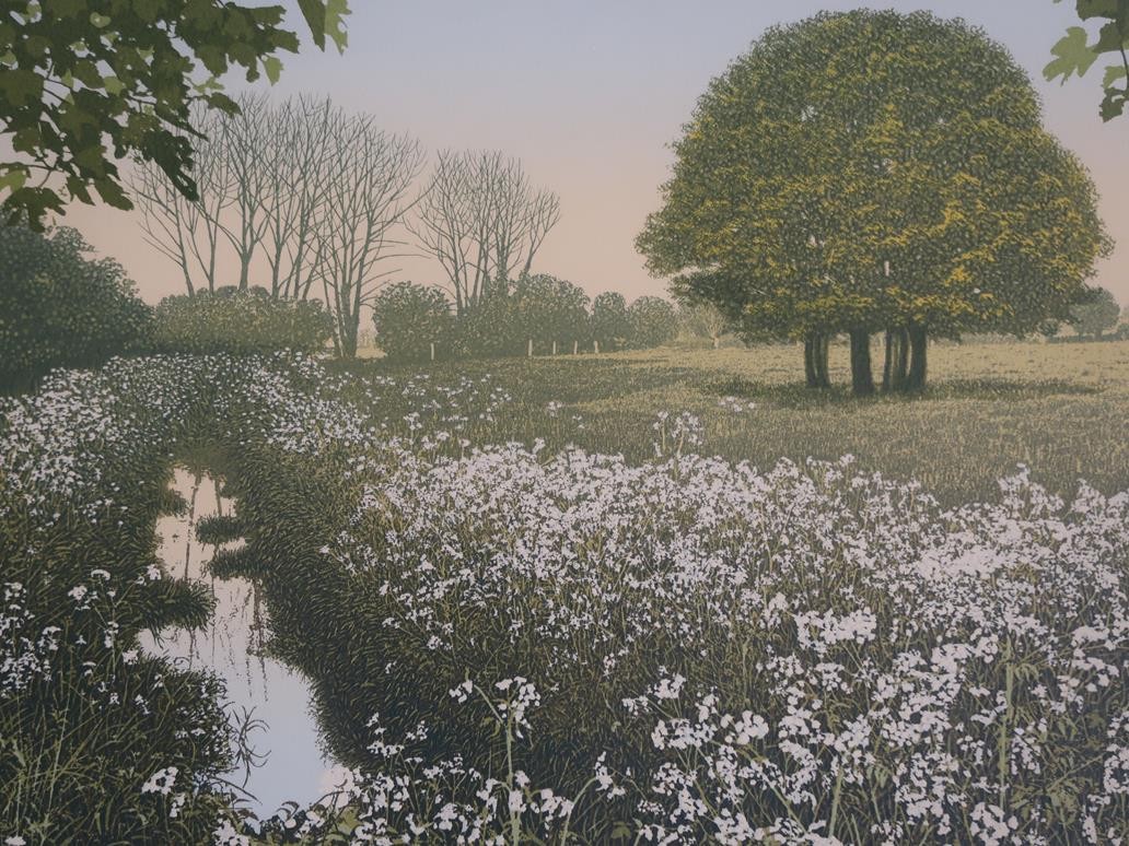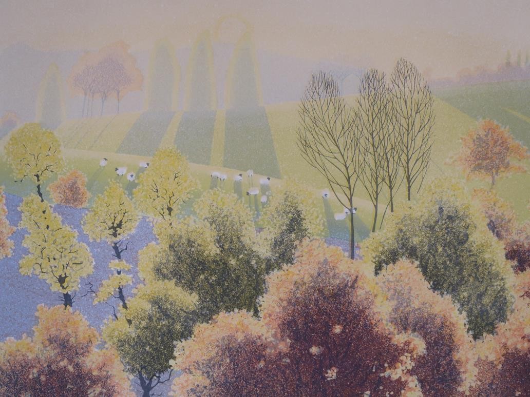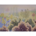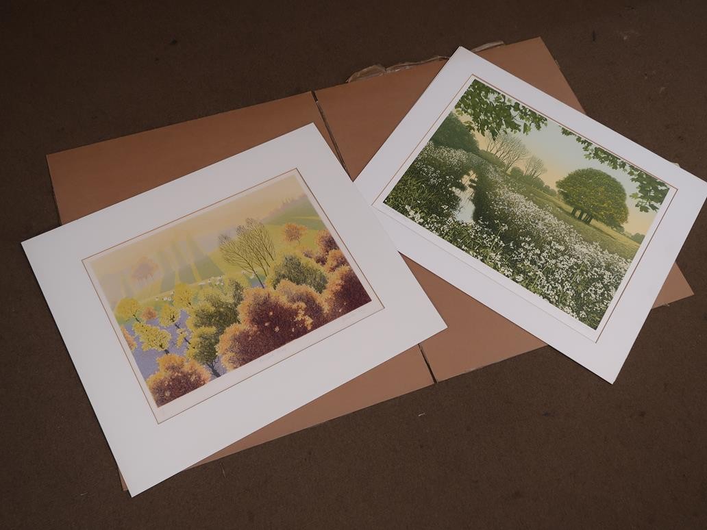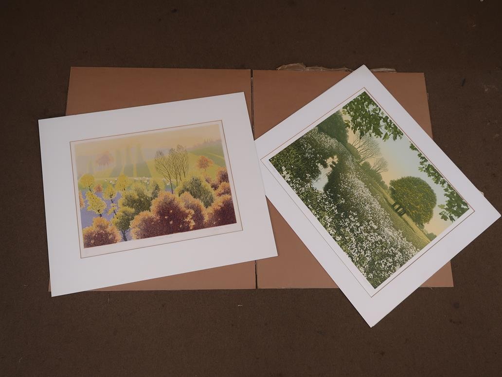TWO UNFRAMED COLOURED PRINTS - LANDSCAPE WITH SHEEP & SPRING TIME FLOWERS