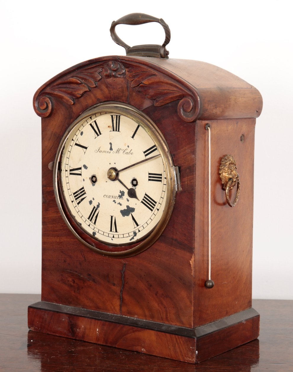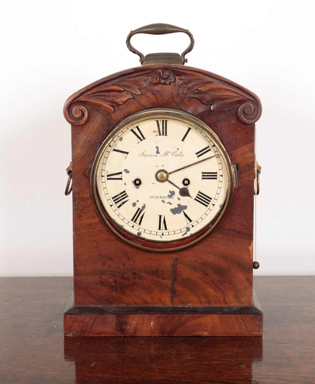 AN EARLY 19TH CENTURY MAHOGANY MANTEL CLOCK INSCRIBED JAMES MCCABE OF LONDON