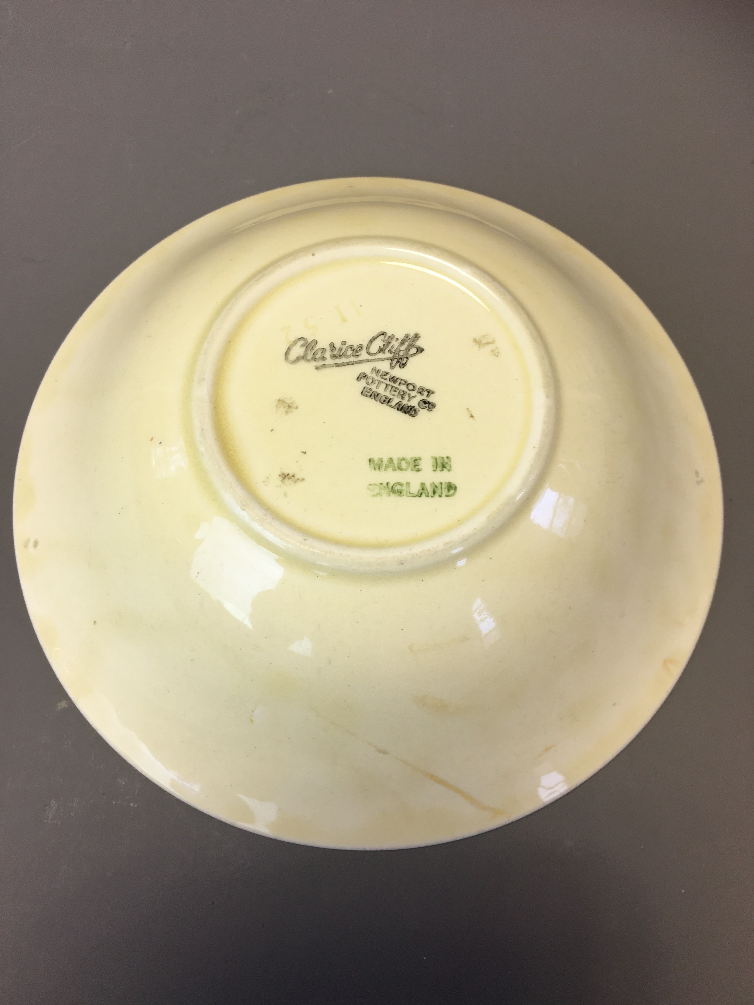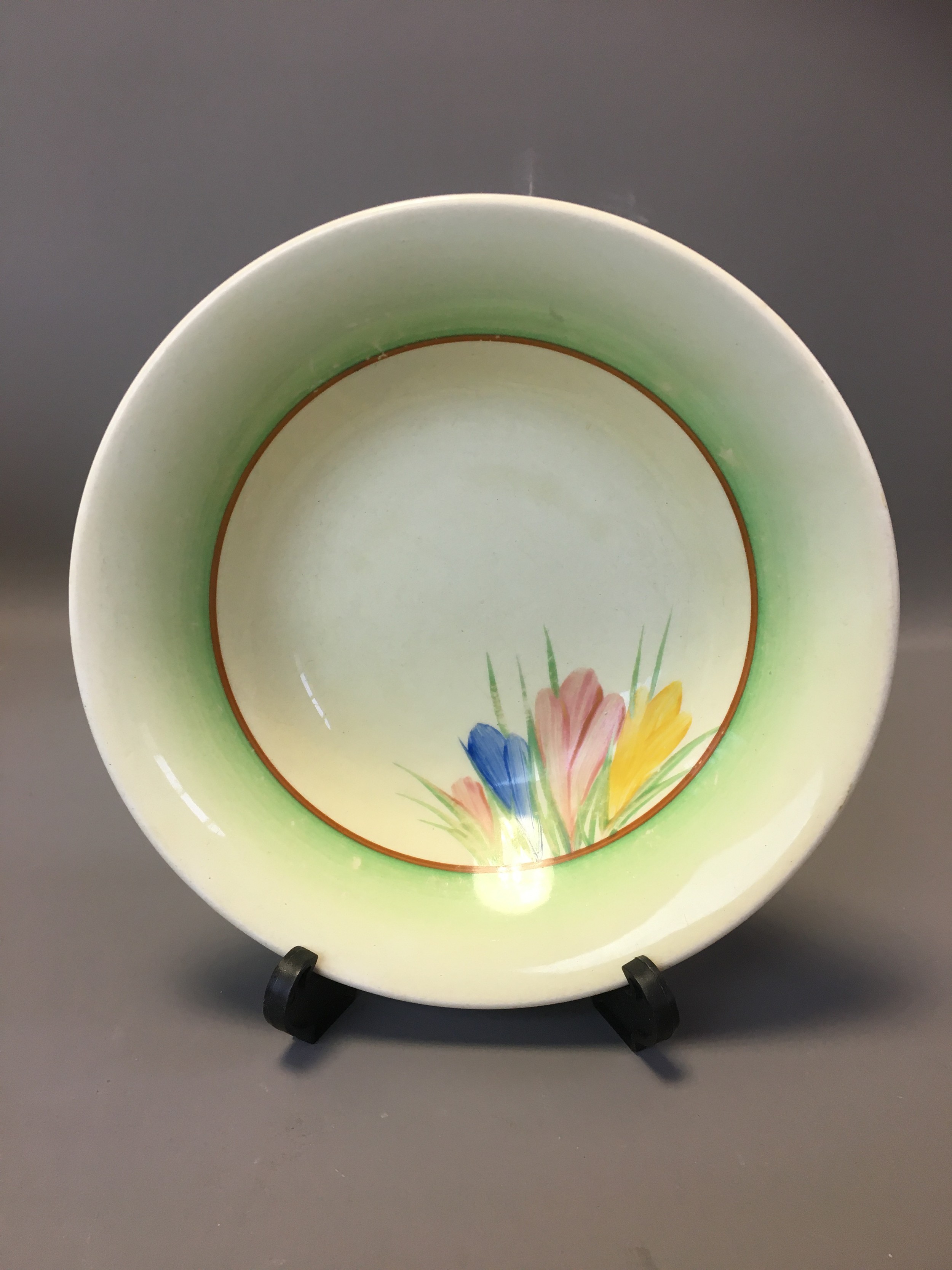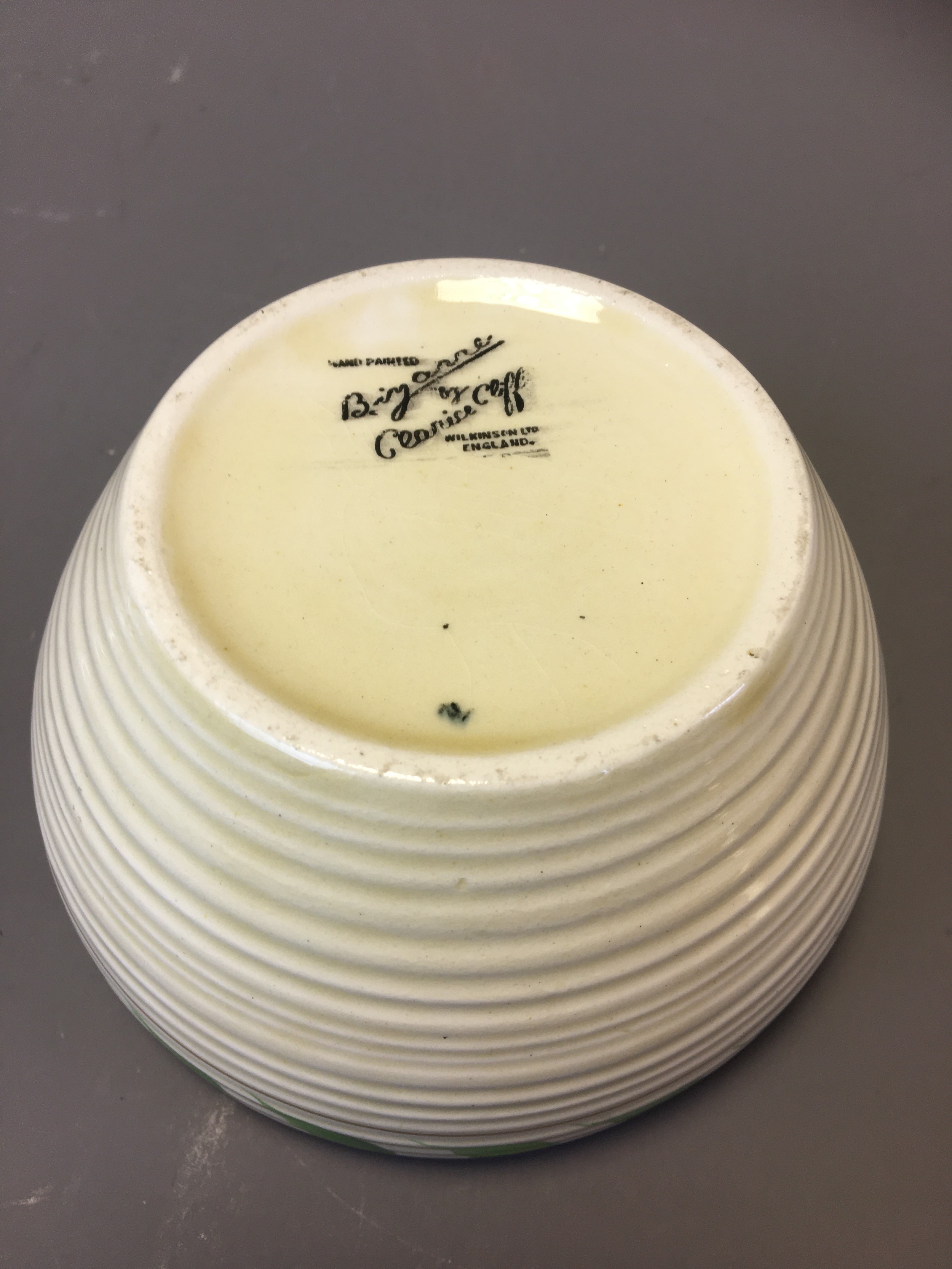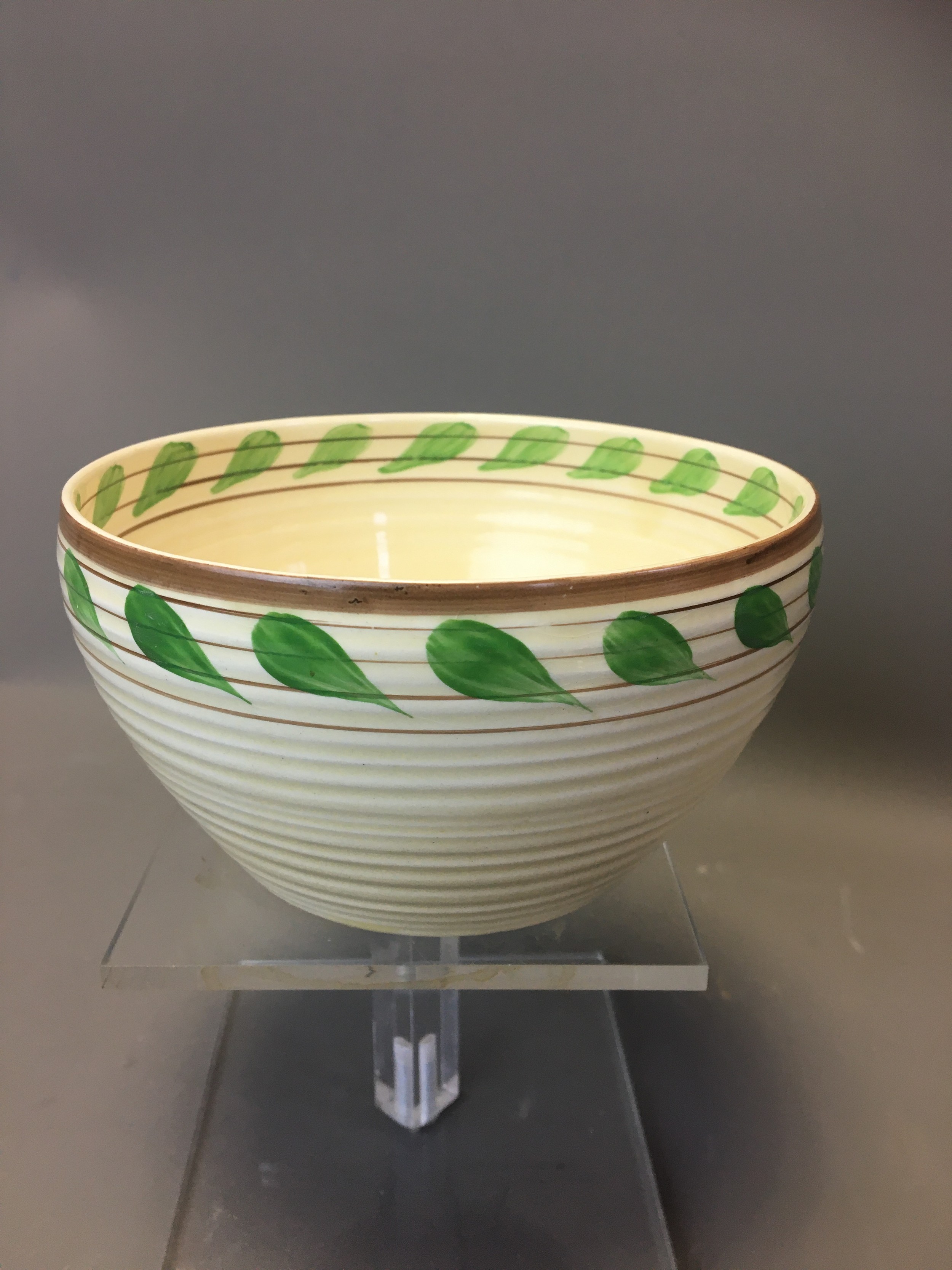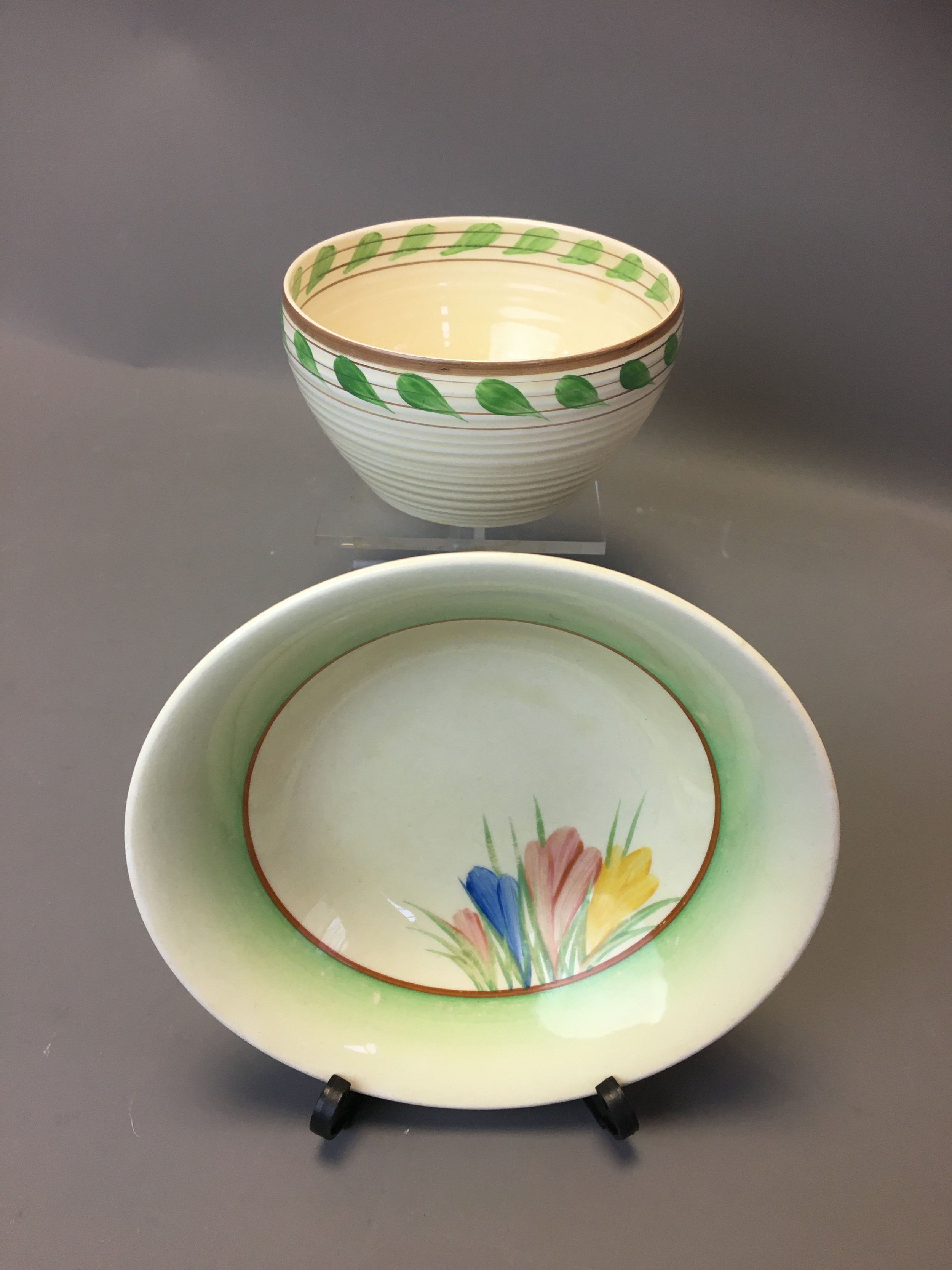 Art Deco - Clarice Cliff Green Leaf Ribbed Bowl for Wilkinson and a Clarice Cliff Crocus Bowl for Newport.
