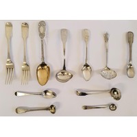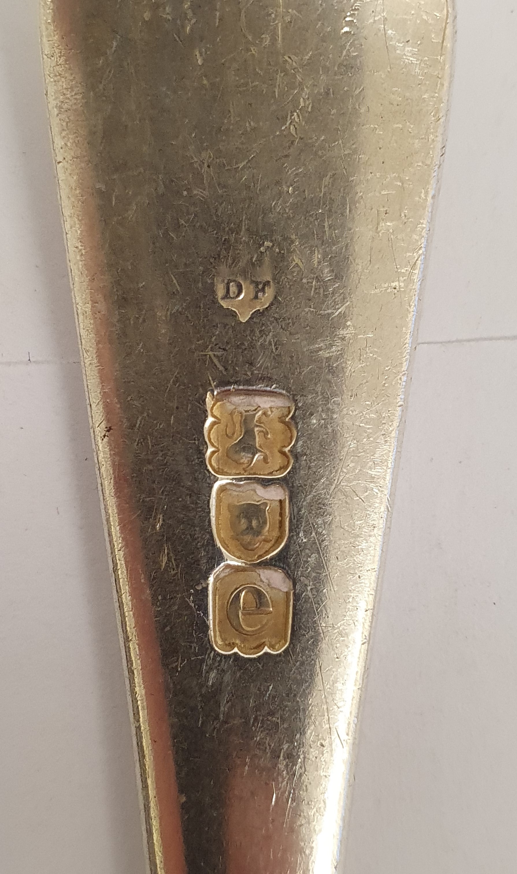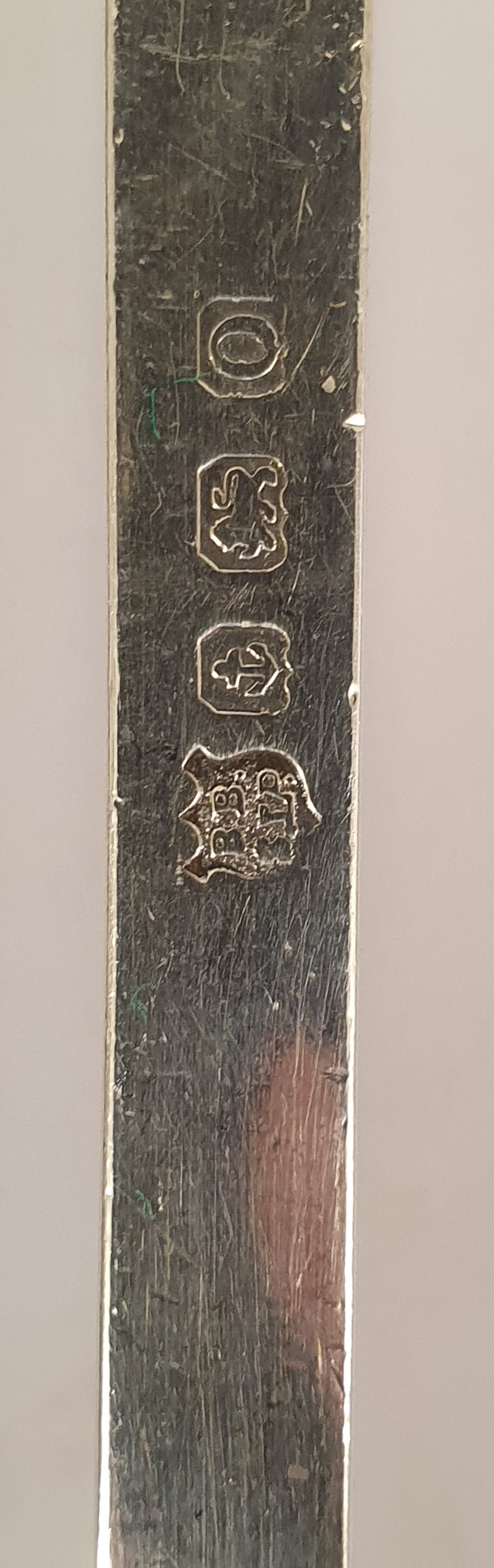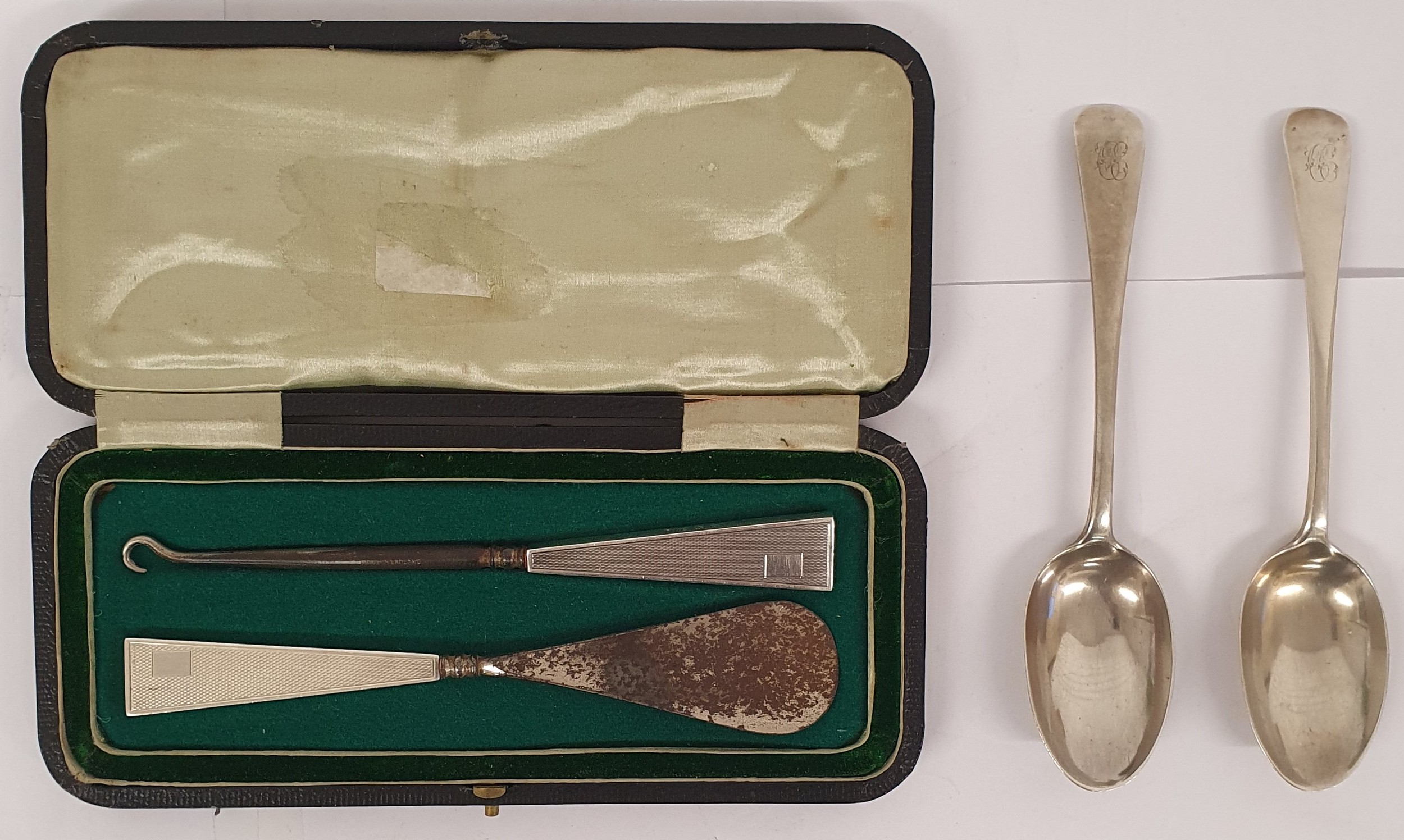Matching Shoe Horn and Lace Pull with Silver Handles Birmingham c.1938 plus a Pair of Silver Dessert Spoons, London 1900