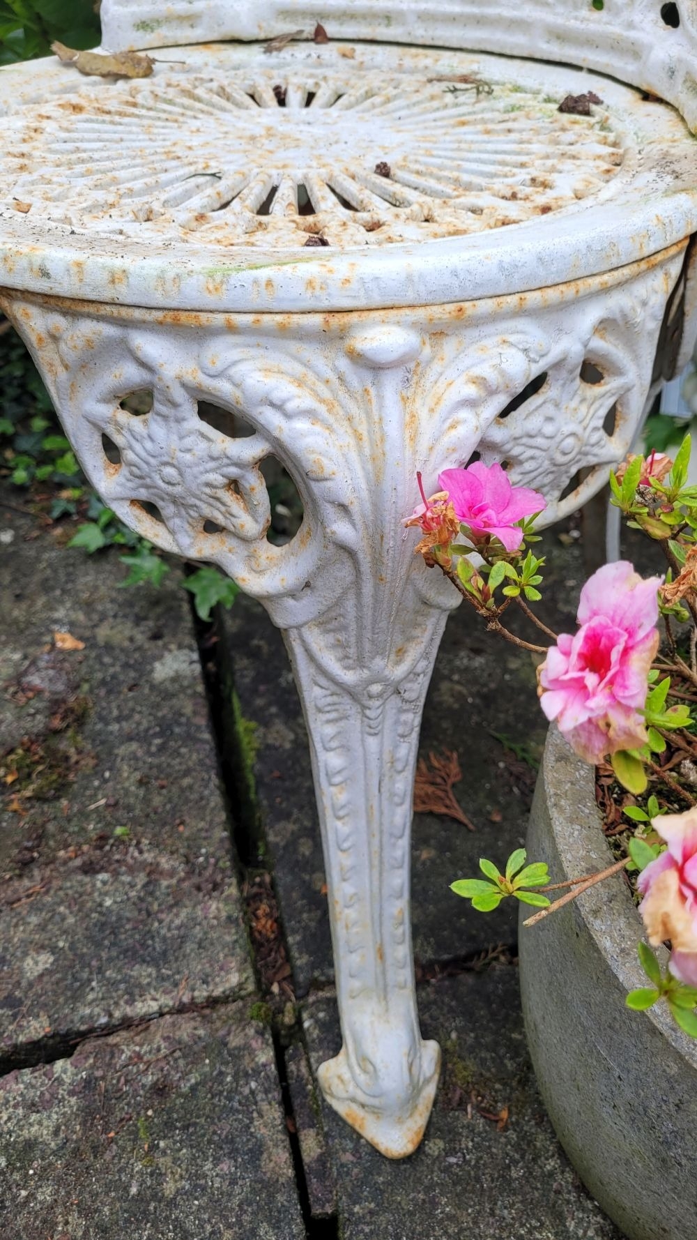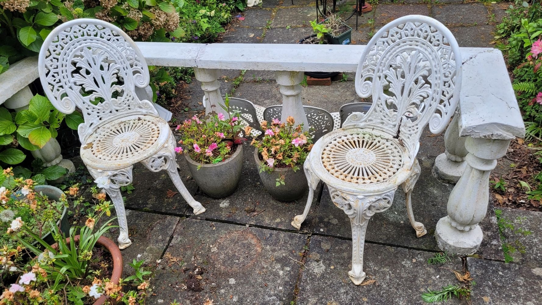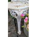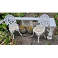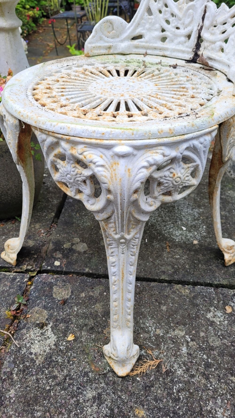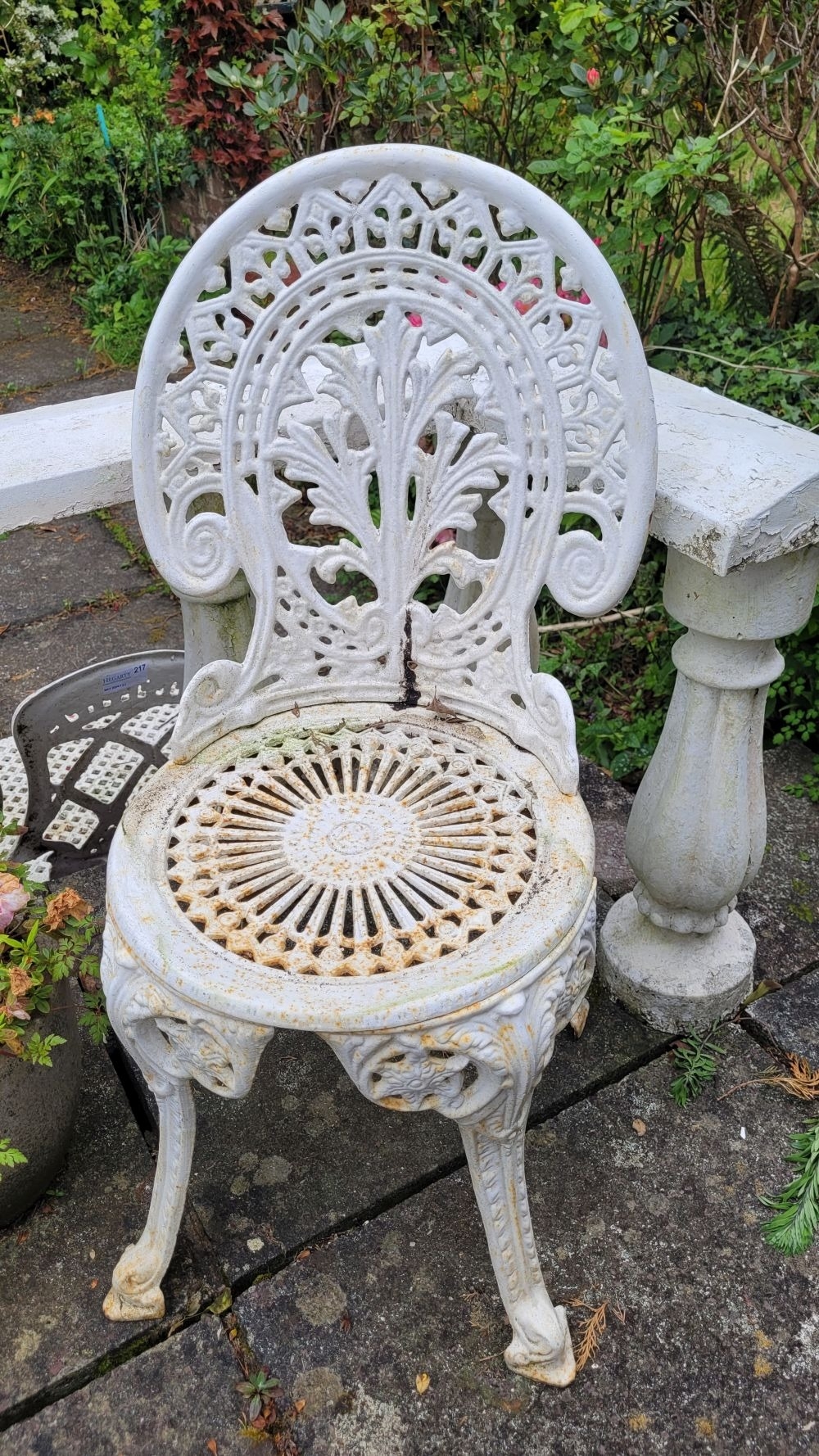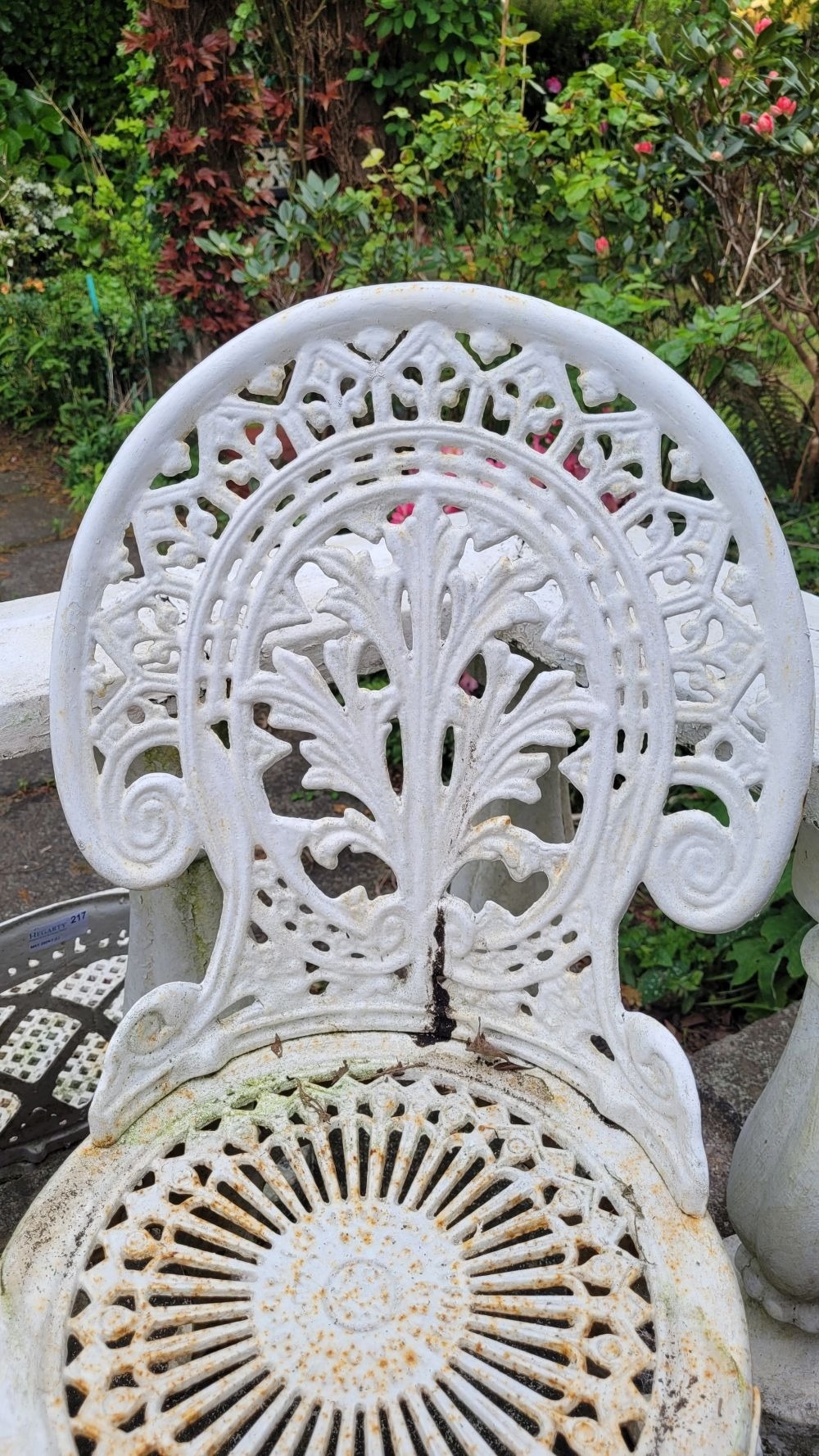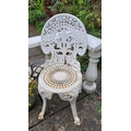 A PAIR OF GOOD QUALITY PATIO CAST IRON GARDEN SEATS, these are a good match to lot 217 if you would like a suite of seats. Each with a curved scroll ended back rest with central foliage detail, raised on four splayed leg with scroll foot and star detail to the knee brackets. Dimensions :85 x 44 x 43cm (H x W x D – including legs).
