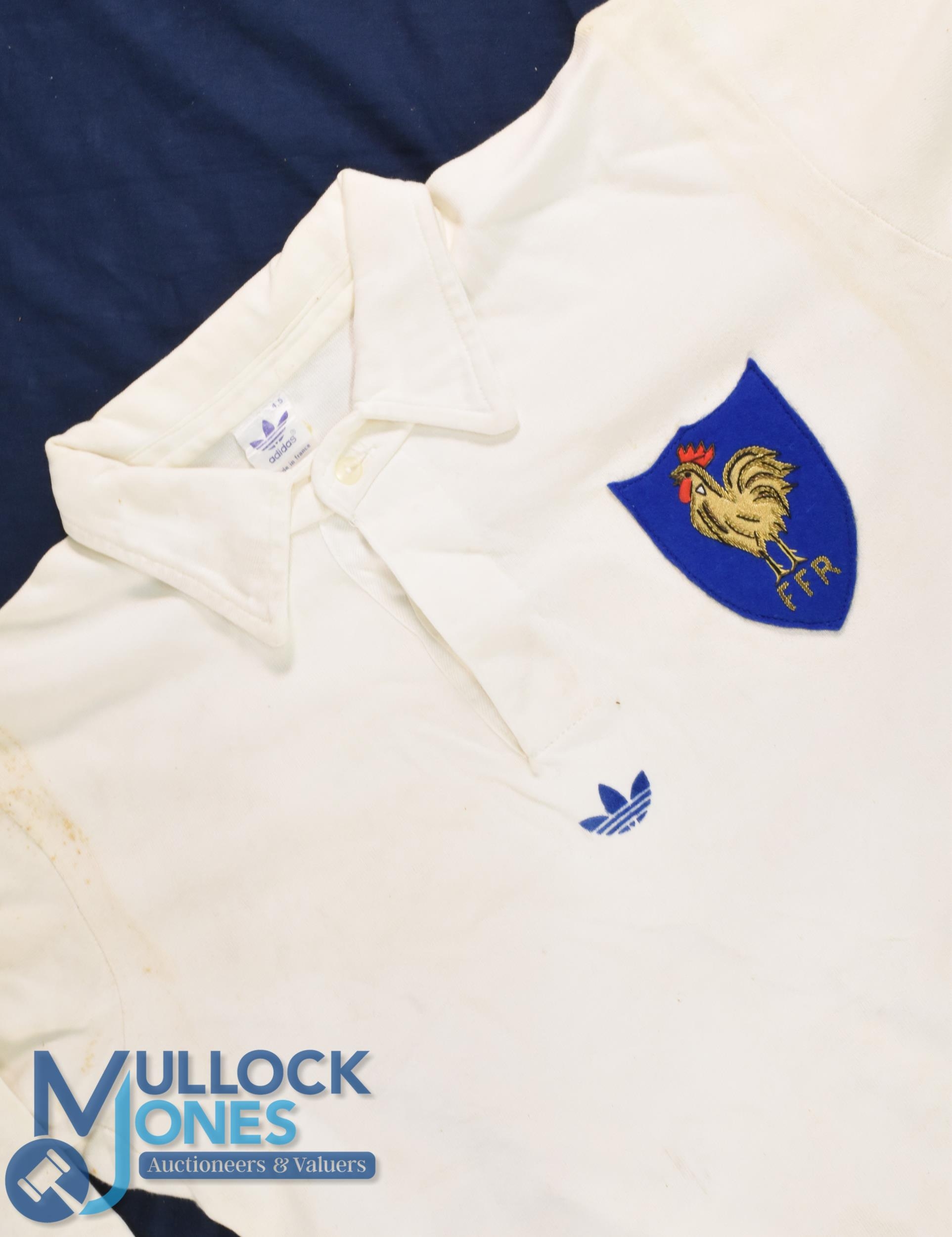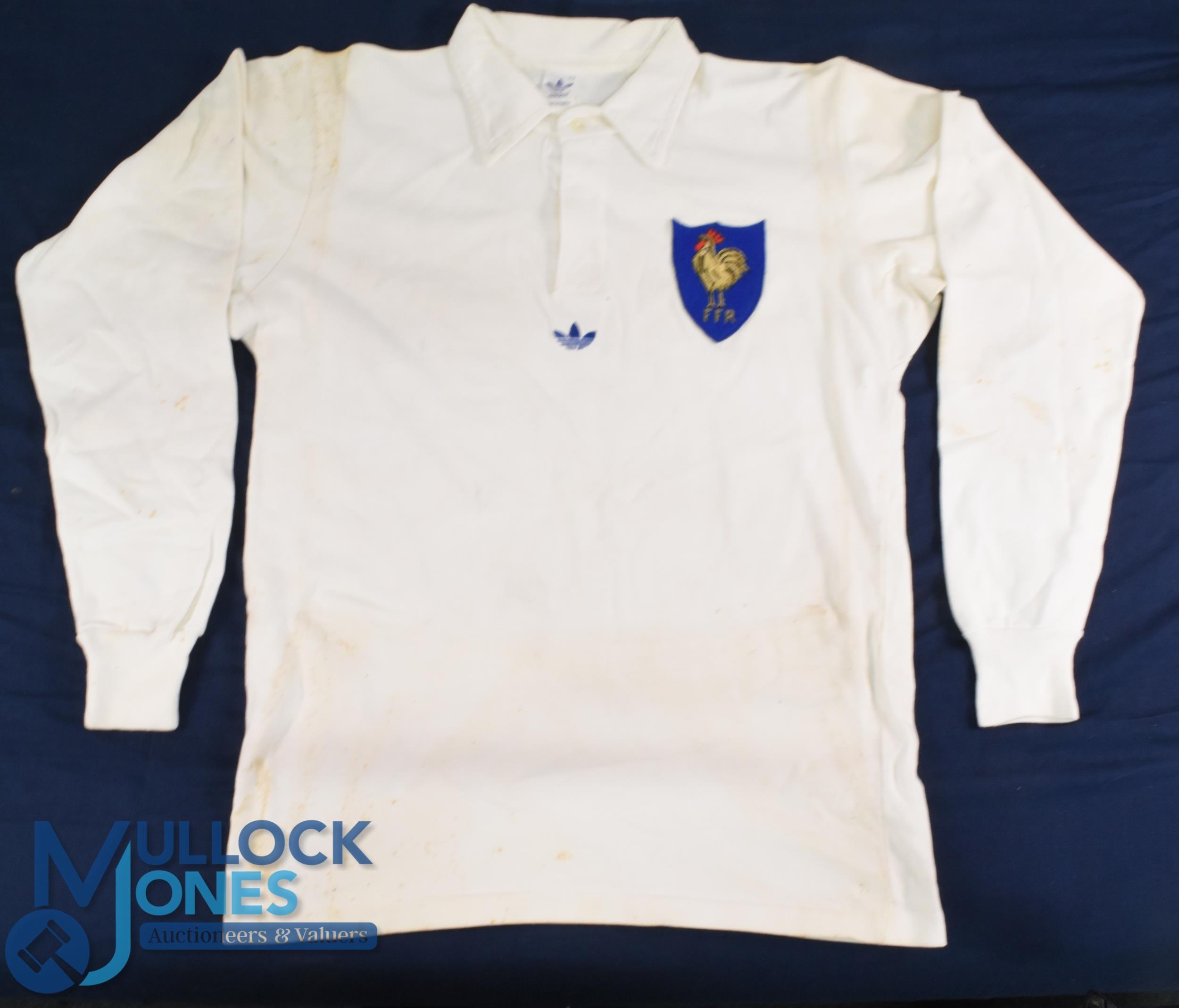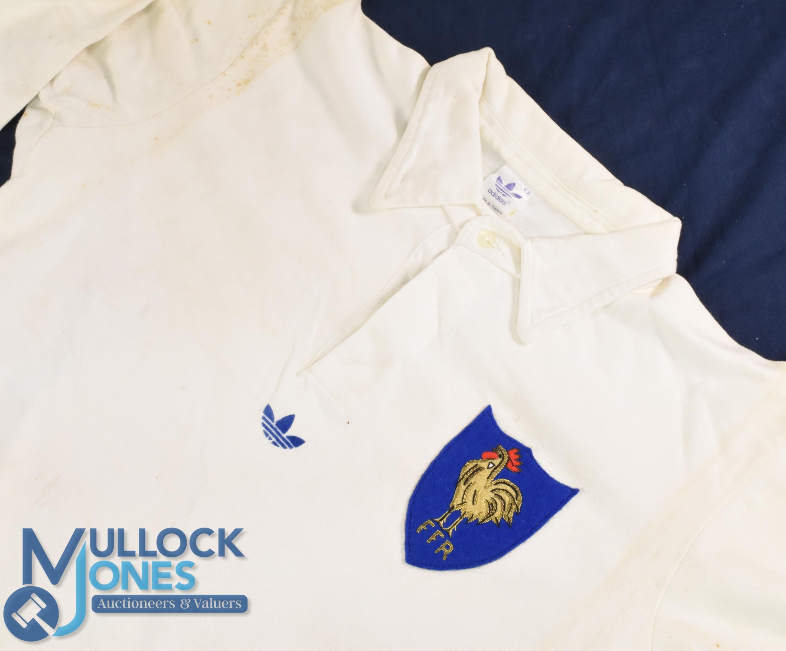 1979 Robert Paparamborde Matchworn French Rugby Jersey: Very popular player in our previous sale, this time a v large white example, Adidas issue with no.3 to rear, lovely jersey from a legend