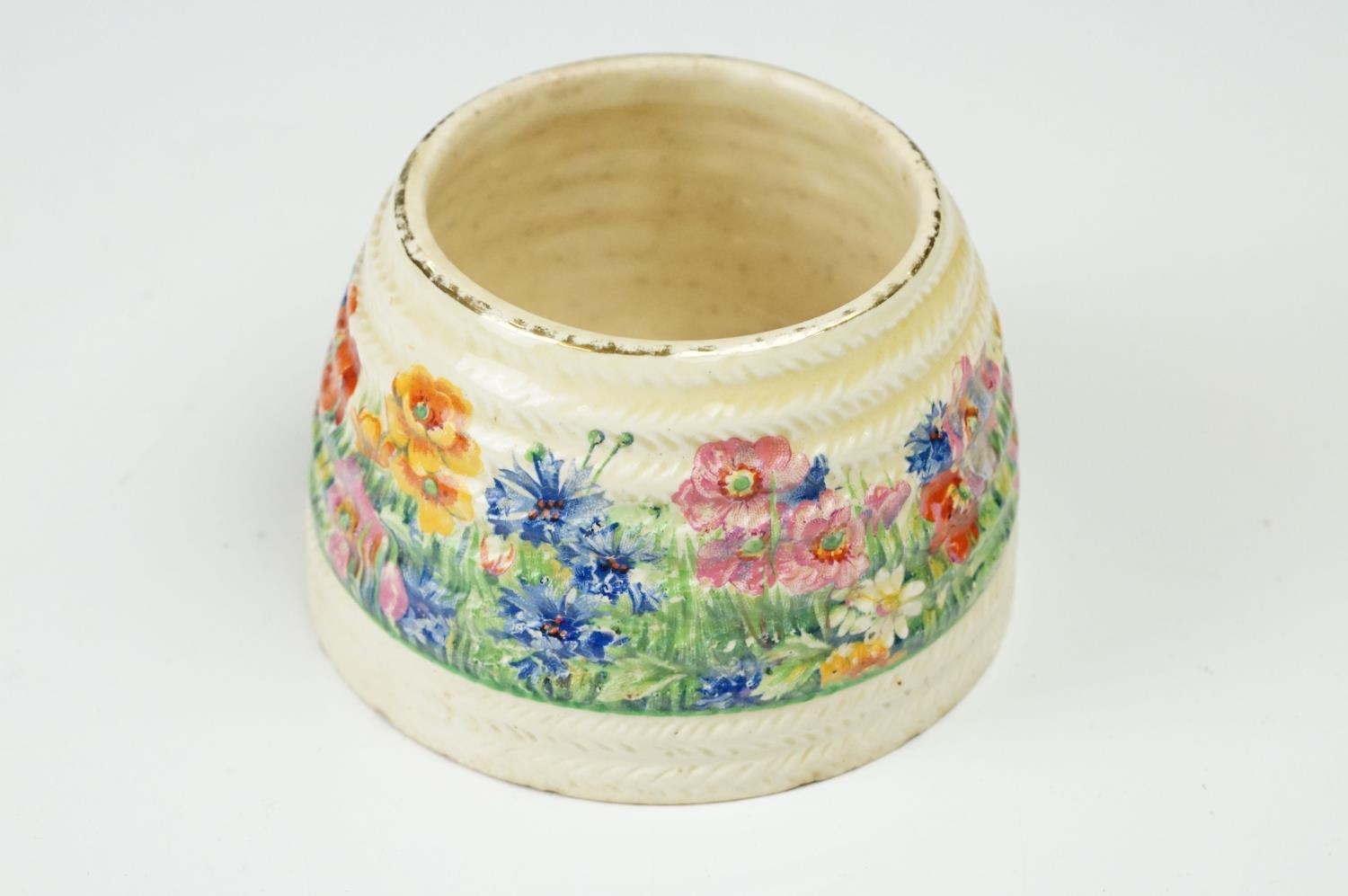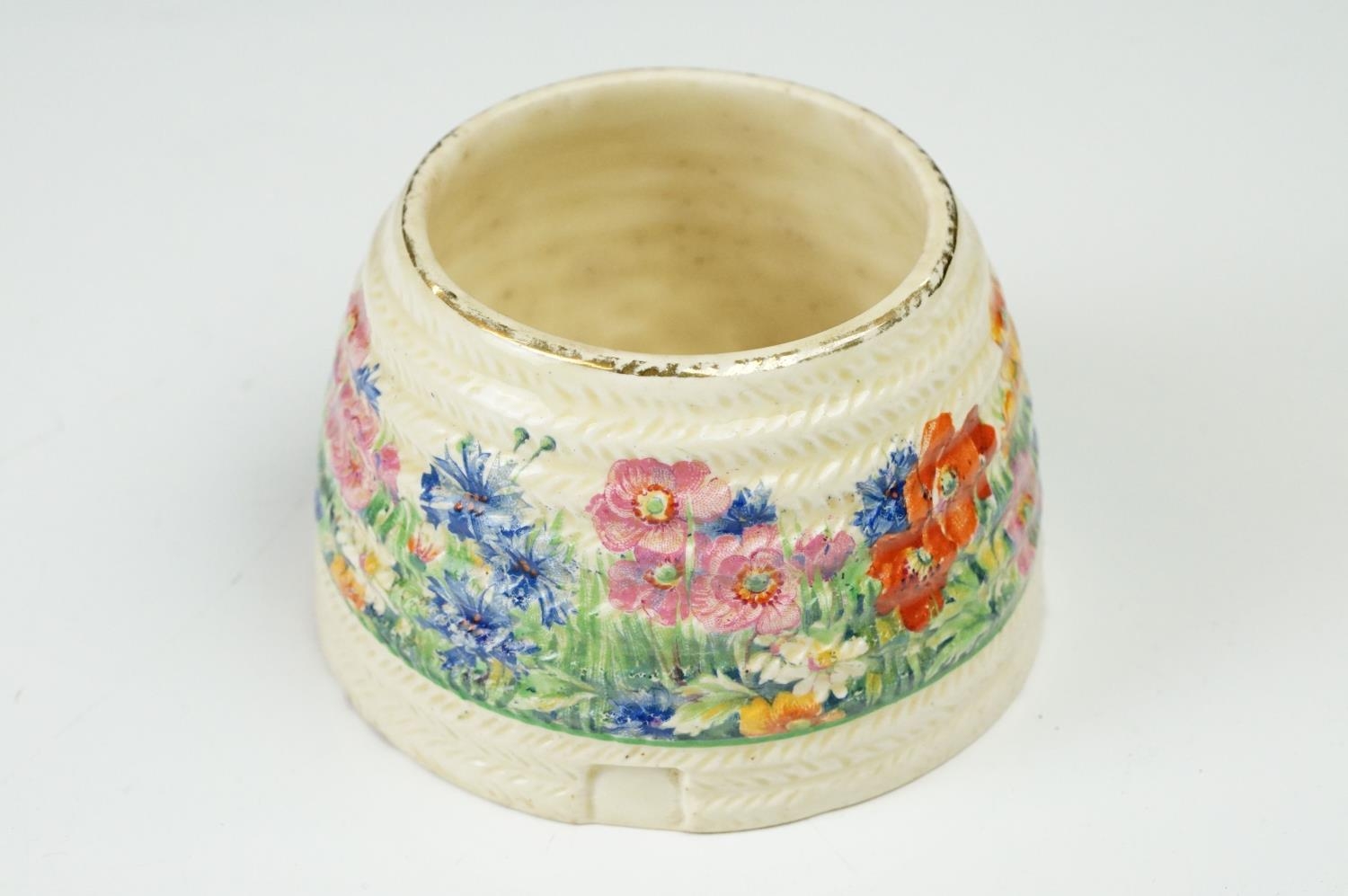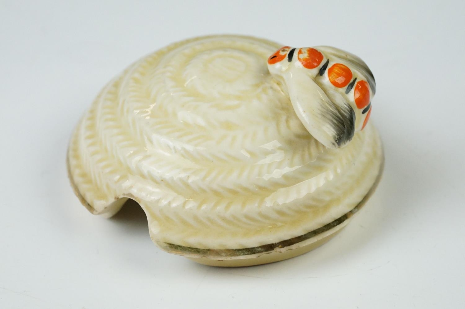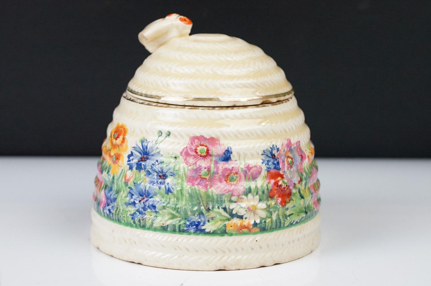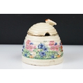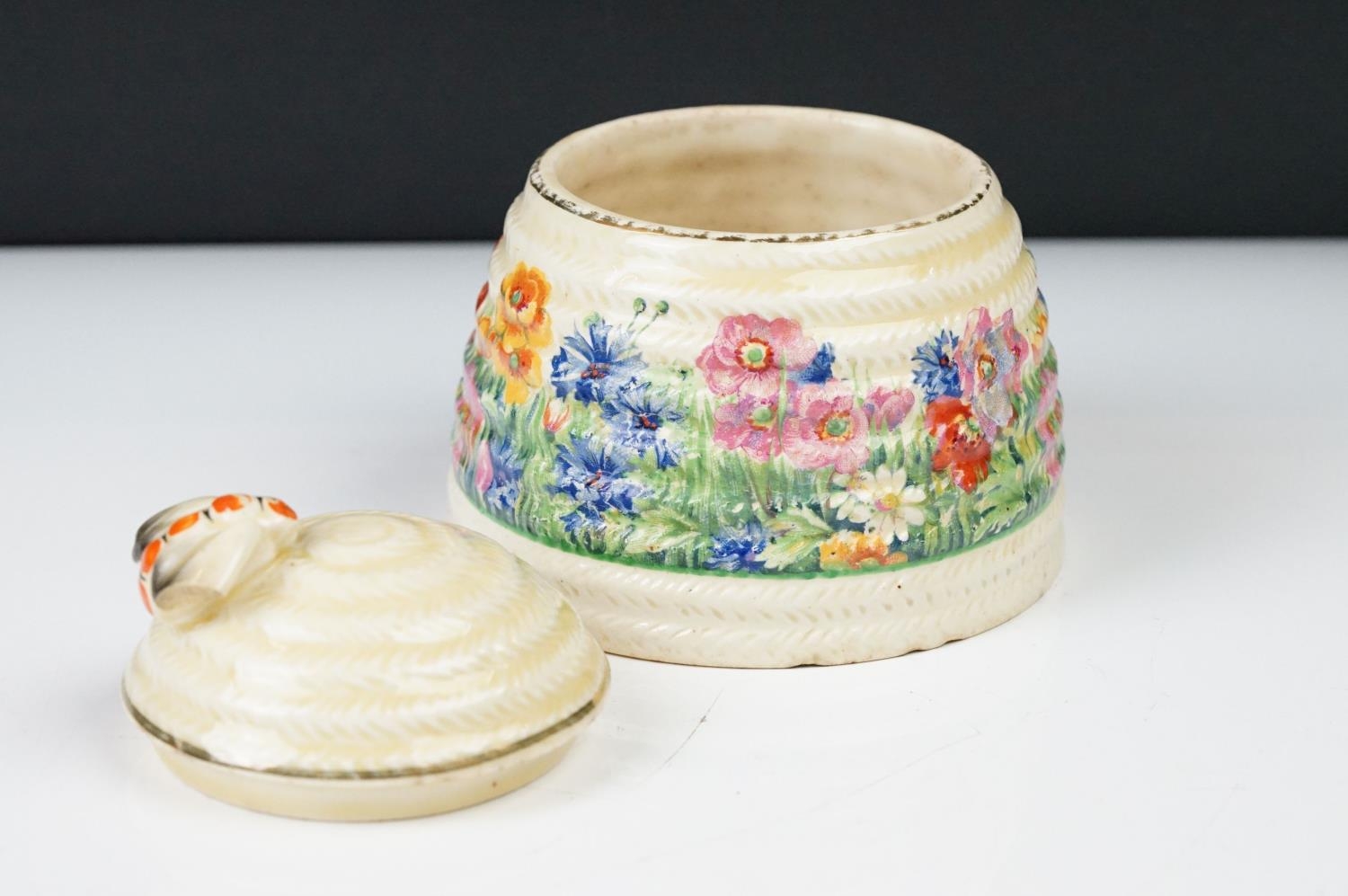 Clarice Cliff Pottery Beehive Honey Pot in the Radiance pattern (damage to wing of bee), 11cm high