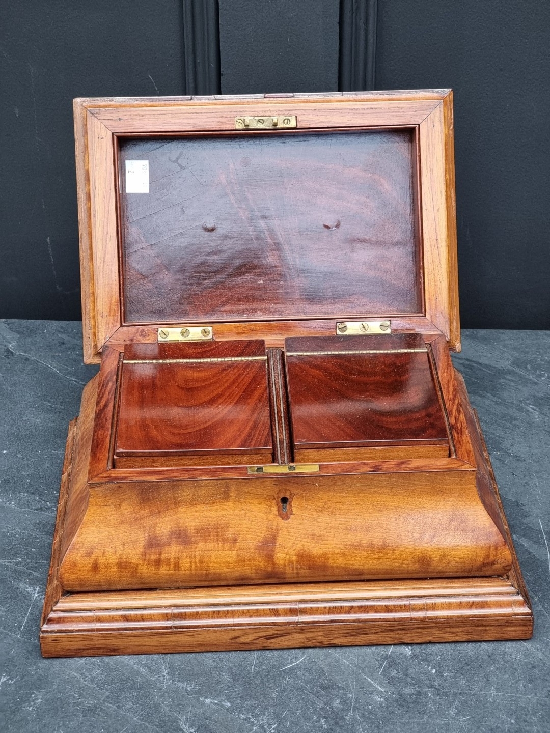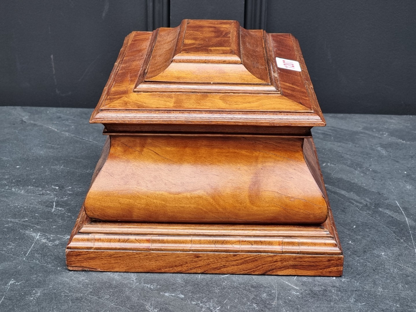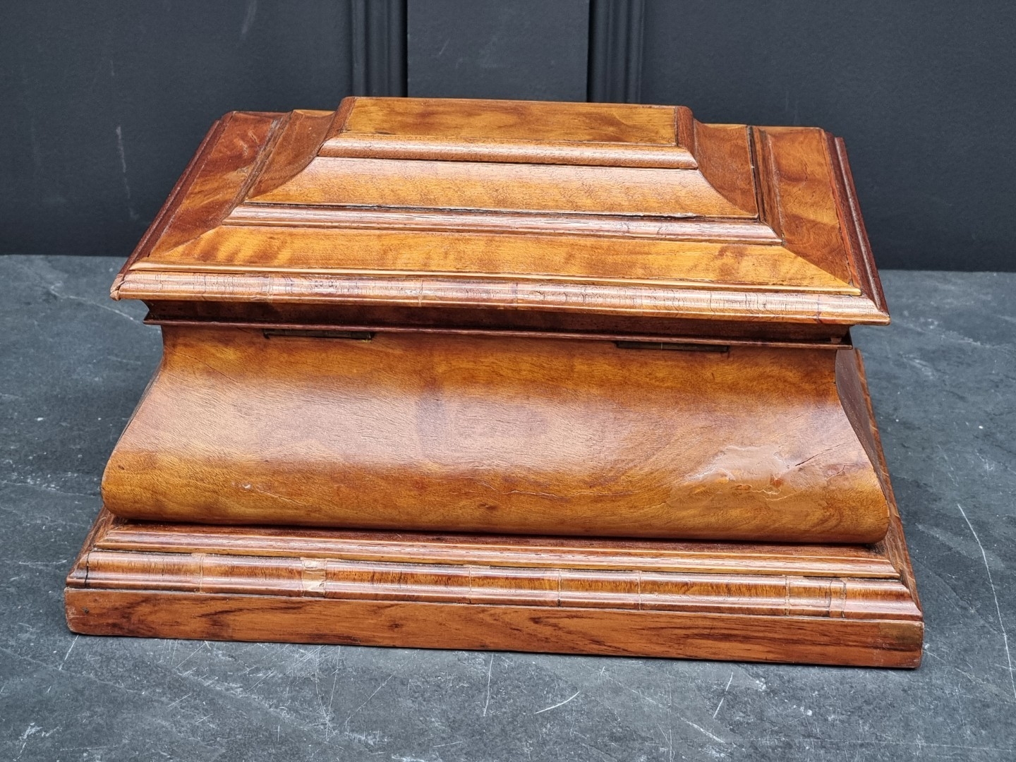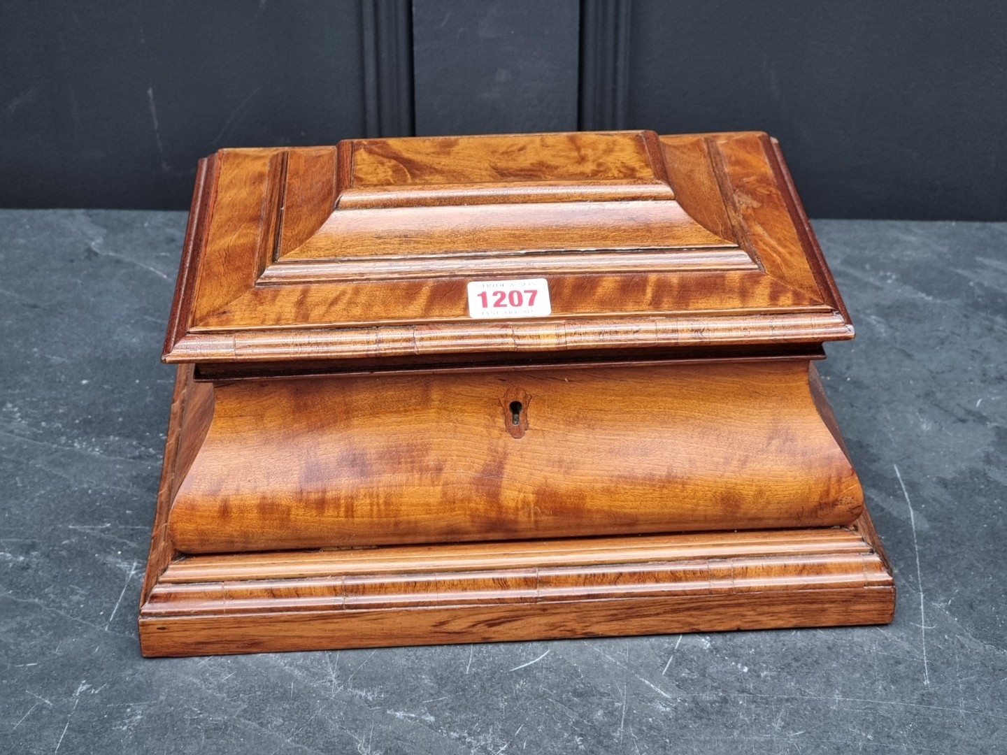 A 19th century mahogany bombe form tea caddy, 31cm wide.