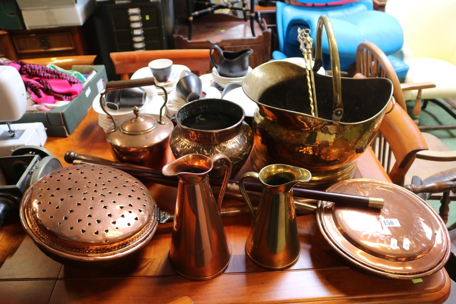 Collection of assorted Copper and Brassware to include Bed Warmers, Kettle, Coal Helmet etc