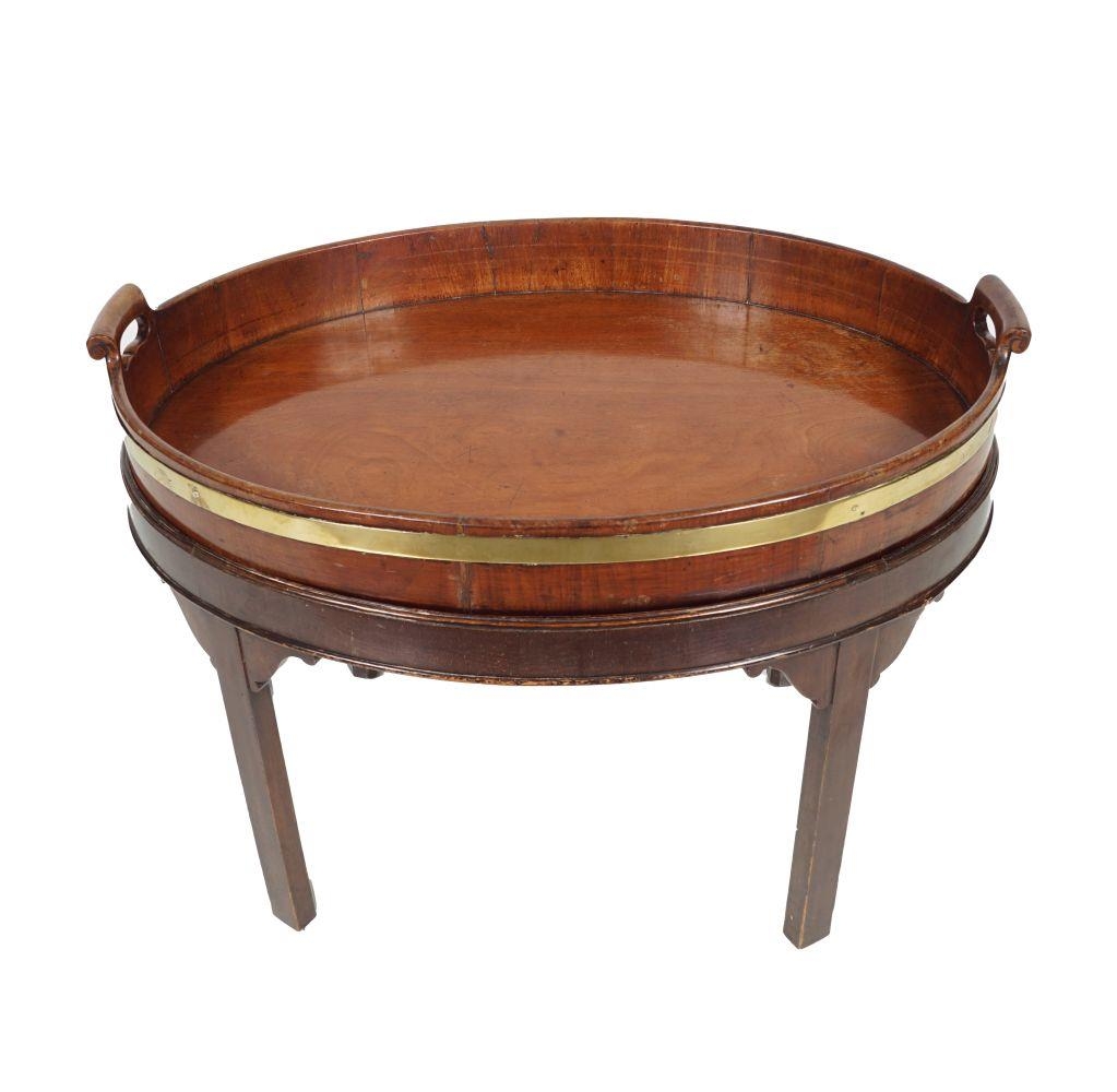 LARGE GEORGE III BRASS BOUND TRAY ON STAND