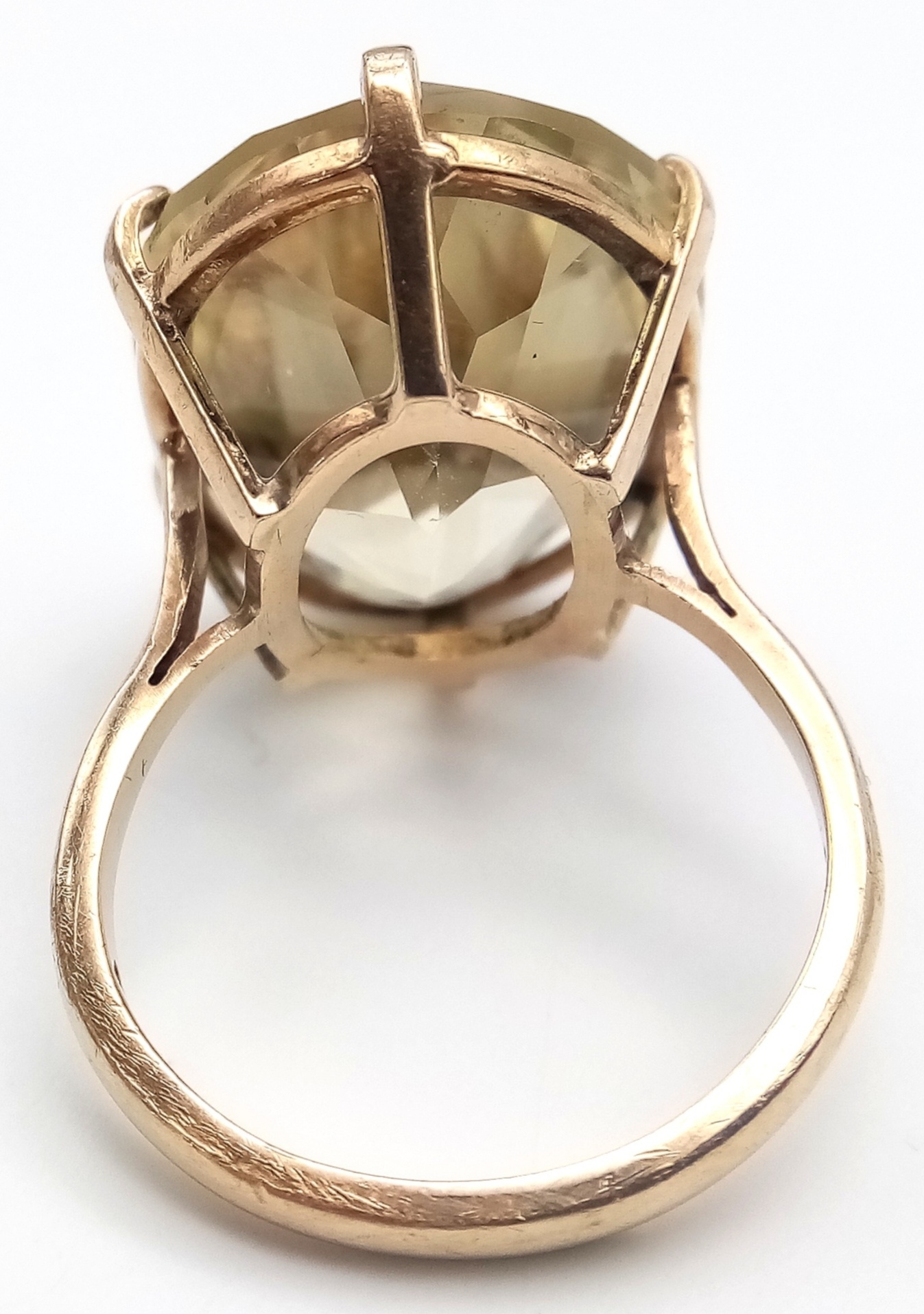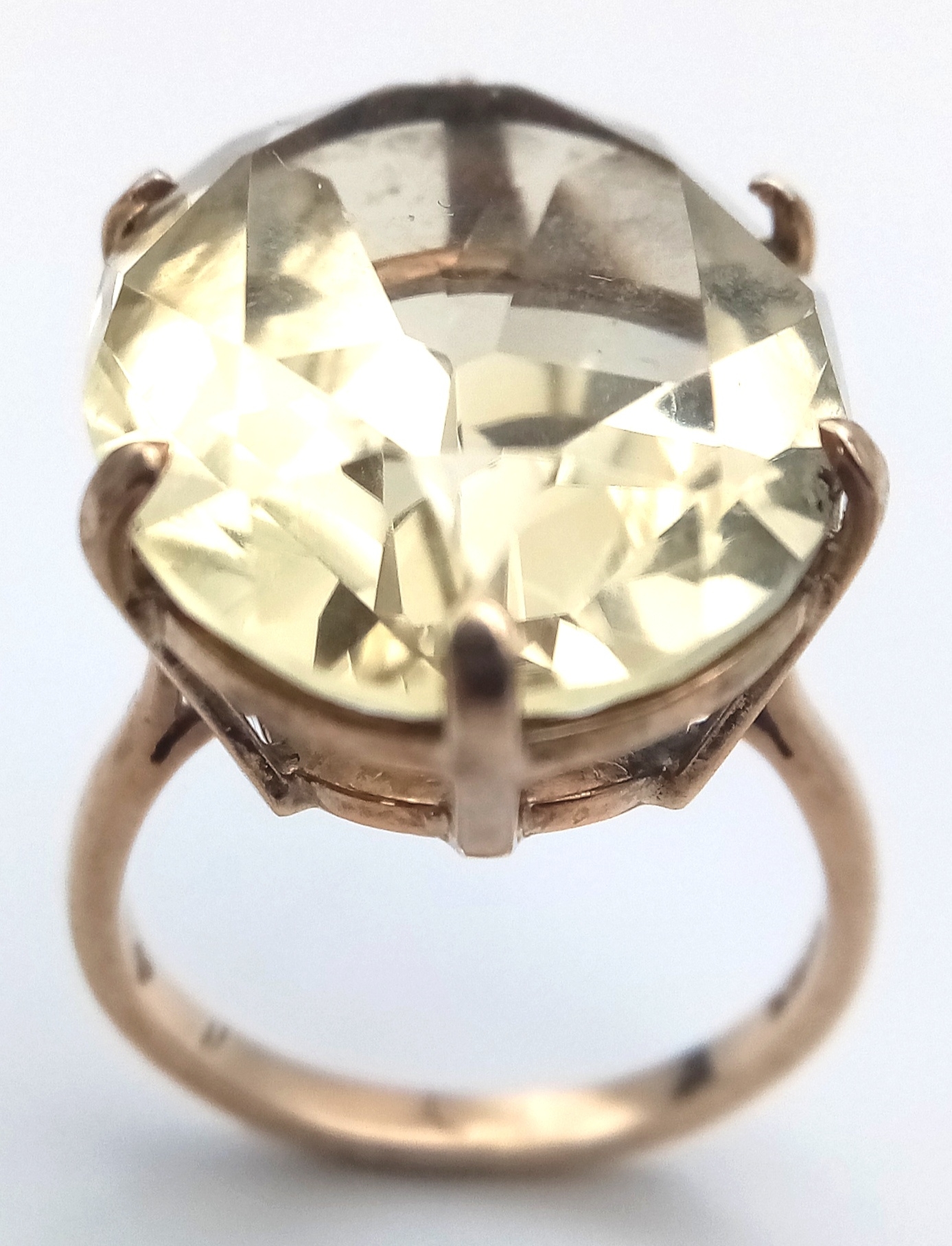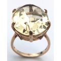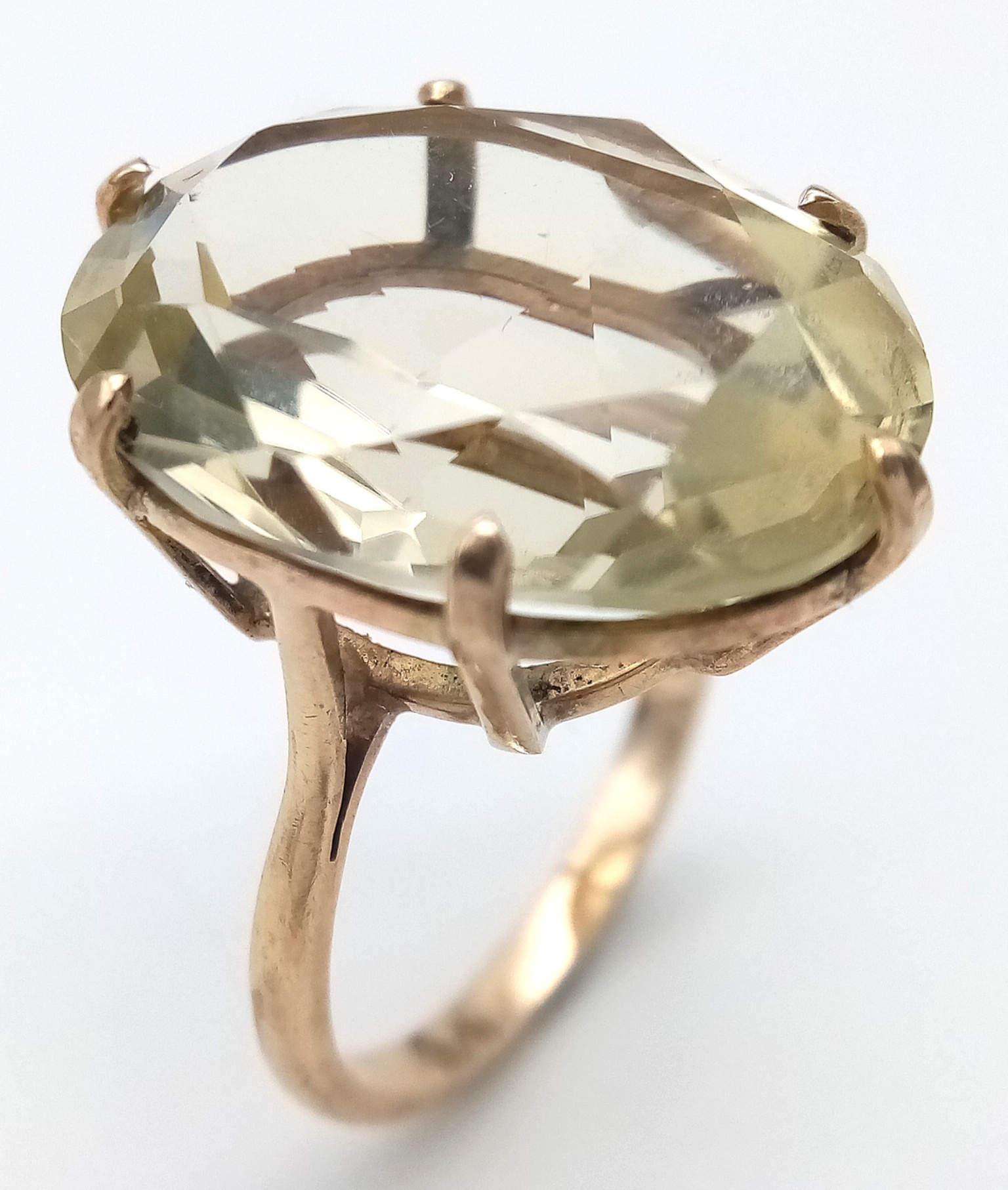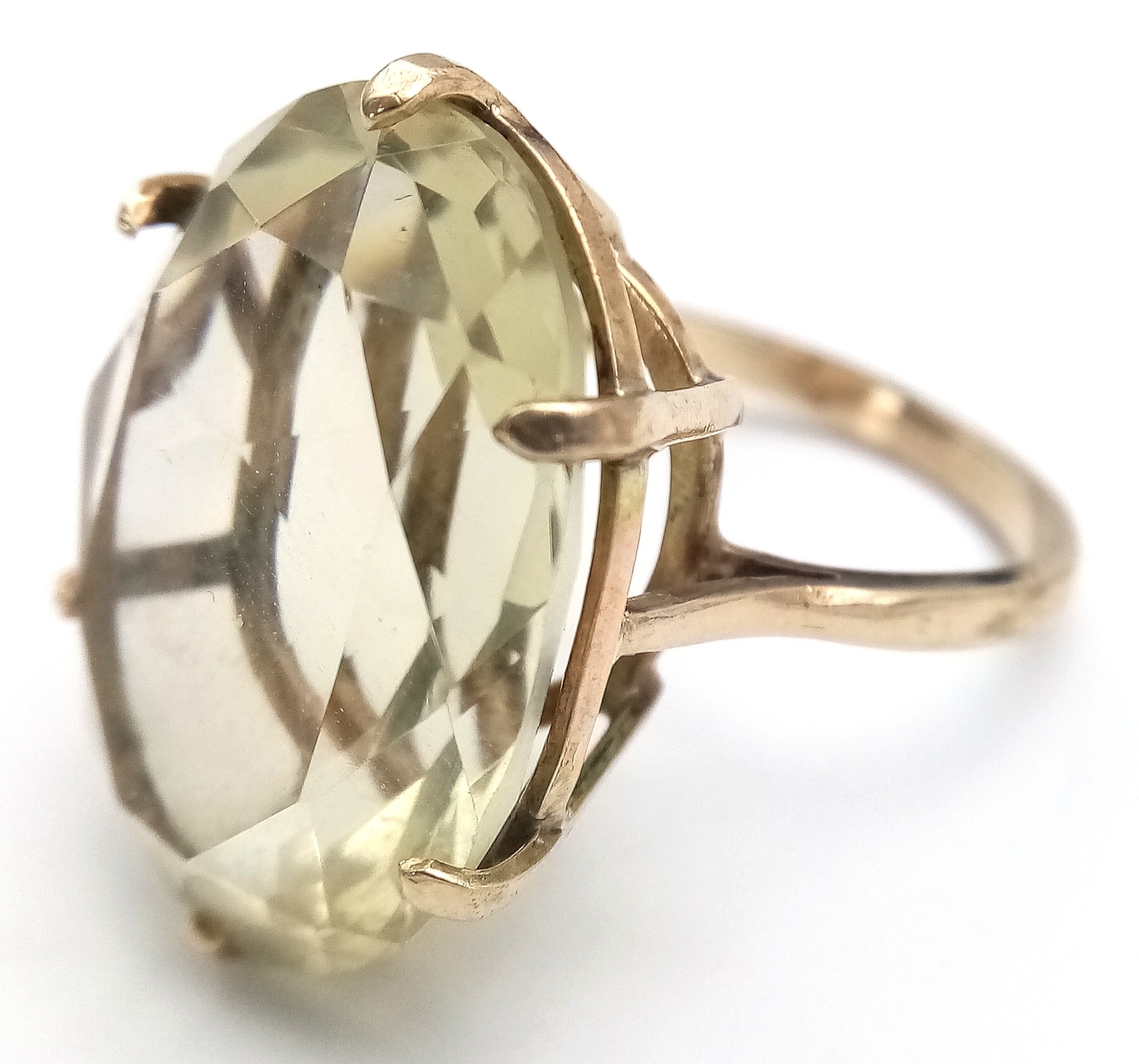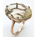 Magnificent 9 CARAT GOLD RING Set with Large Pale CITRINE GEMSTONE. Oval Cut, Beautifully Faceted . Fully hallmarked. 7.0 Grams. Size M 1/2. Really Impressive, please see pictures.