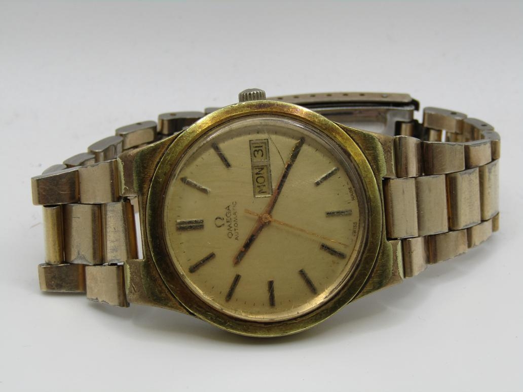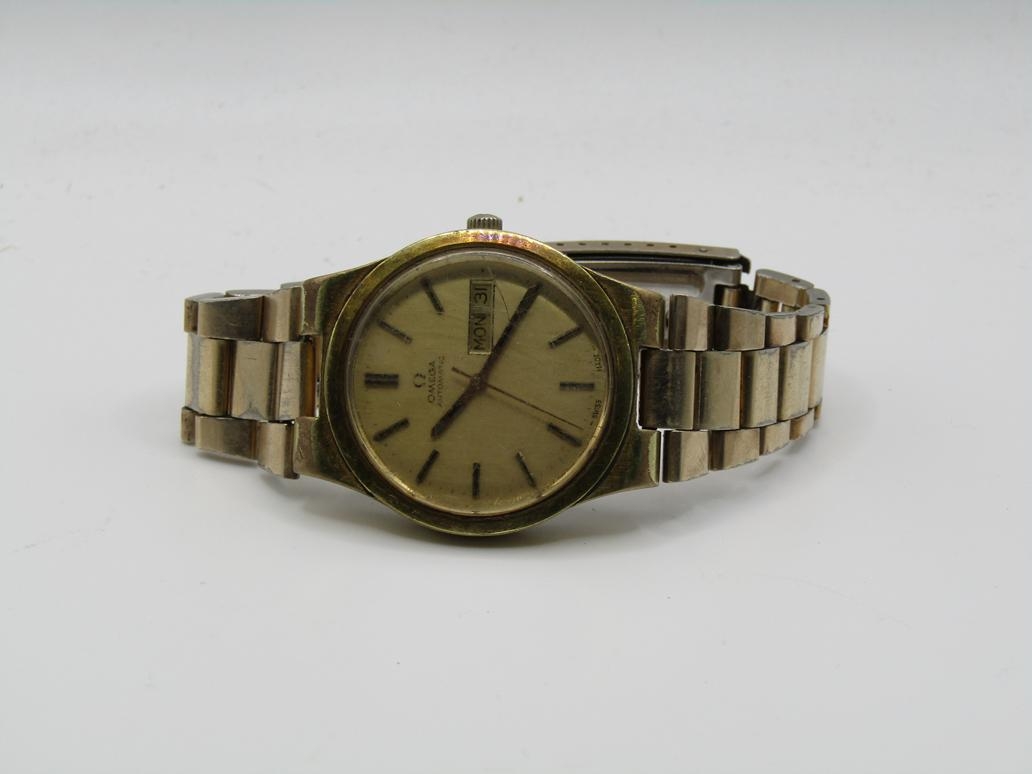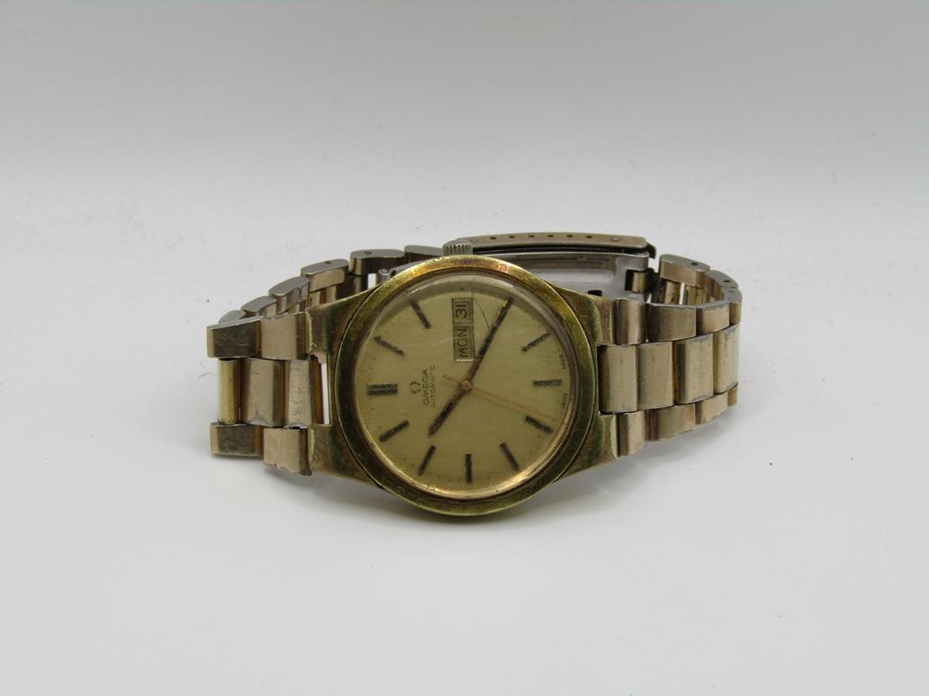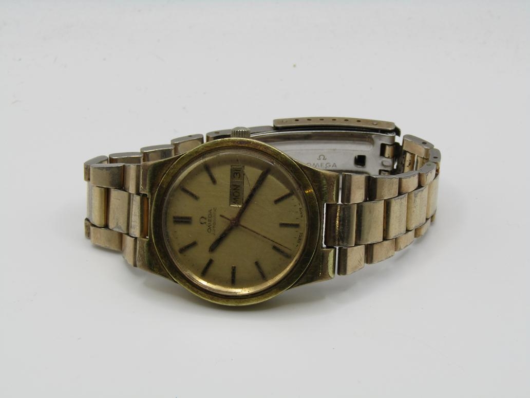 VINTAGE GOLD TONED OMEGA GENEVE AUTOMATIC DAY DATE WATCH