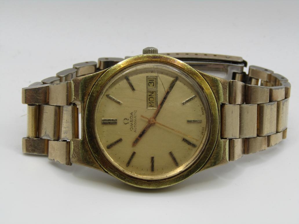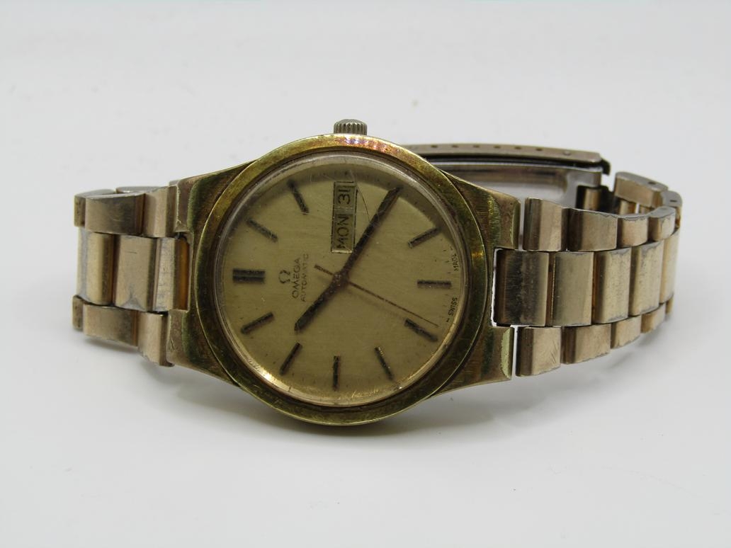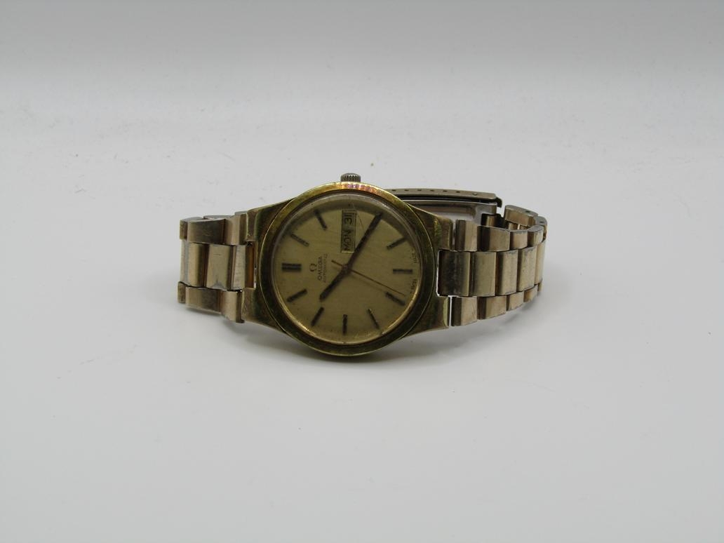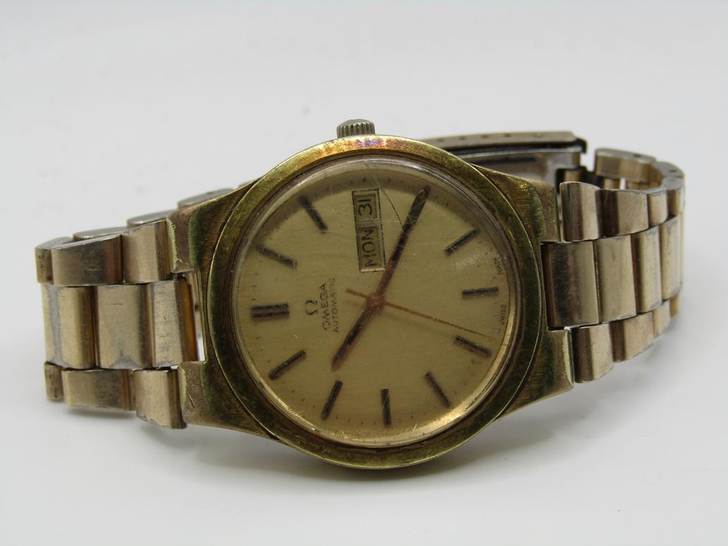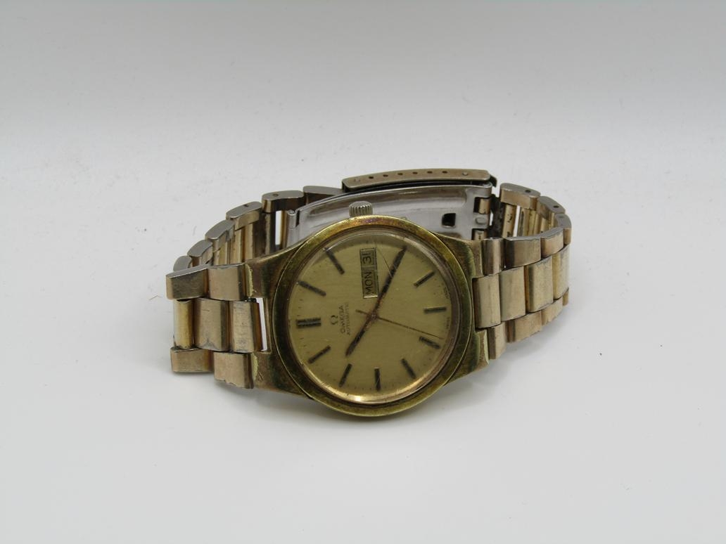 VINTAGE GOLD TONED OMEGA GENEVE AUTOMATIC DAY DATE WATCH