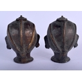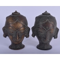 A PAIR OF ANTIQUE INDIAN BRONZE HINDU BUDDHISTIC HEADS. 14 cm high.