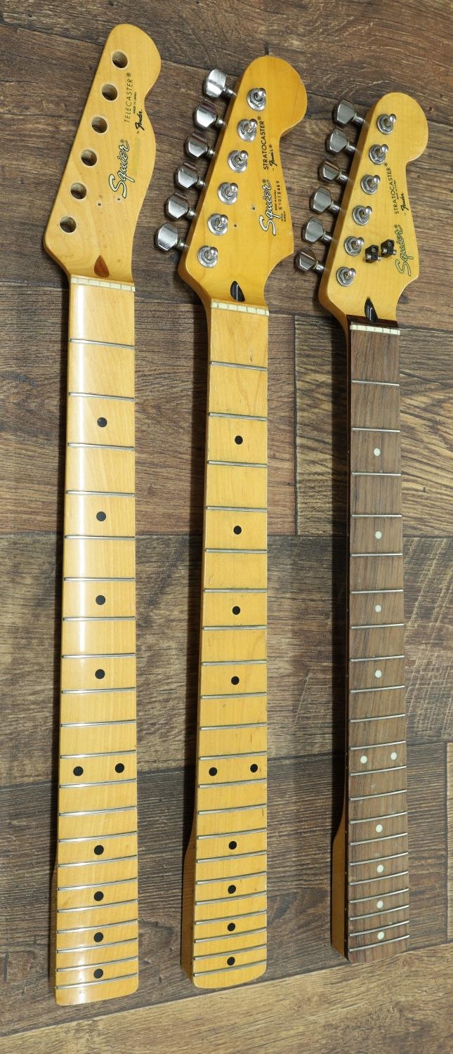 Three Squier guitar necks to include a 1980s Japanese Telecaster neck and two Korean Stratocaster necks (3)