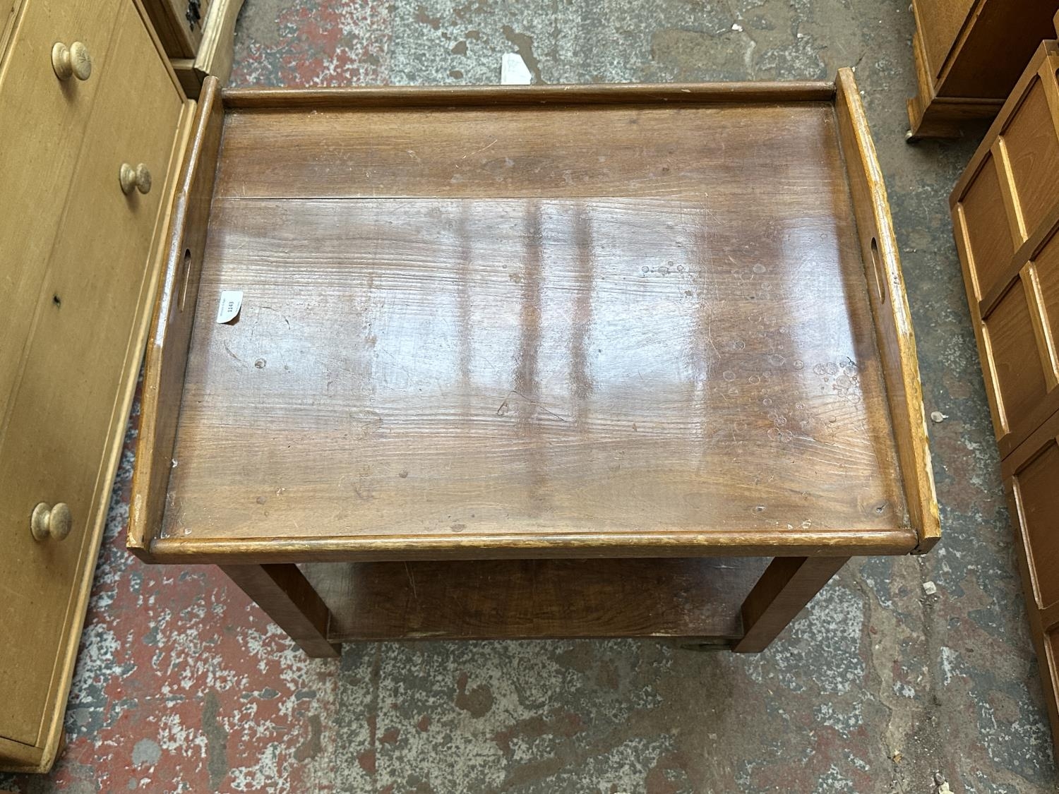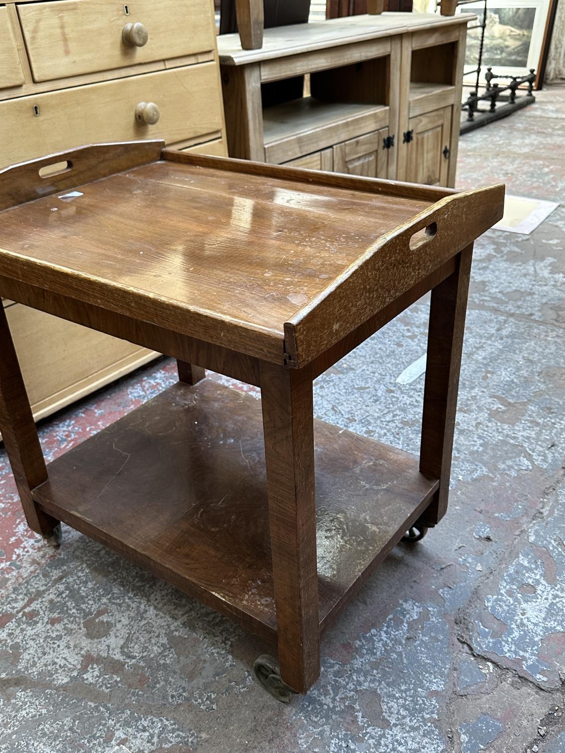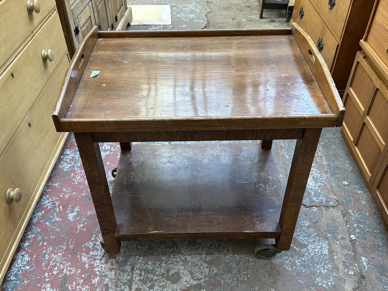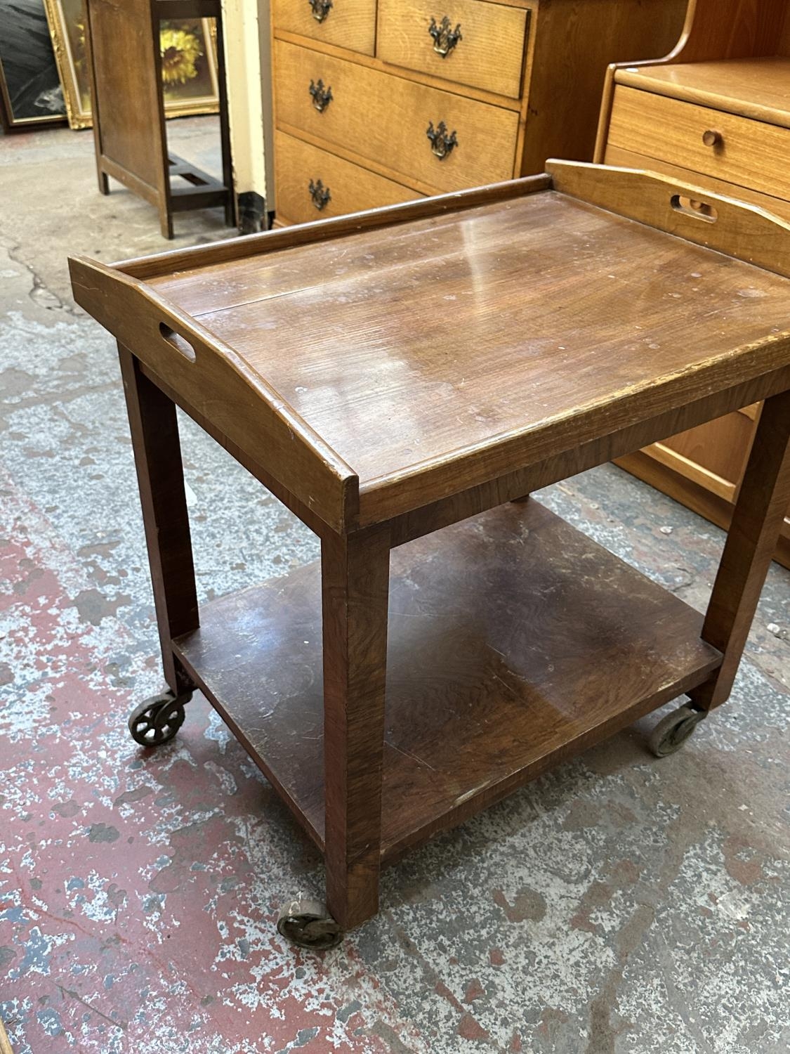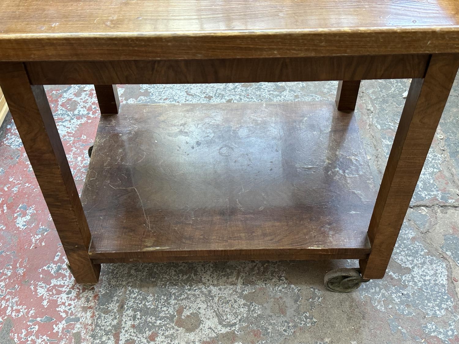 An Art Deco walnut two tier serving trolley with removable tray - approx. 74cm high x 54cm wide x 70cm deep