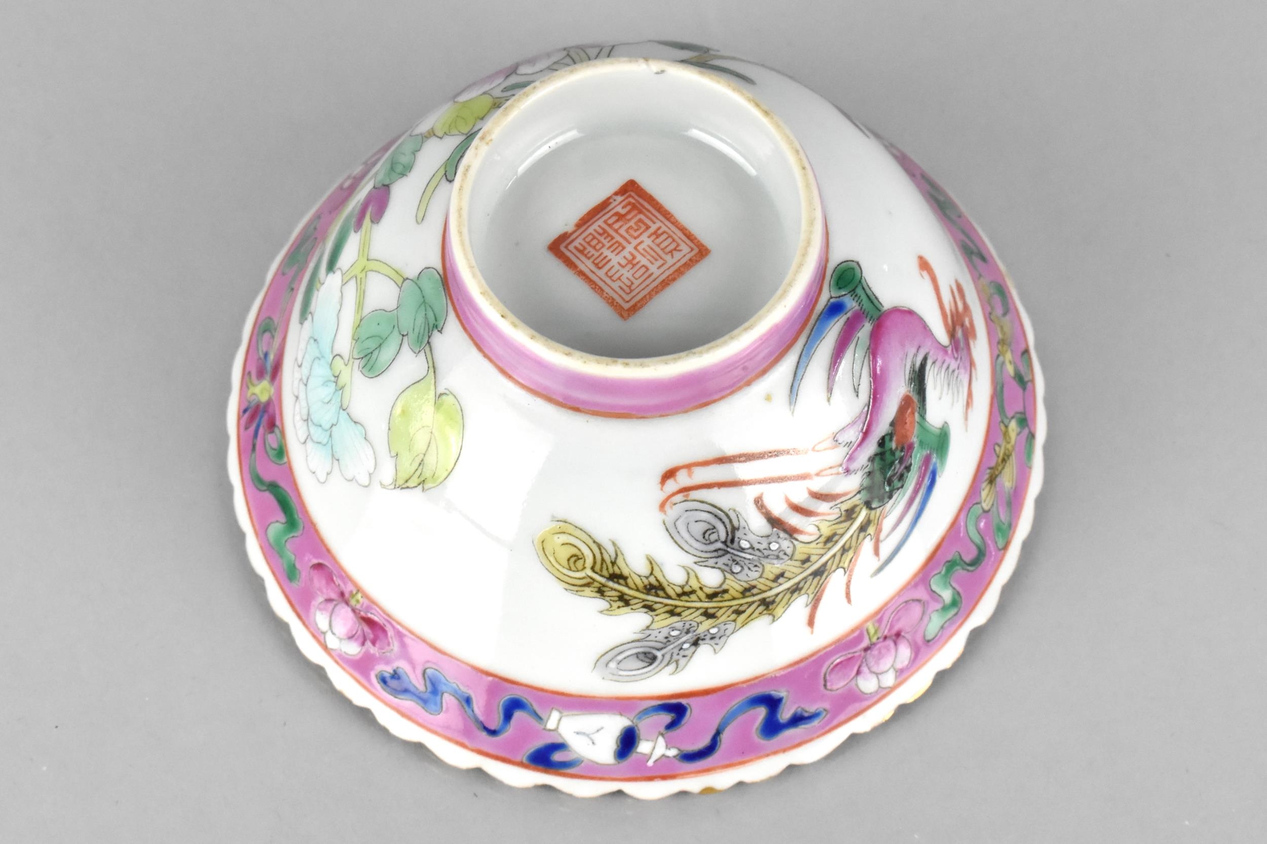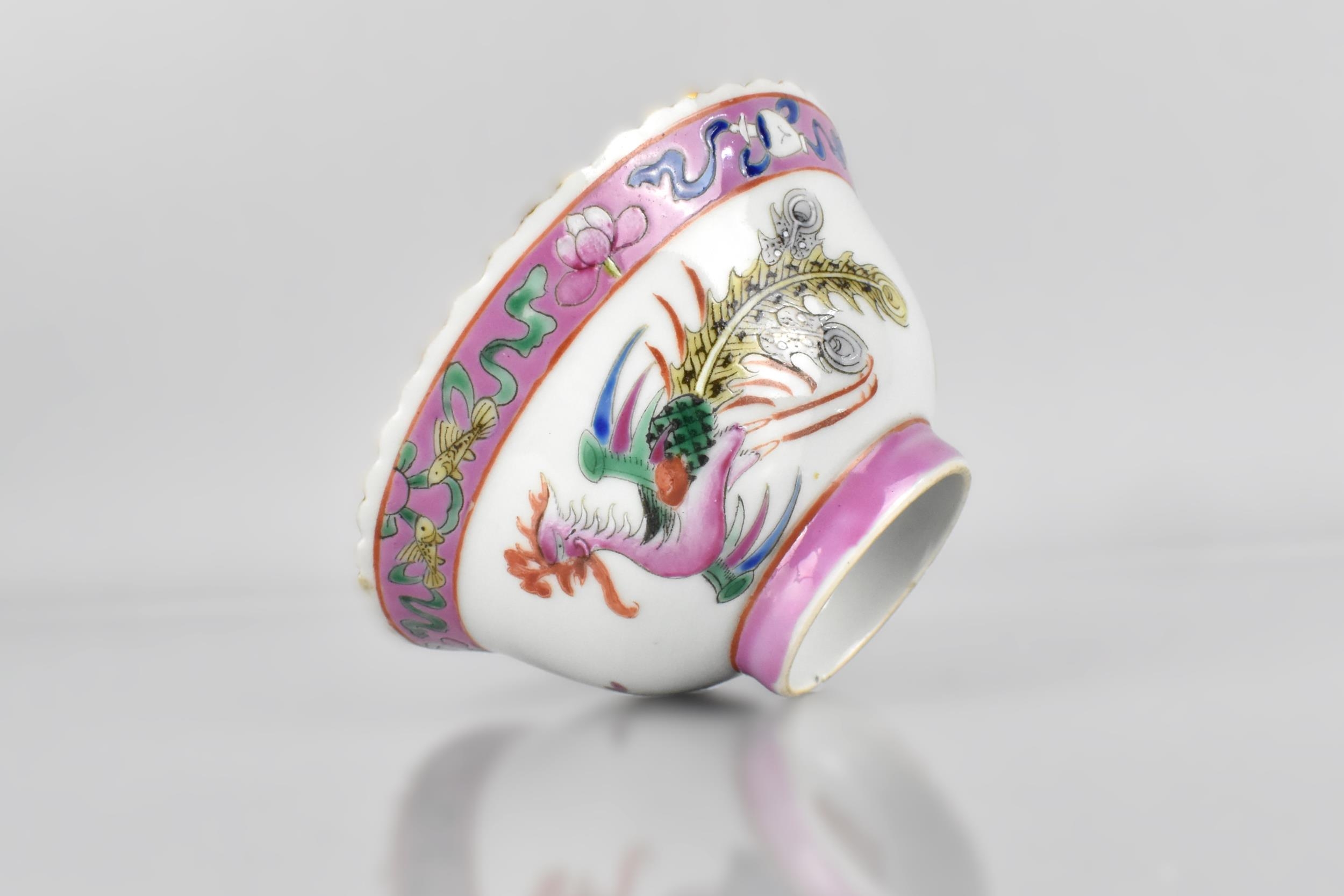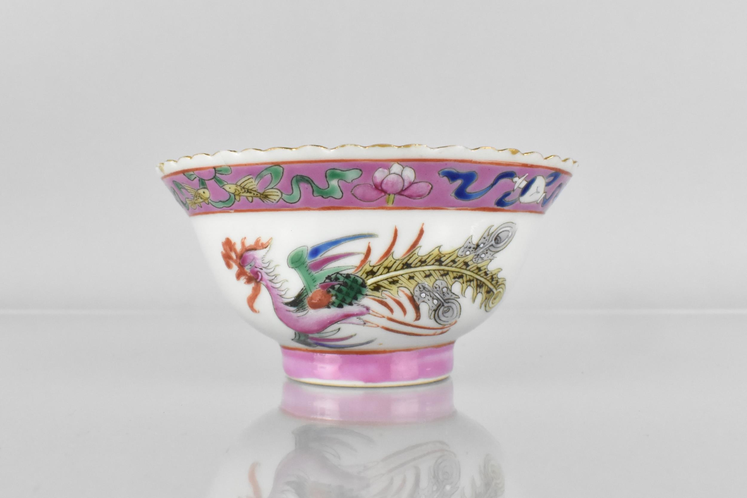 A Straits Chinese Nyonya Porcelain Tea Bowl, Decorated in The Famille Rose Palette with Phoenix and Chrysanthemum, Red Seal Mark to Base, 11cm Diameter and 5.5cm High
