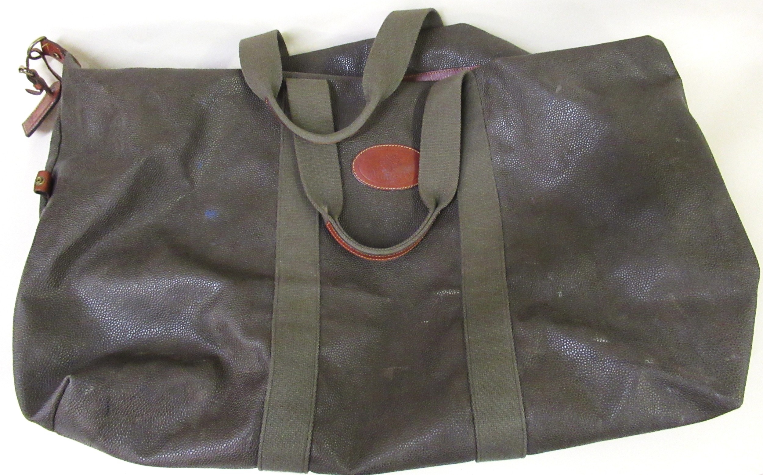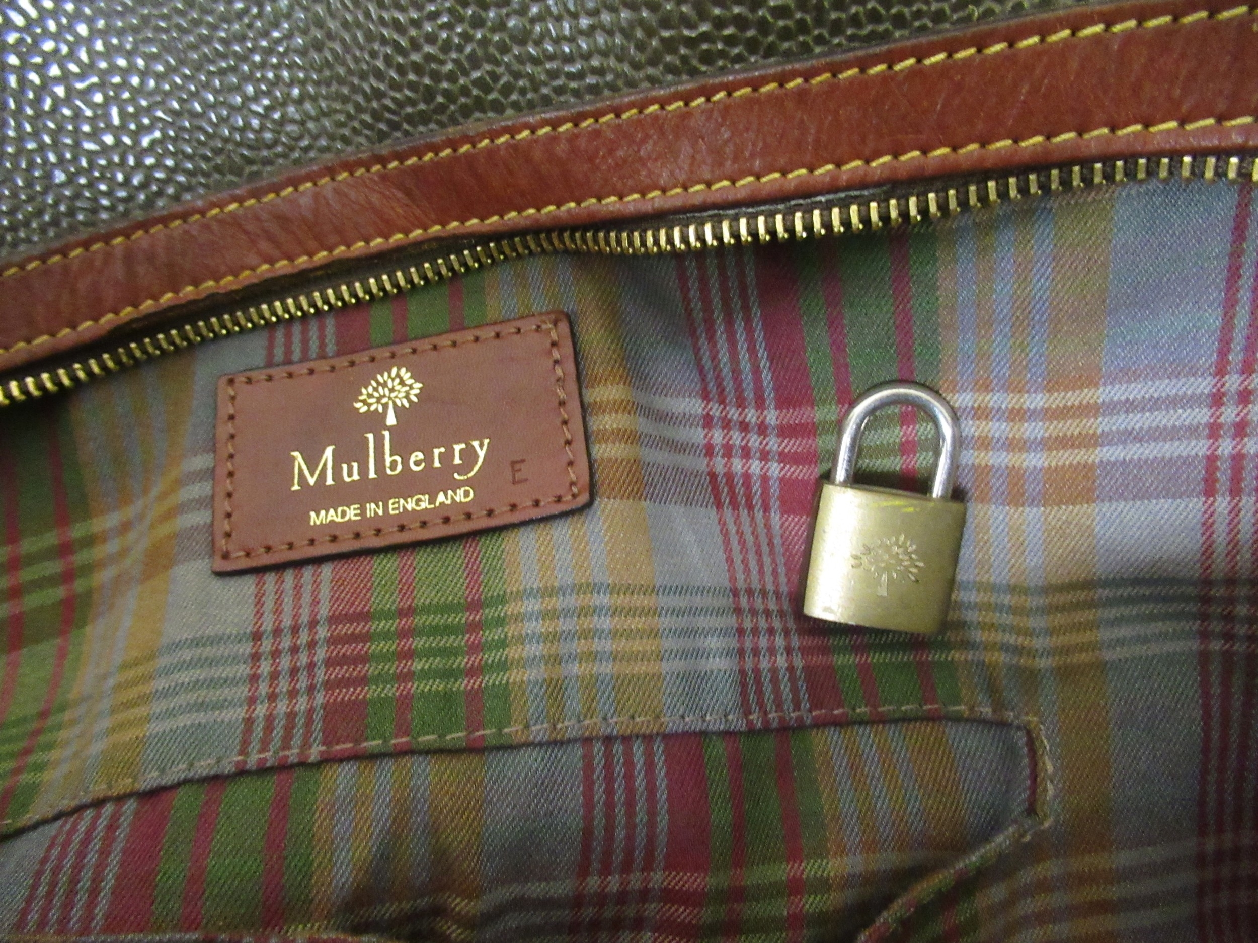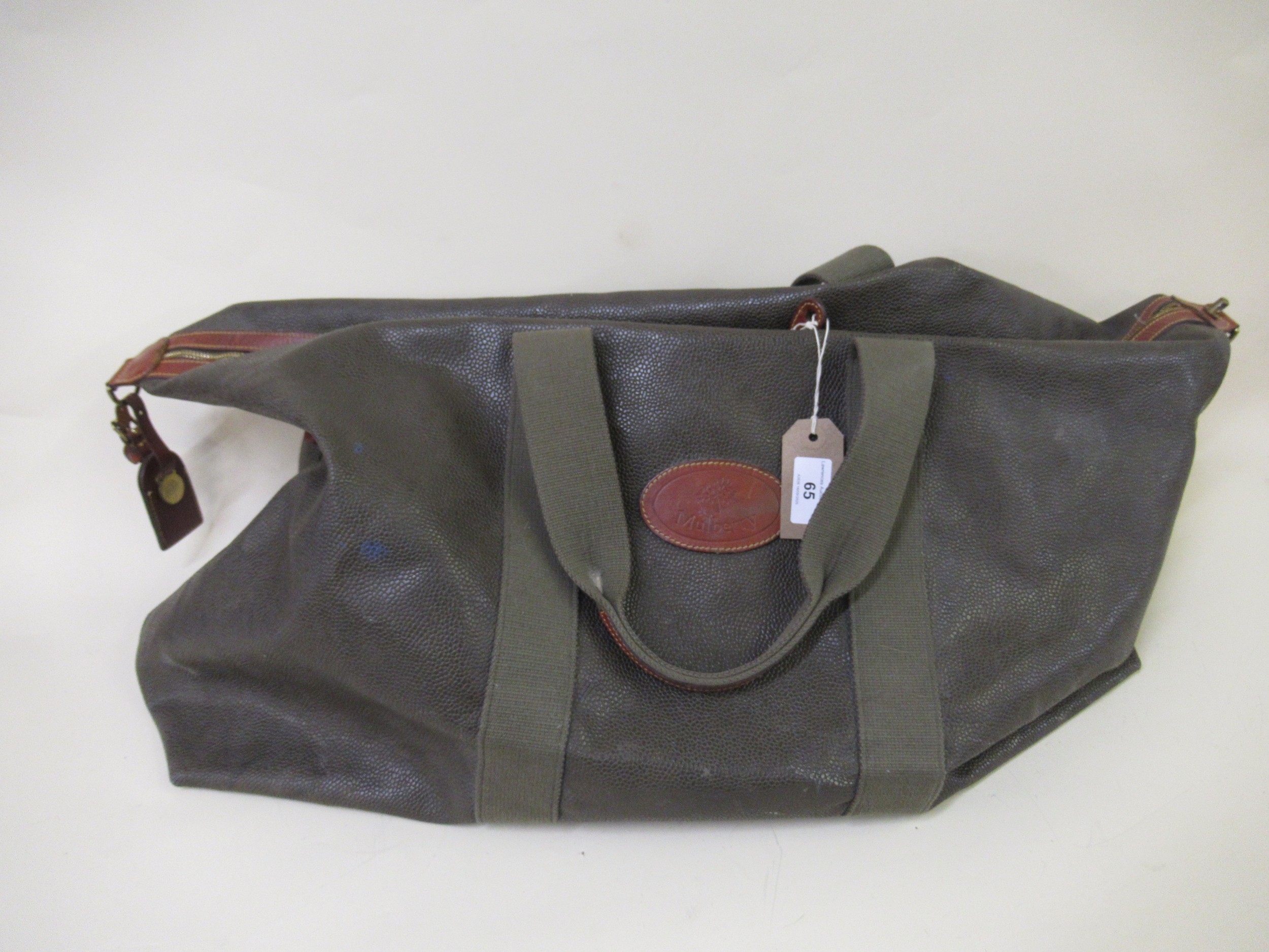 Mulberry, large clipper holdall in Scotchgrain with leather trim (with padlock - no key, lacking shoulder strap)