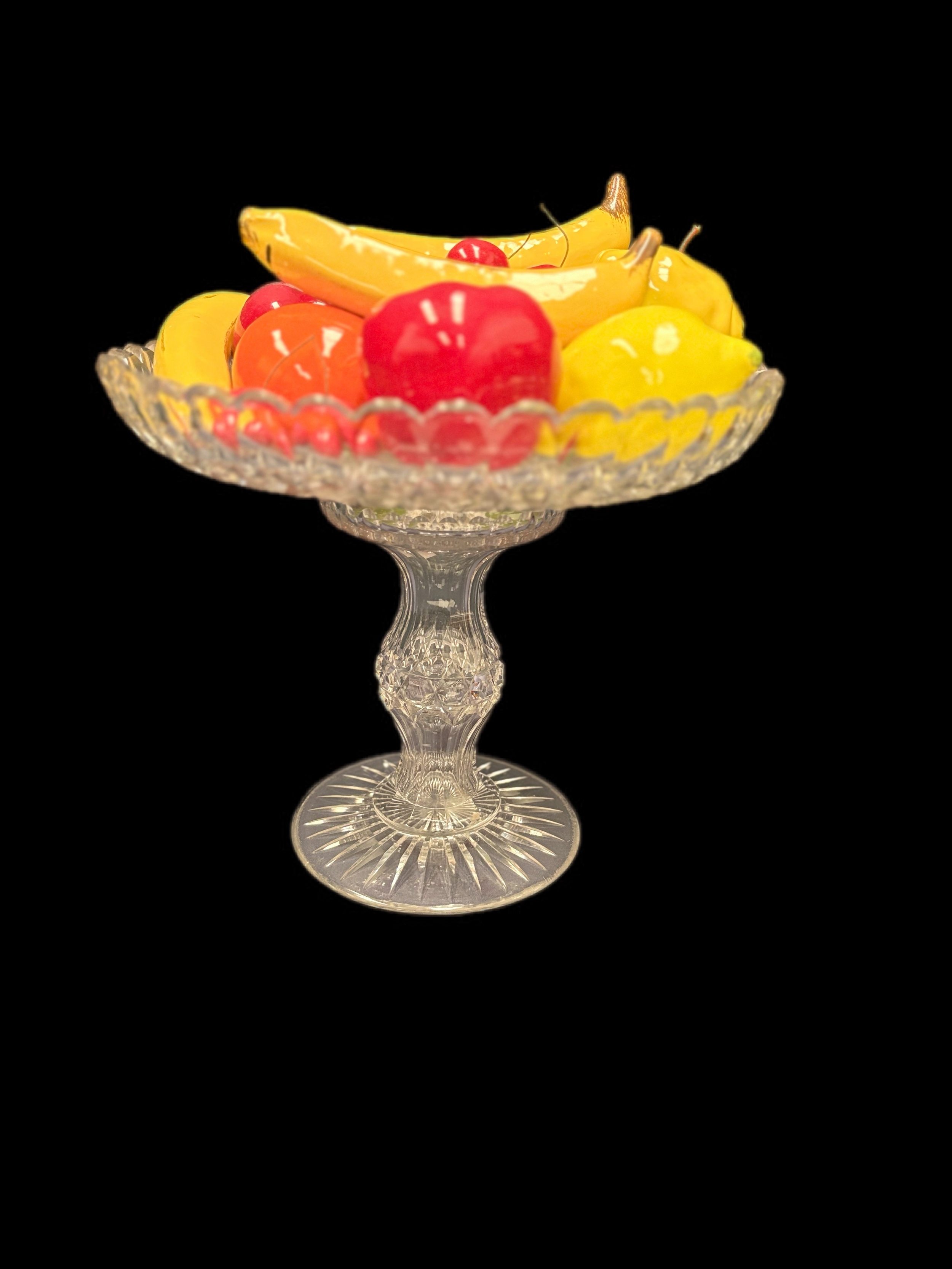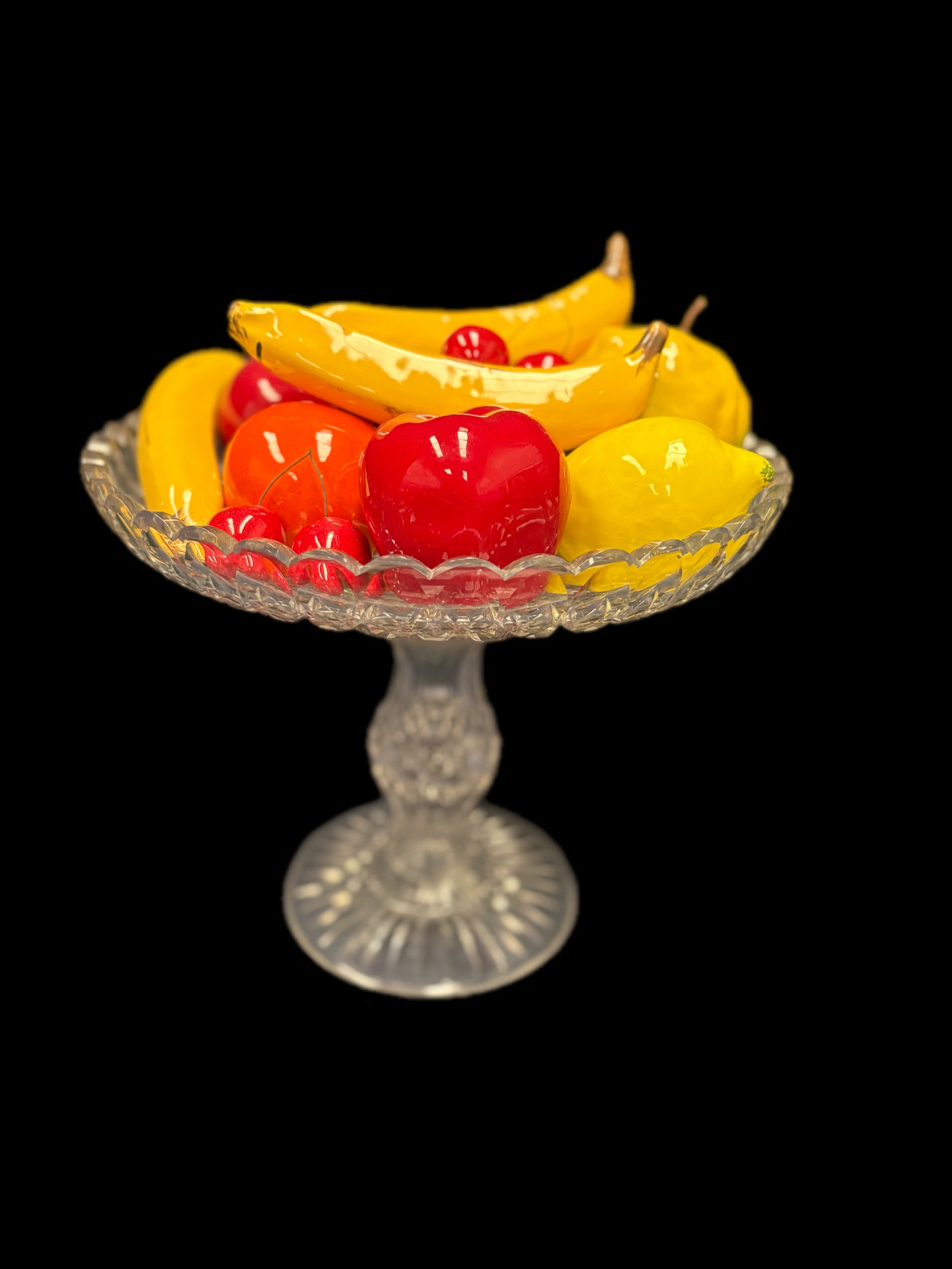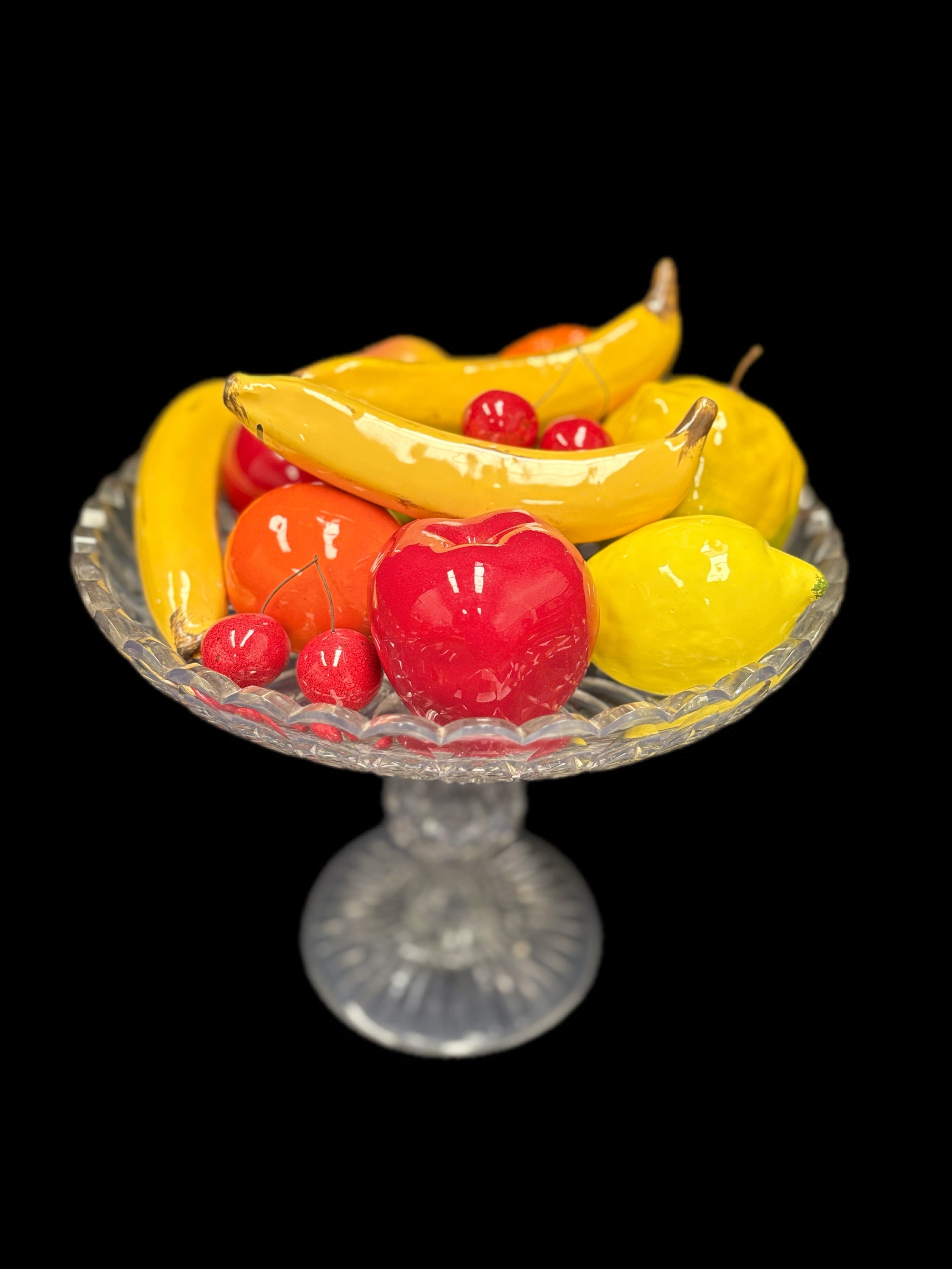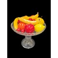 Large cut glass bowl, with ceramic fruitW31cm x H26cm