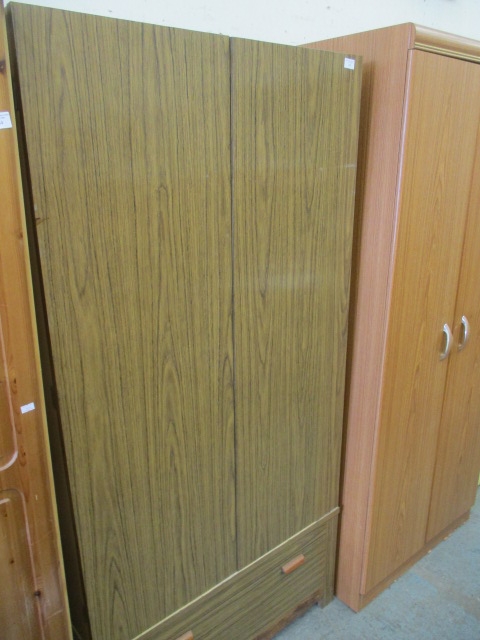 WOOD GRAIN EFFECT MELAMINE WARDROBE WITH DRAWER UNDER