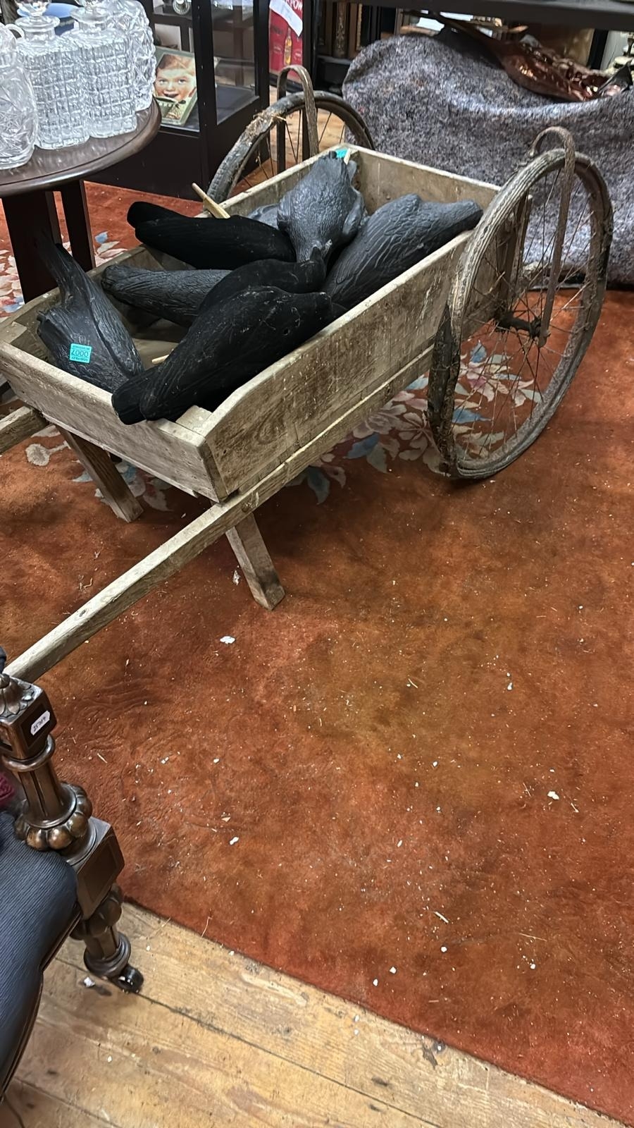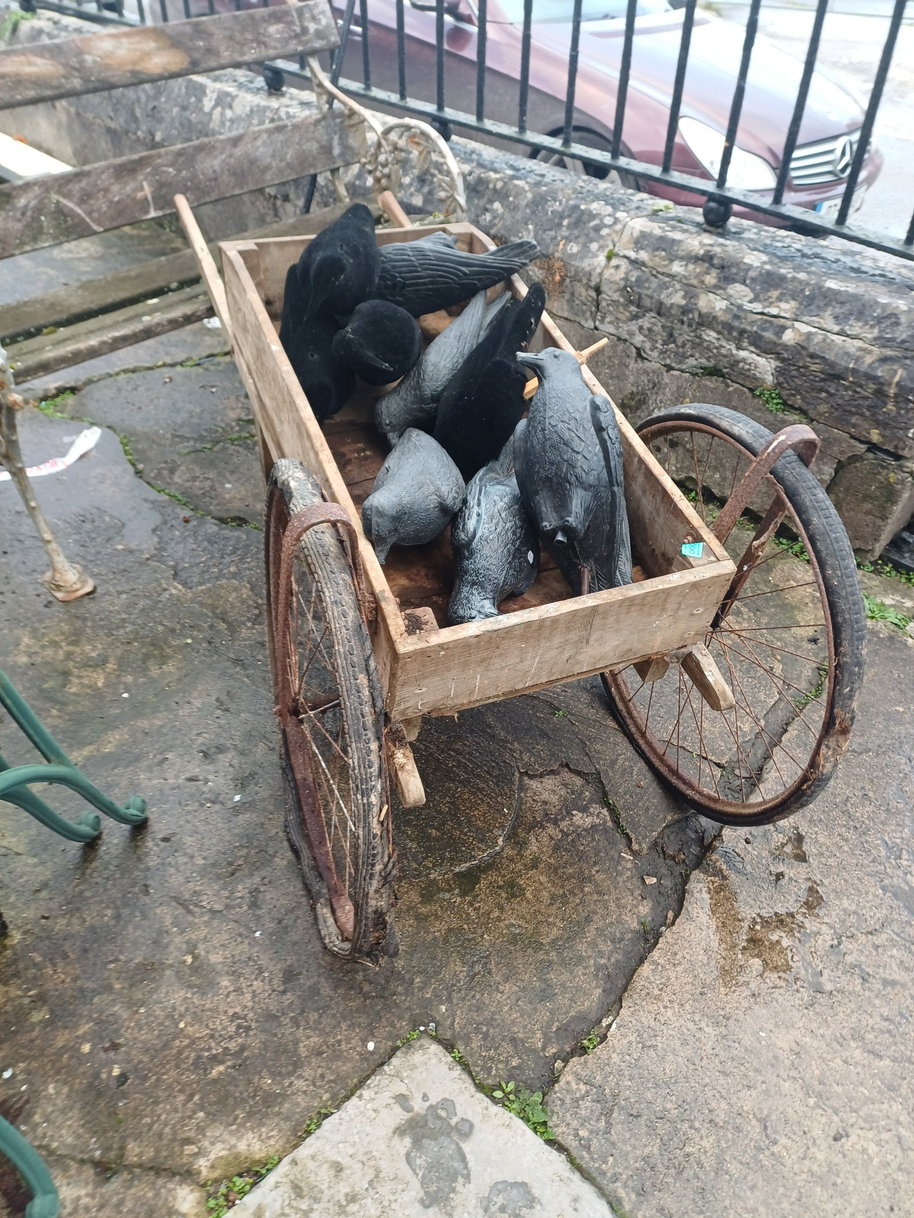 Old Pine Garden Trolley with 2 Large Wheels (needs attention)