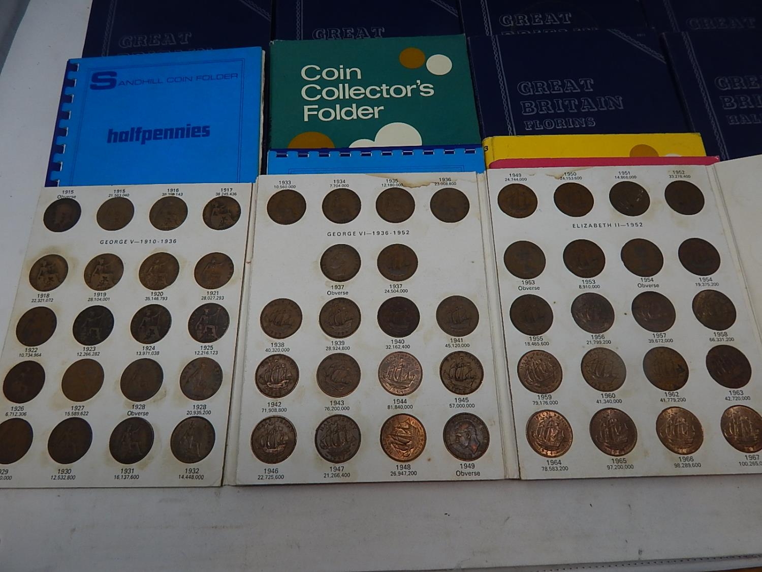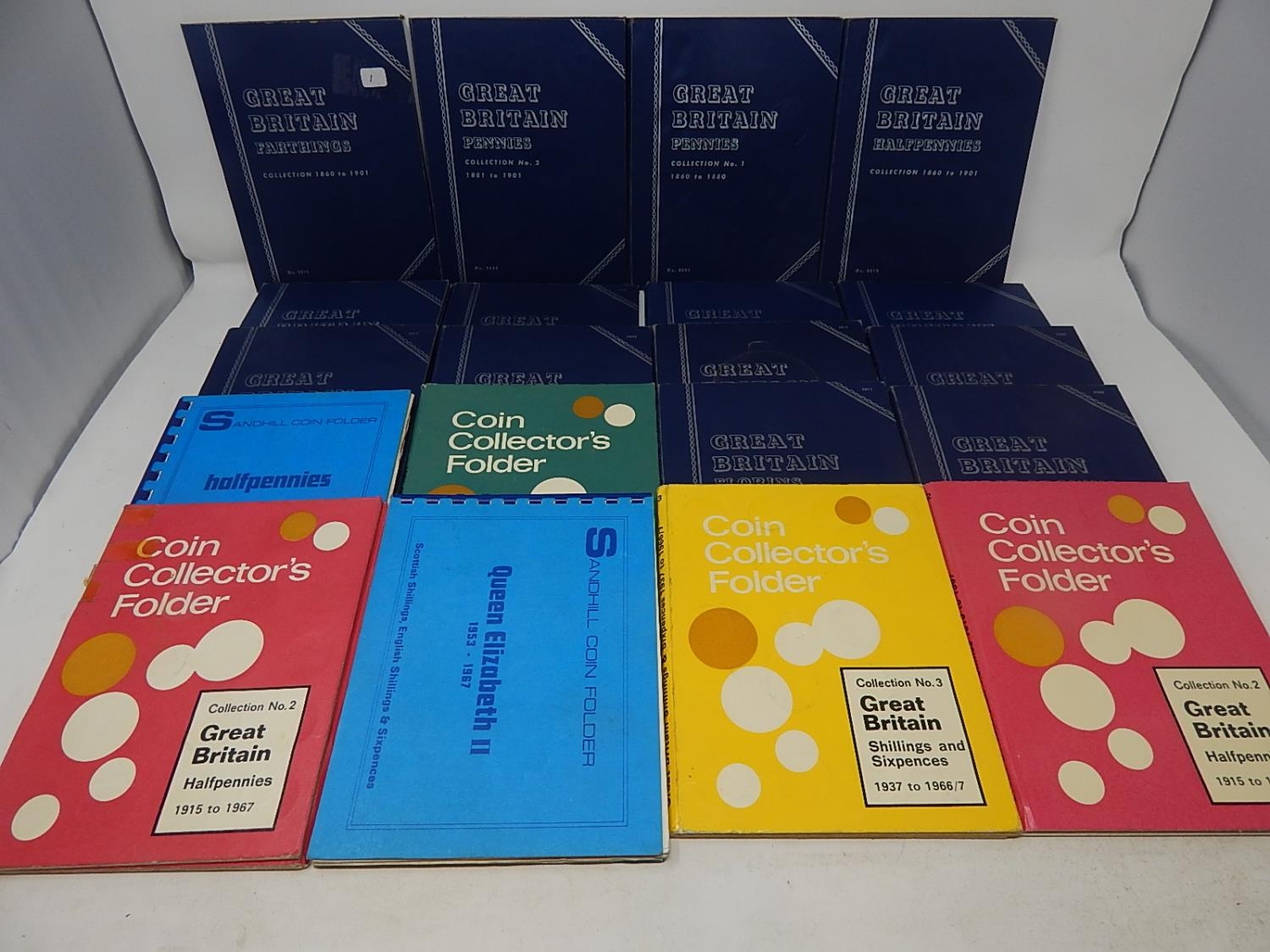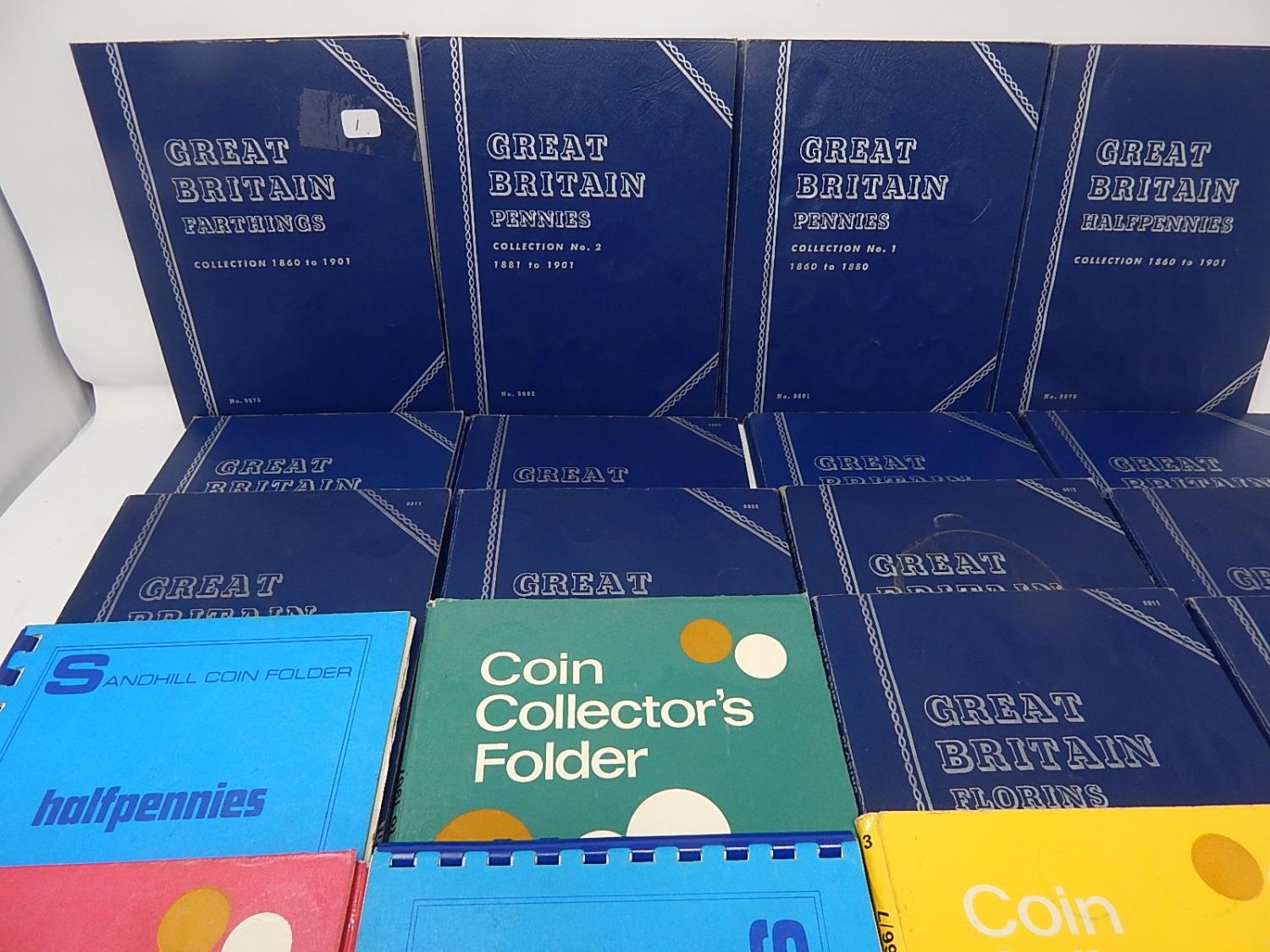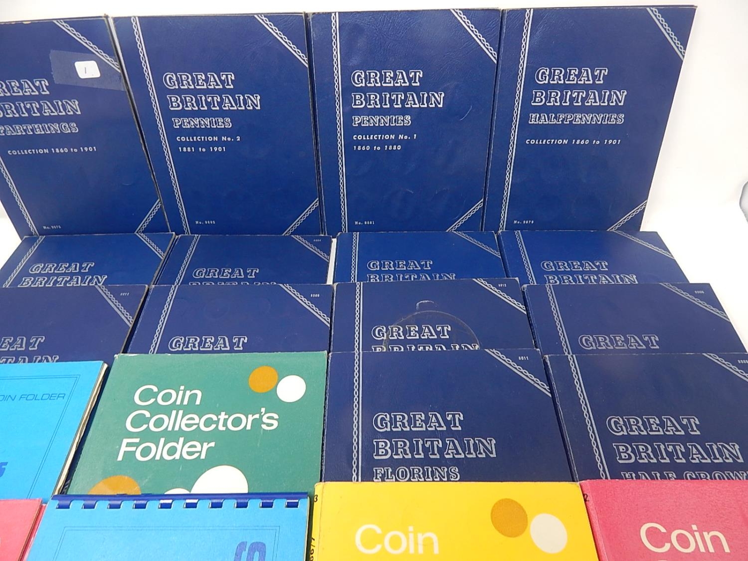 A large collection of coins housed in vintage Whitman and other folders, together with some empty folders
