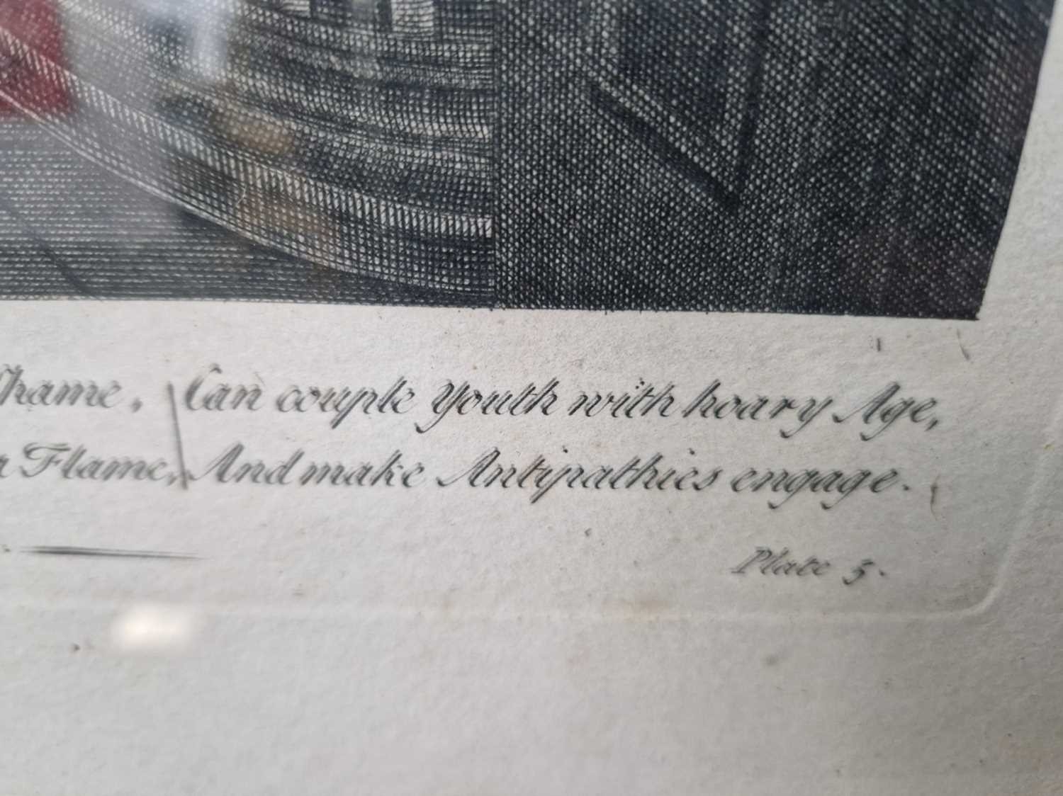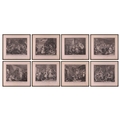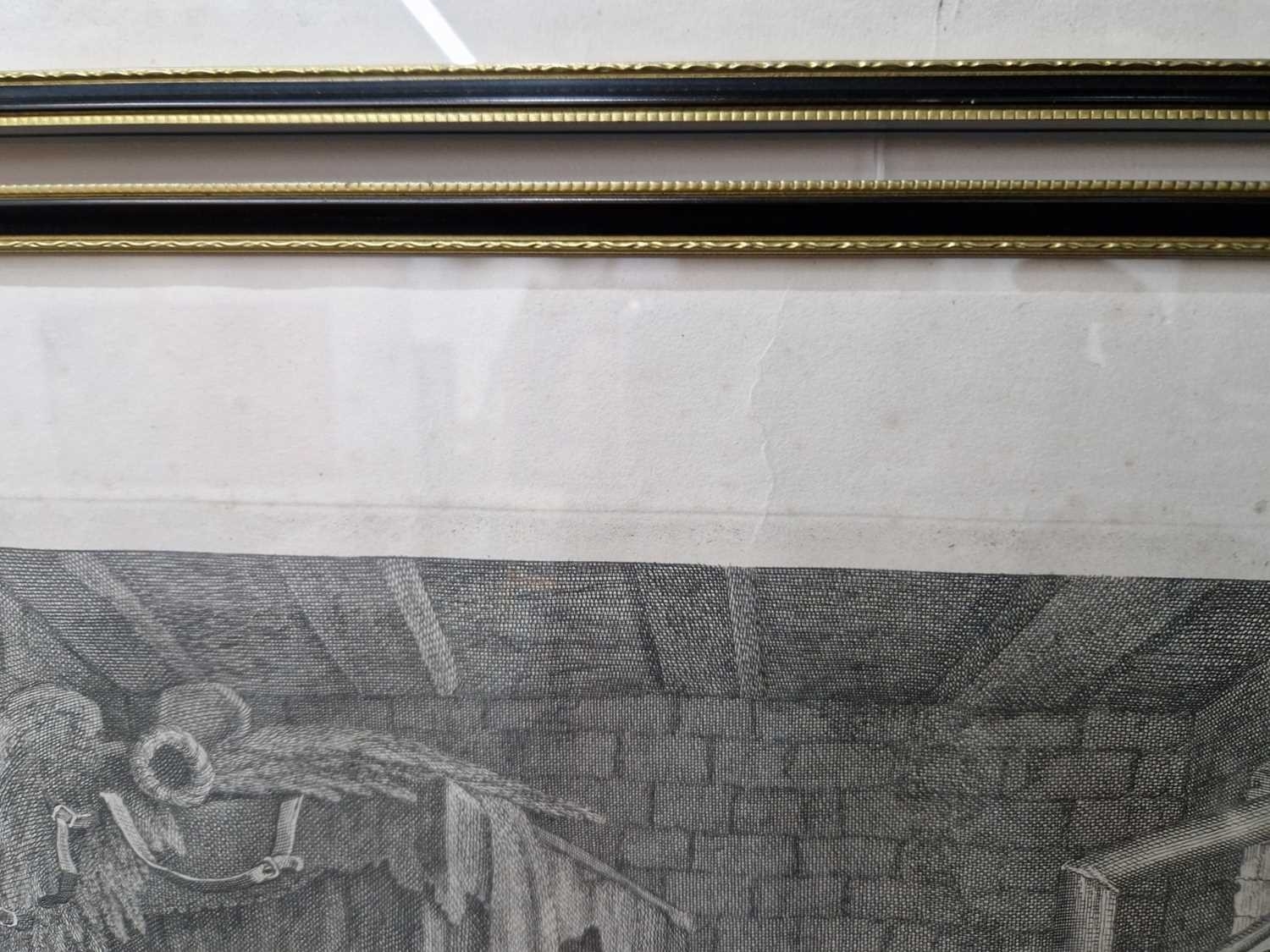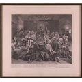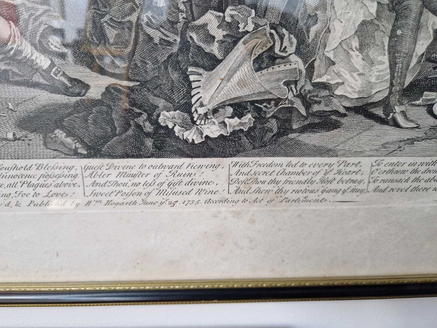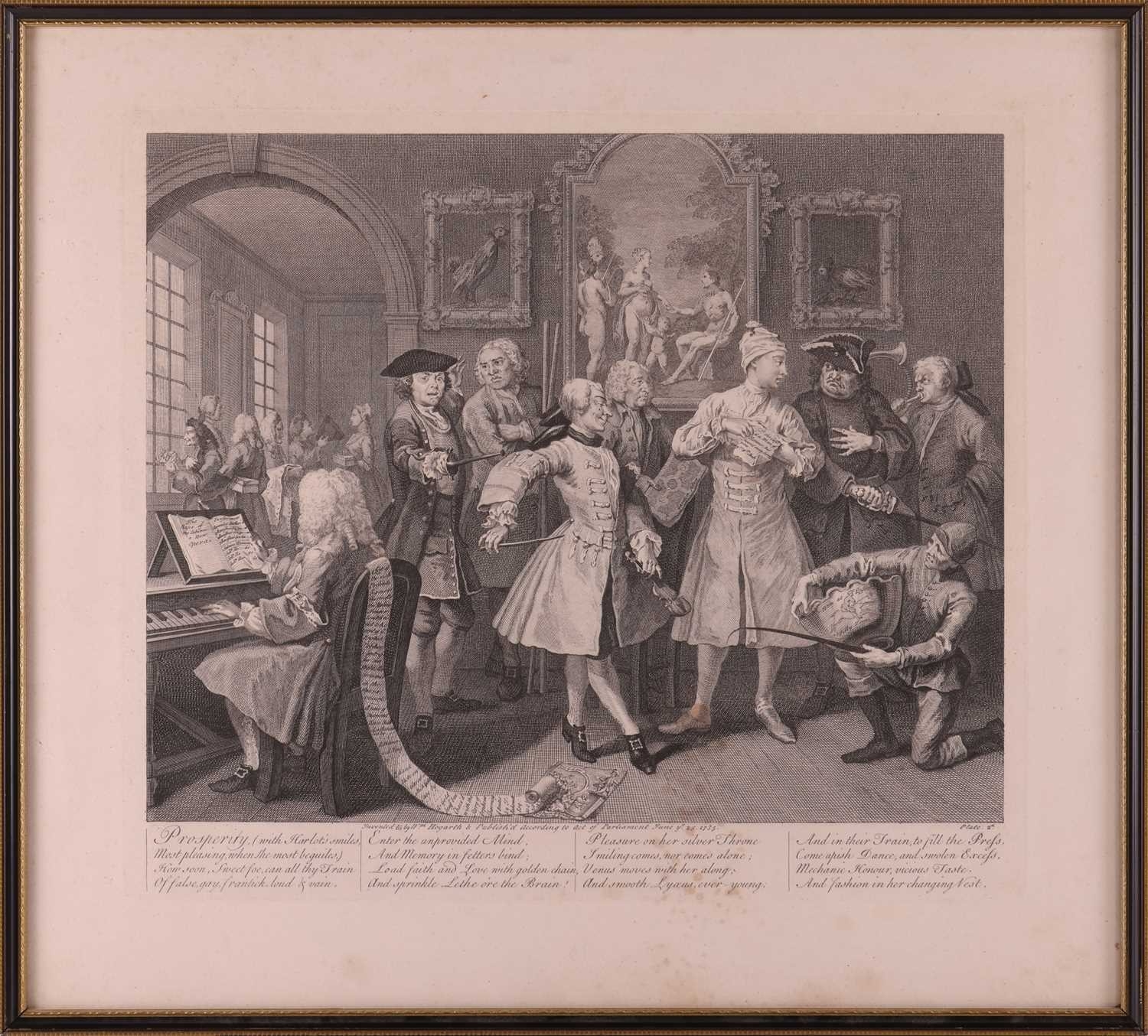 After William Hogarth (1697 - 1764), The Rake's Progress, a set of eight engravings, plate 8 retouched by the author 1763 (third state of three), plate 35.5 x 41 cm, sheet 45 x 50 cm, framed and glazed 47 x 52 cm Qty: (8) All plates have a publication date of June 25 1735, Plate 6 - 'Sold at Ye Golden Head in Leicester Fields London'. Double impression of text on plates 1 and 5. Foxing and discolouring of paper throughout commensurate with age. Some slight creases visible but no signs of tears. The prints have not been inspected out of the frames.