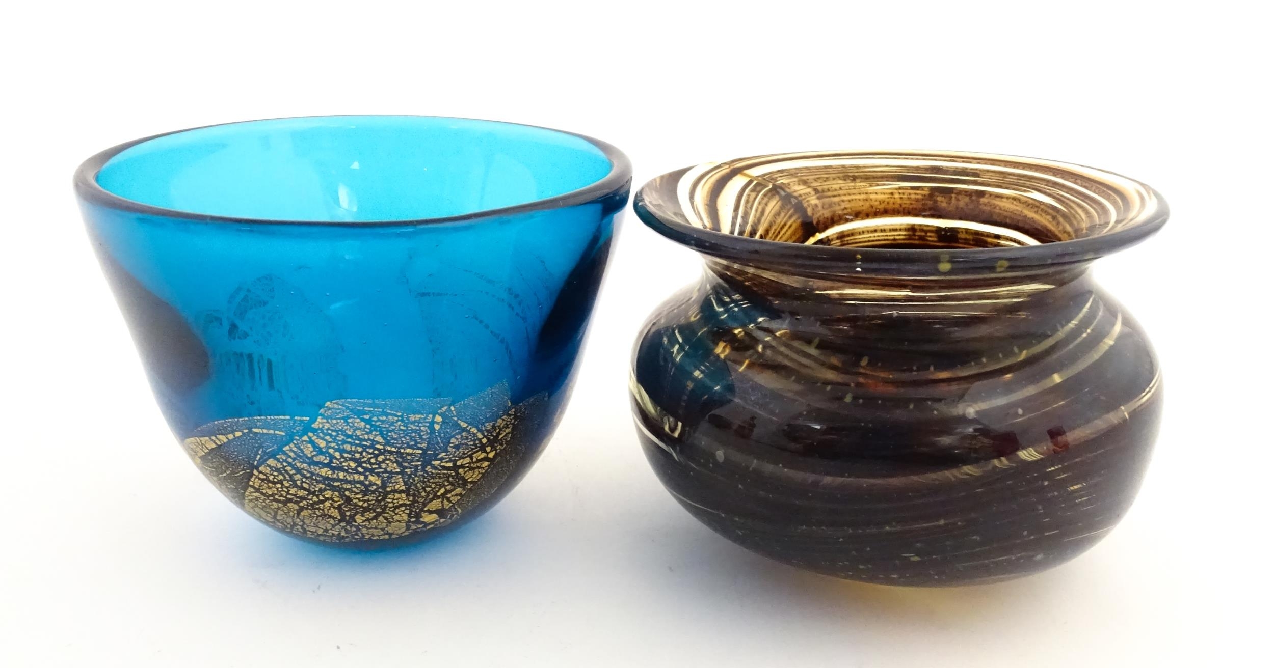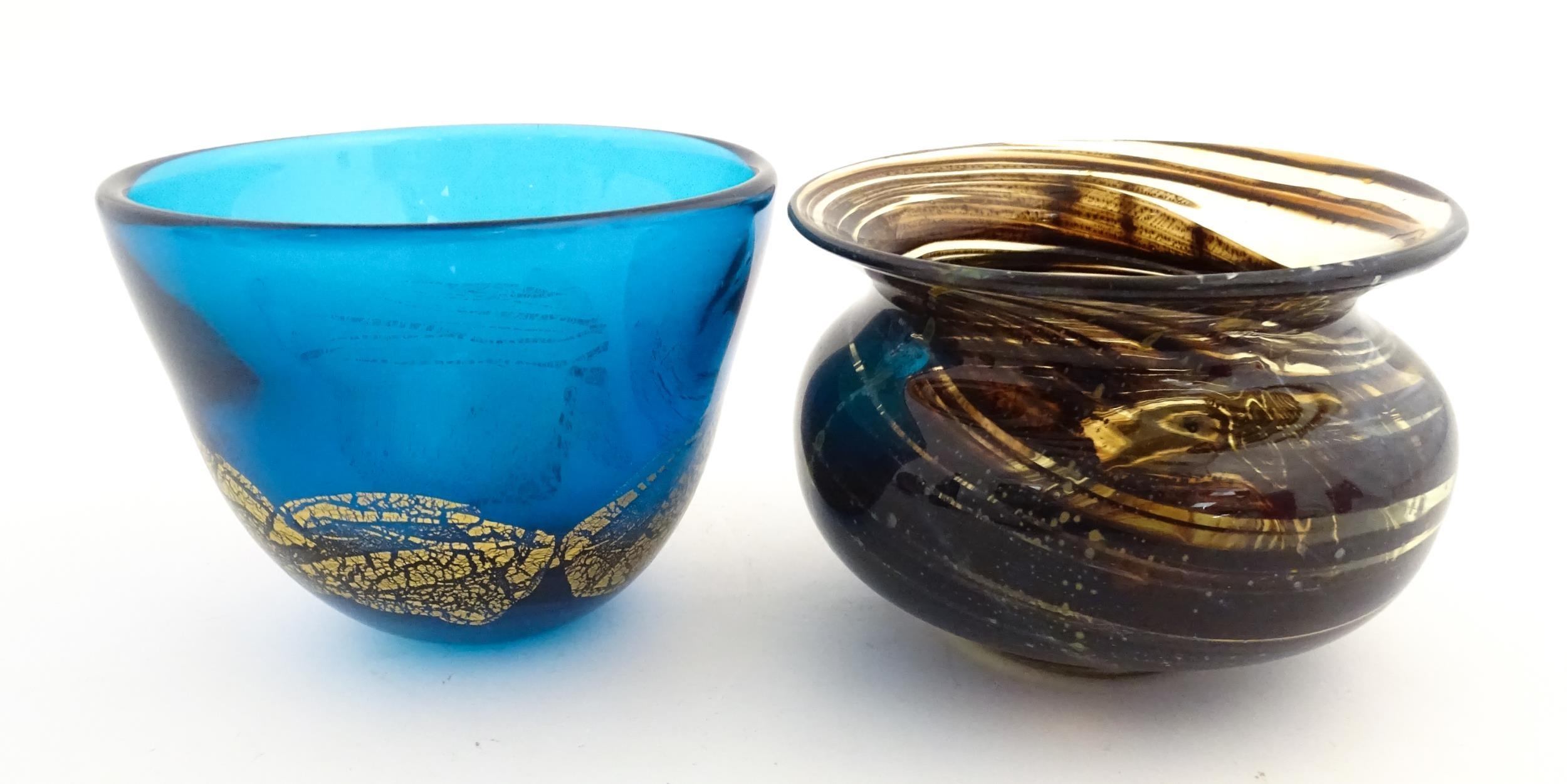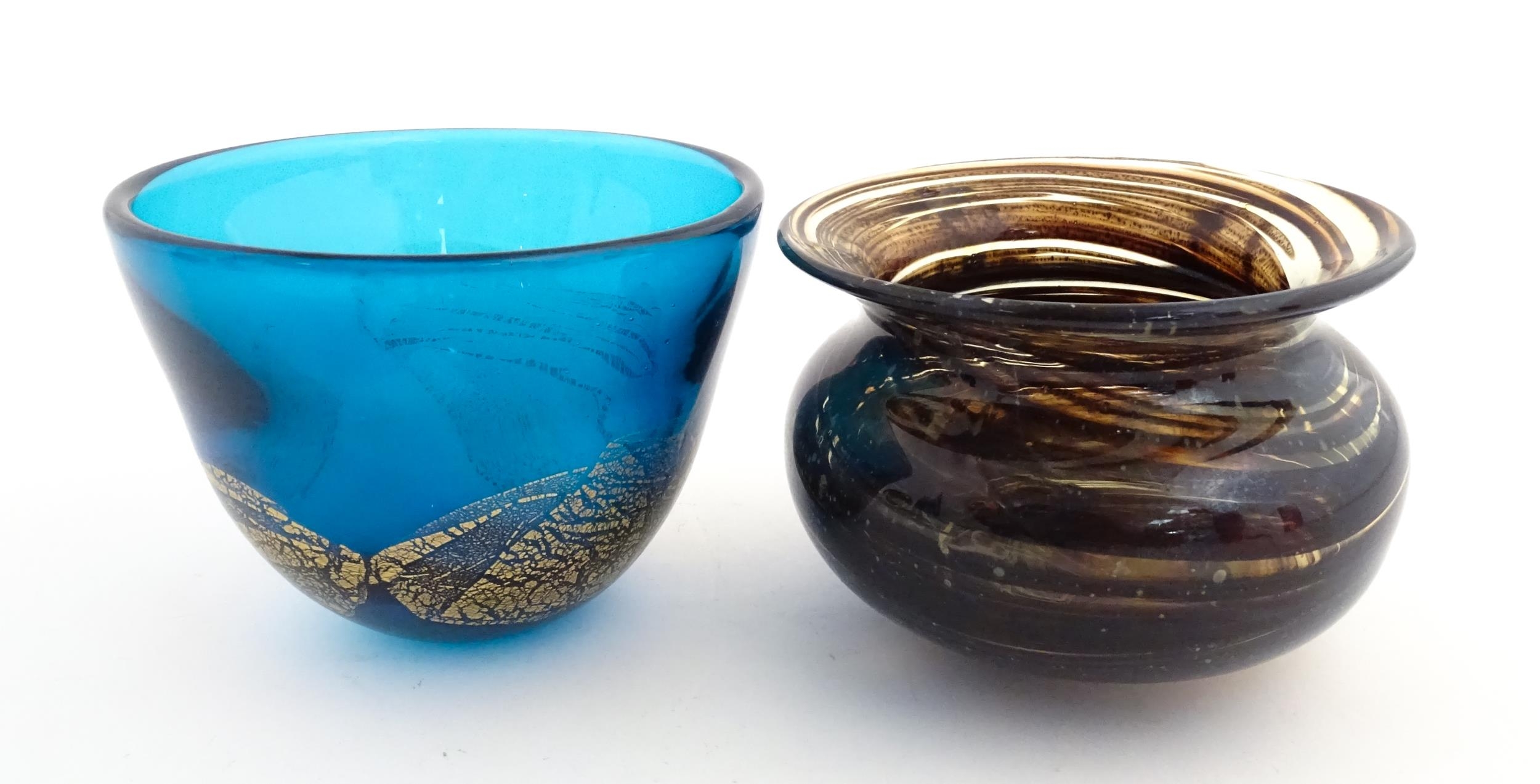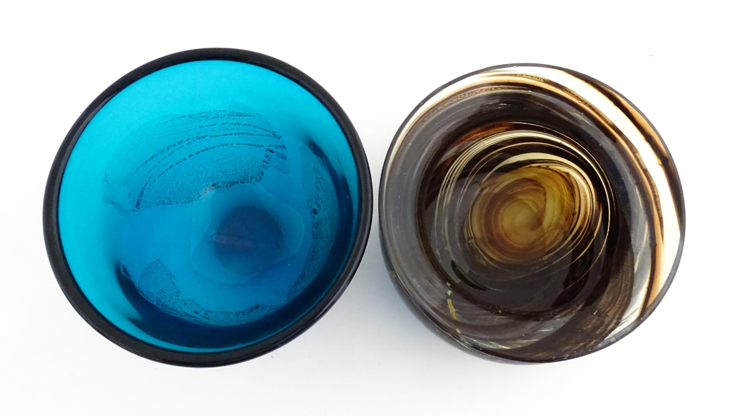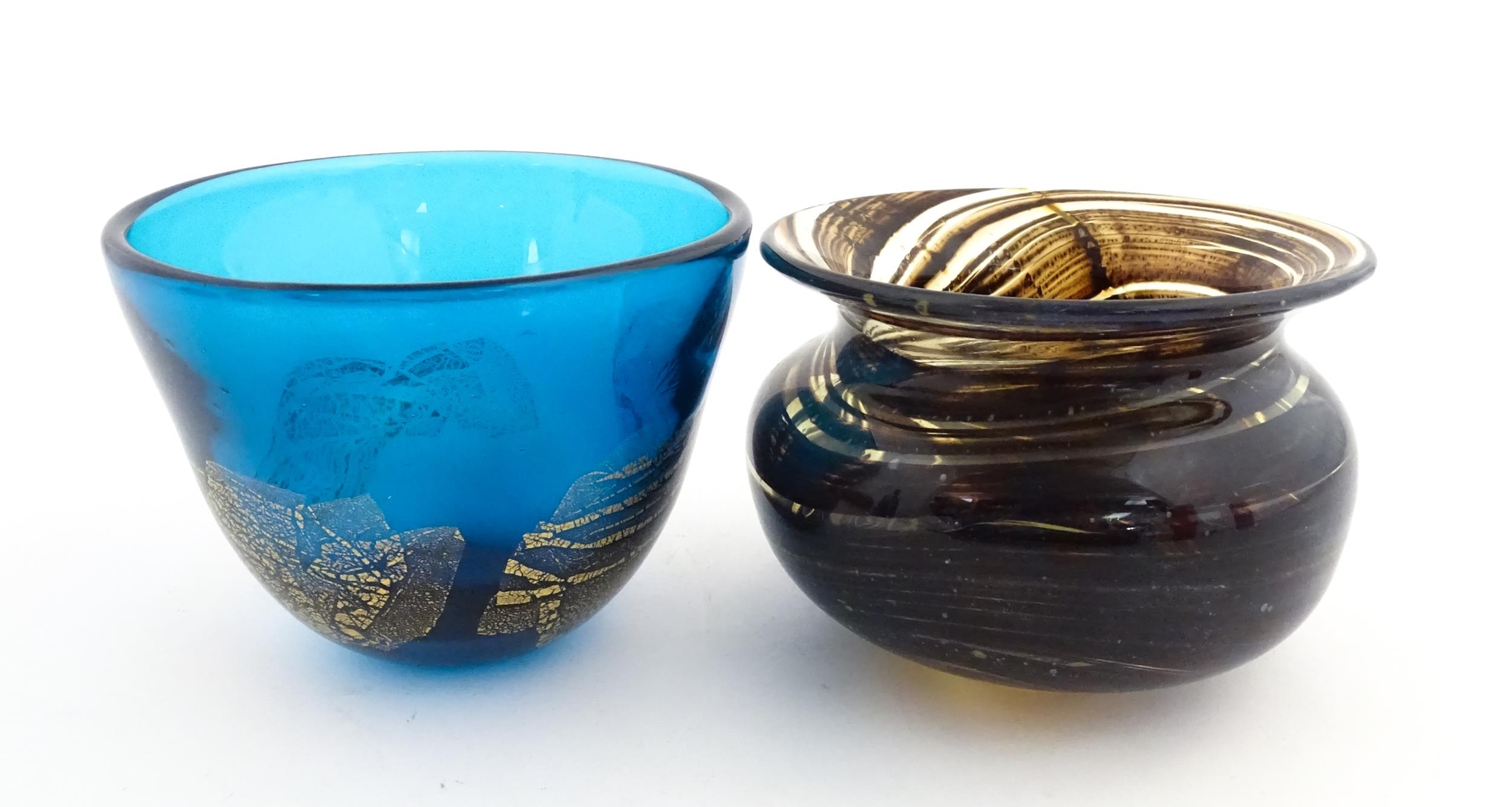 A Maltese glass bowl signed under Fujisawa Malta 2002, together with another studio glass bowl, unsigned. The largest approx 4" high (2)