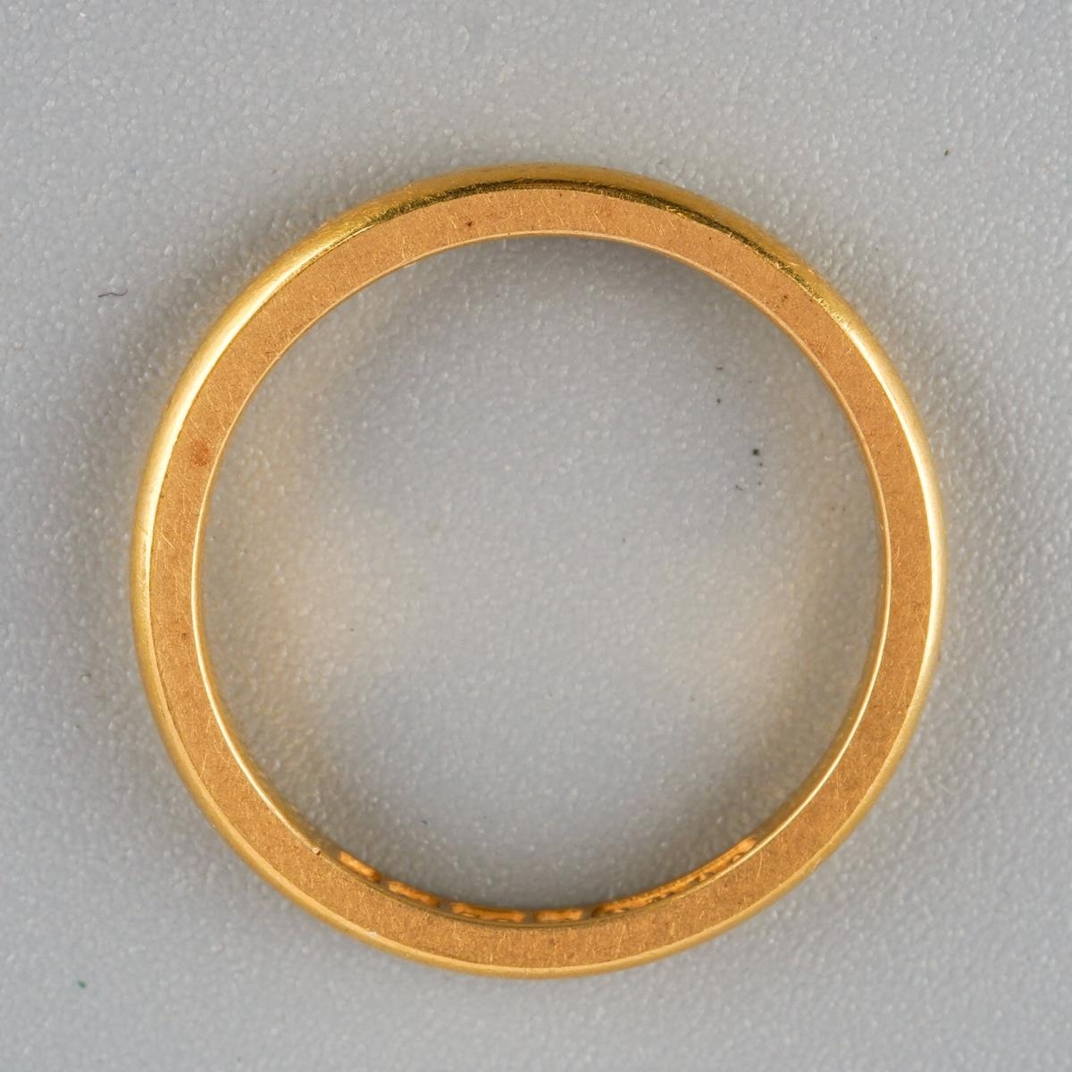 A 22ct gold wedding band. Hallmarked 22ct gold, approx ring size H 1/2, approx gross weight 3.2 grams.