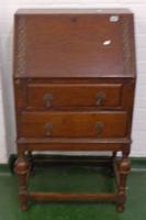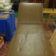 Hardwood Doctor's Inspection Couch on rounded corner square section supports, adjustable headrest, pull out slides