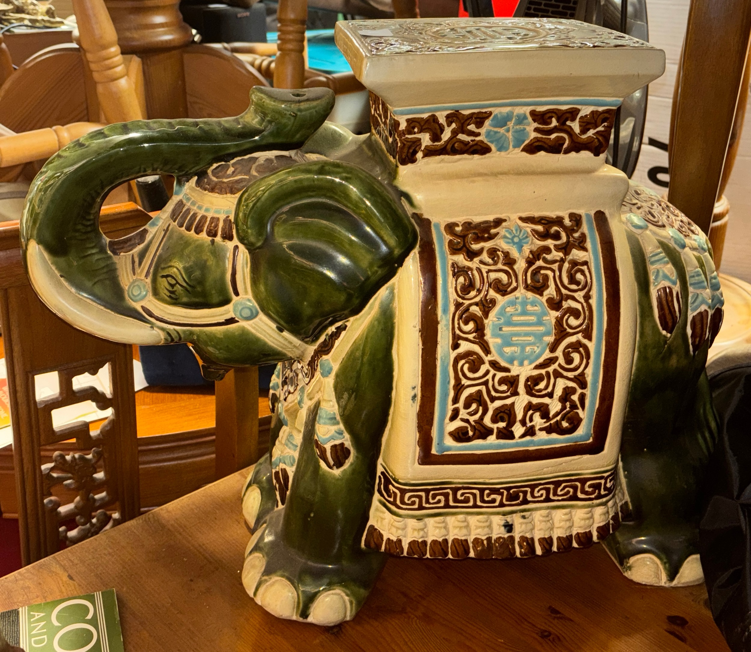 POTTERY CAPARISONED ELEPHANT STOOL