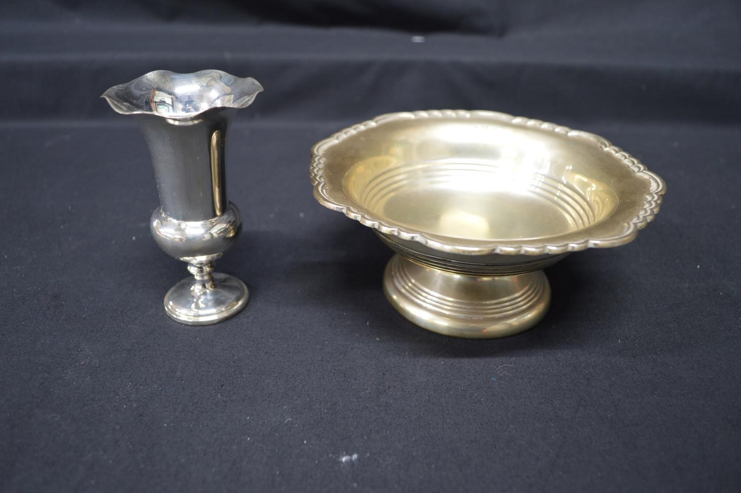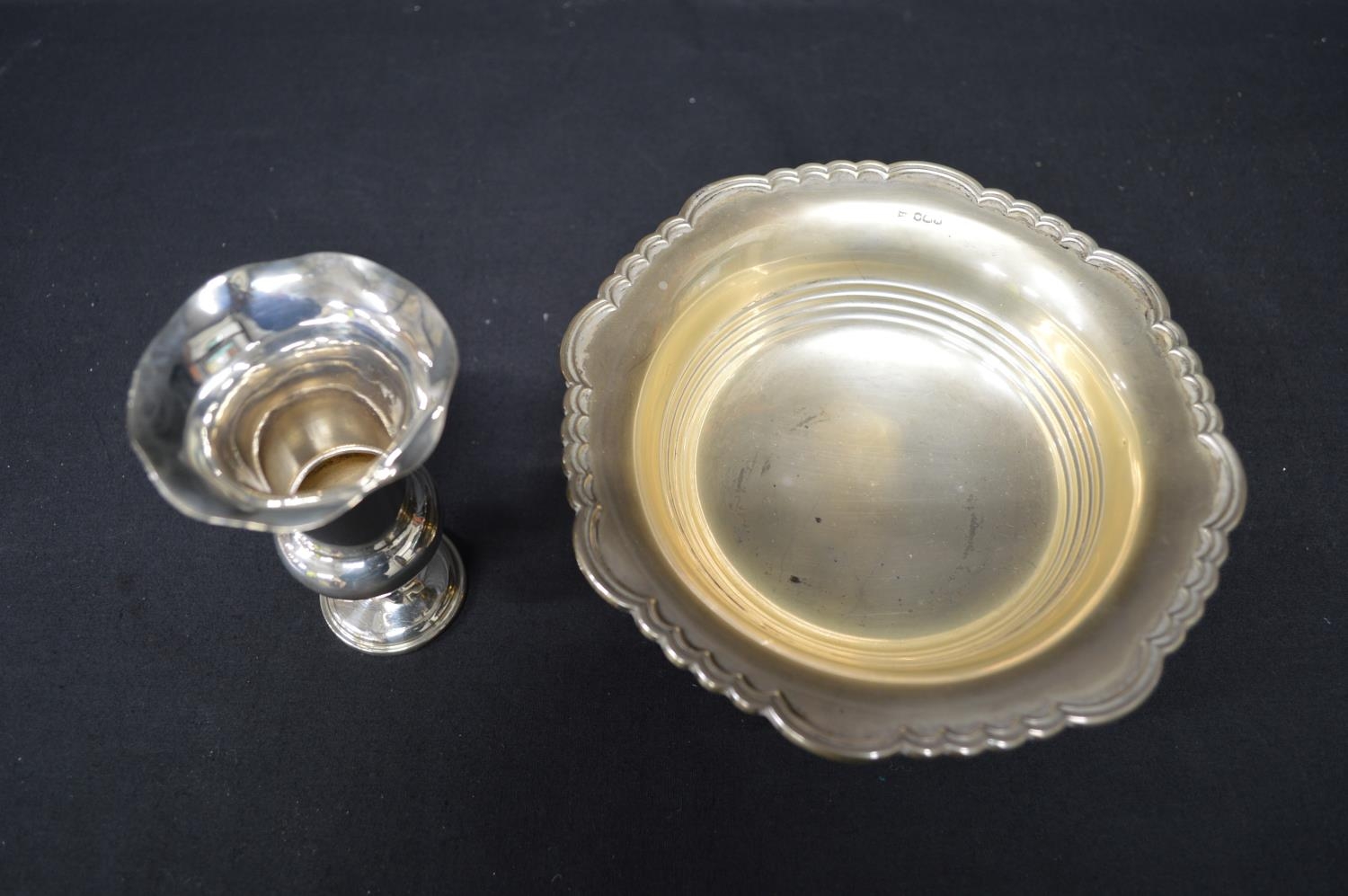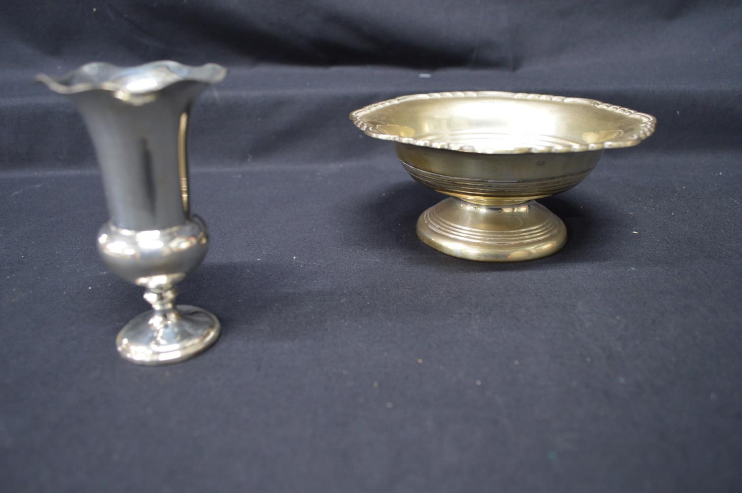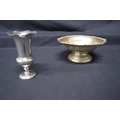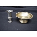 Walker & Hall silver bon bon dish on circular base, hallmarked for Sheffield (5.2ozt) together with a small vase hallmarked London with weighted base