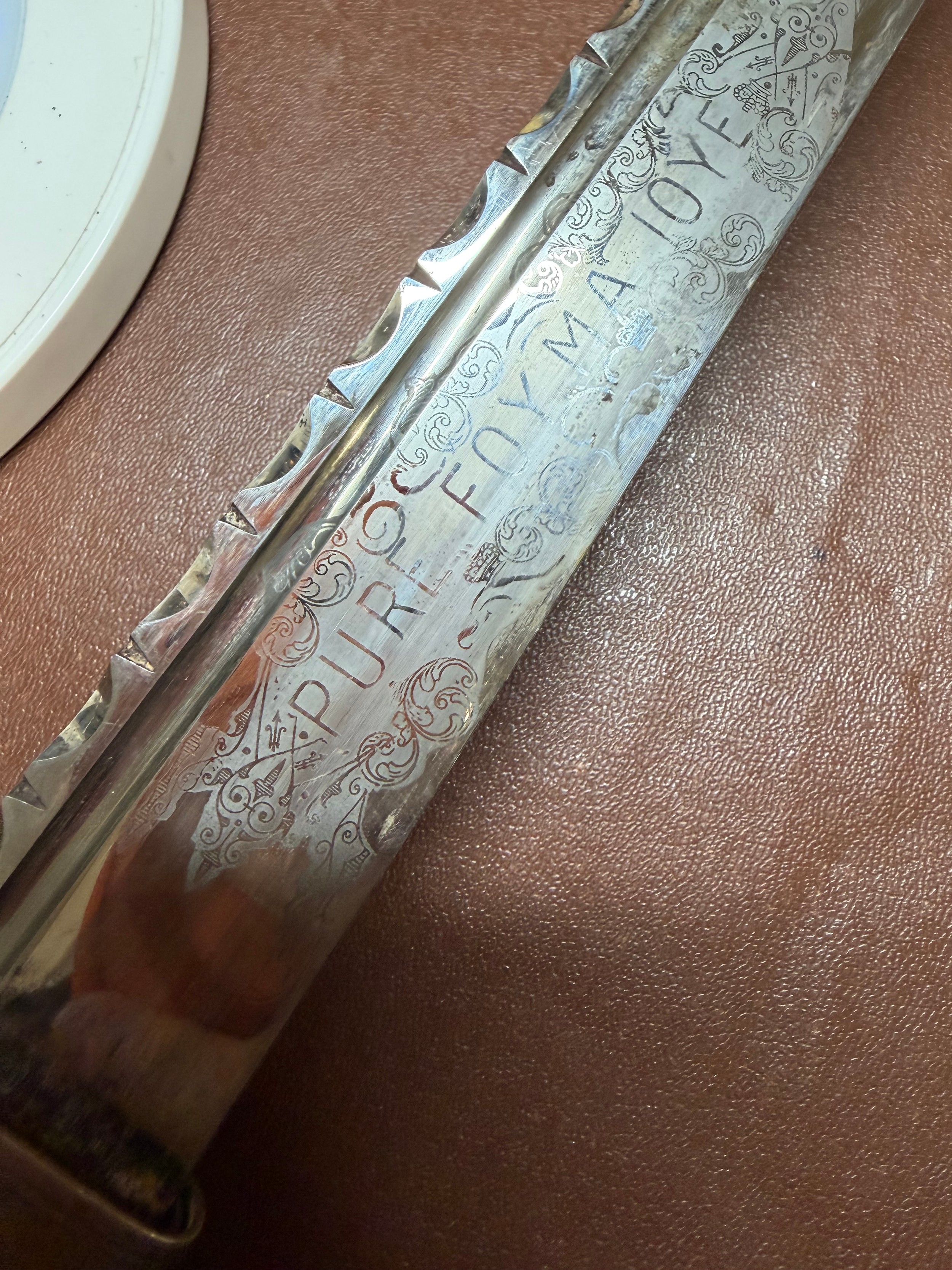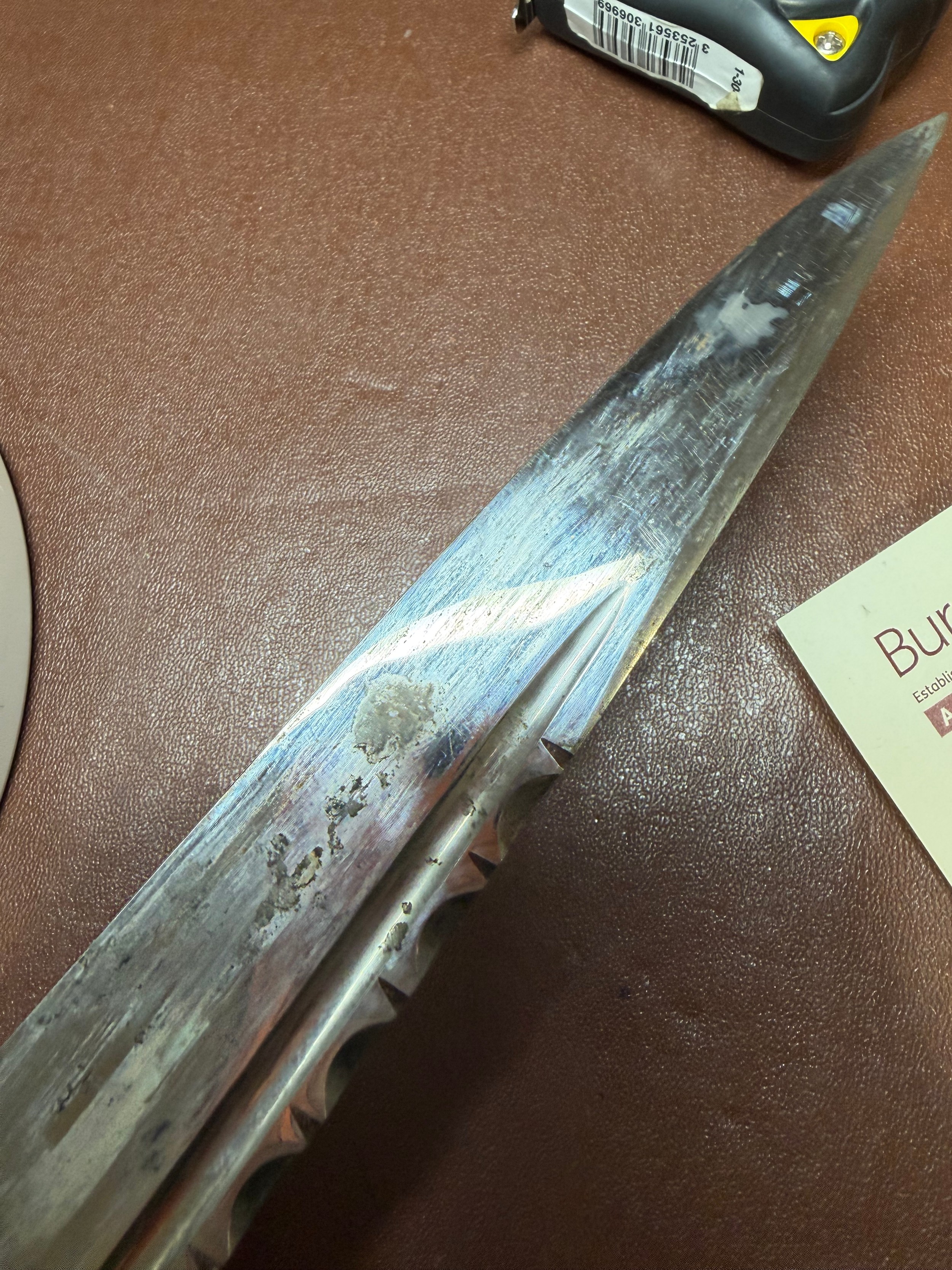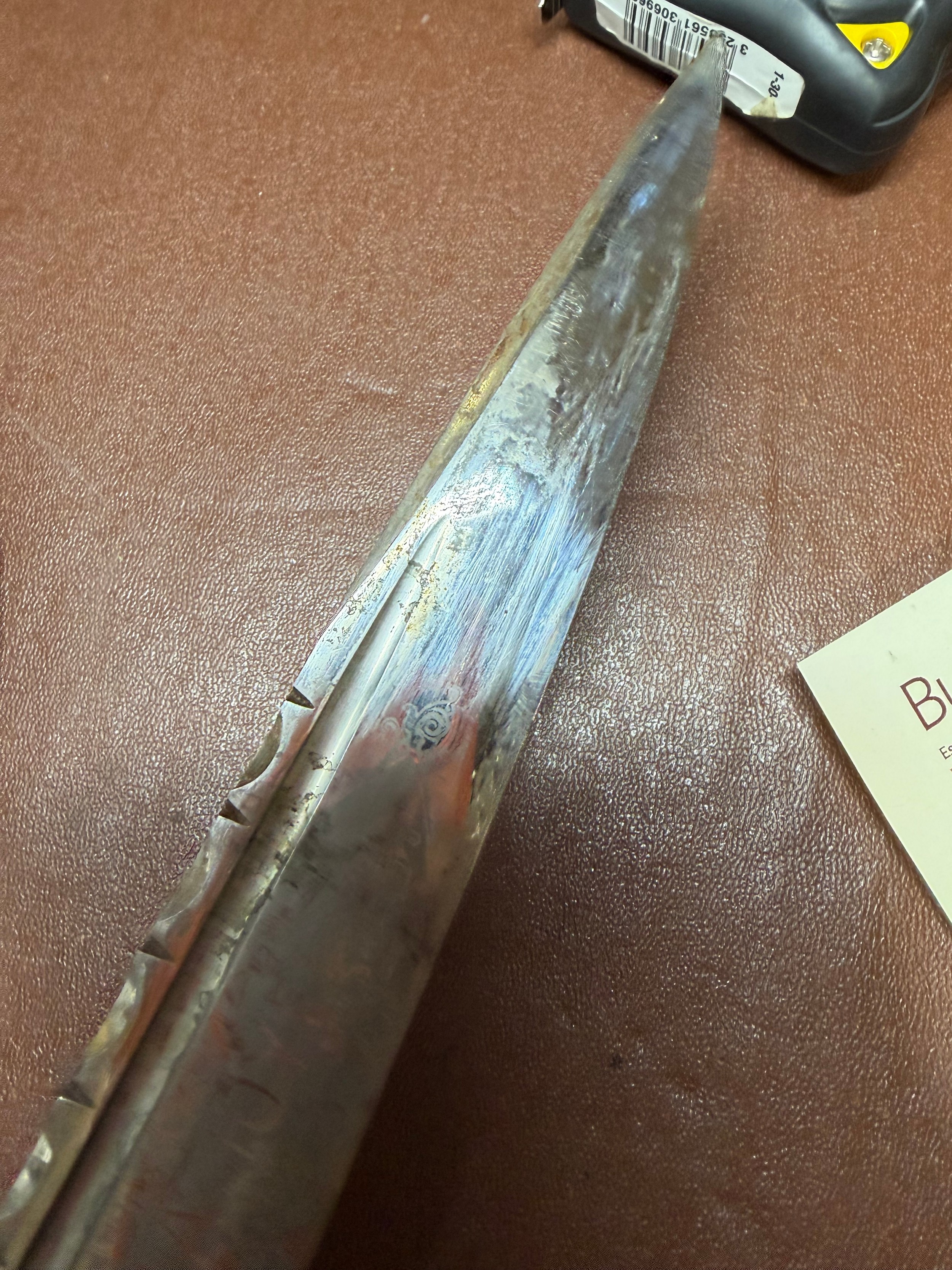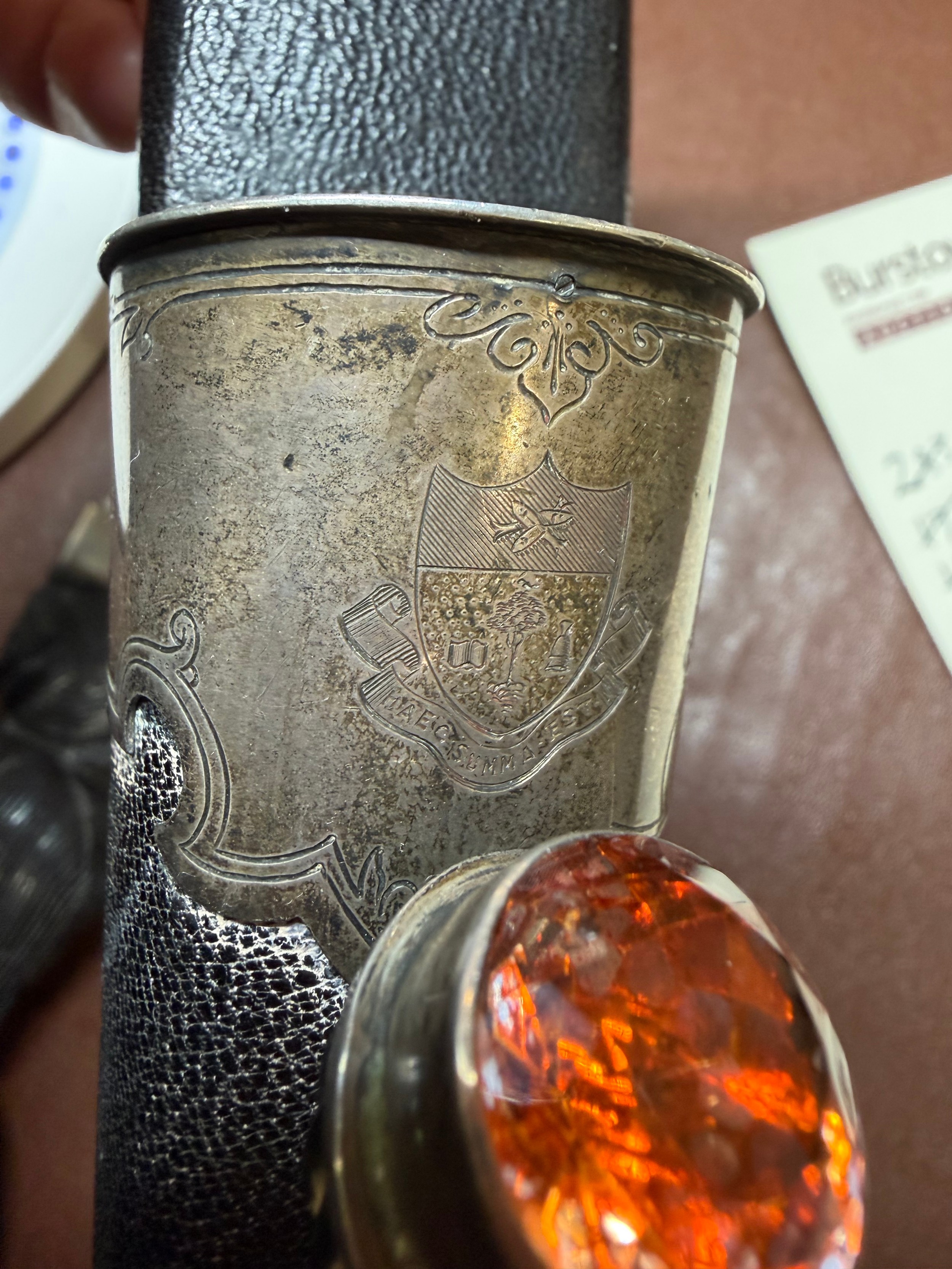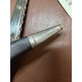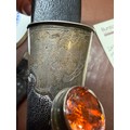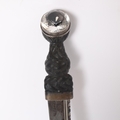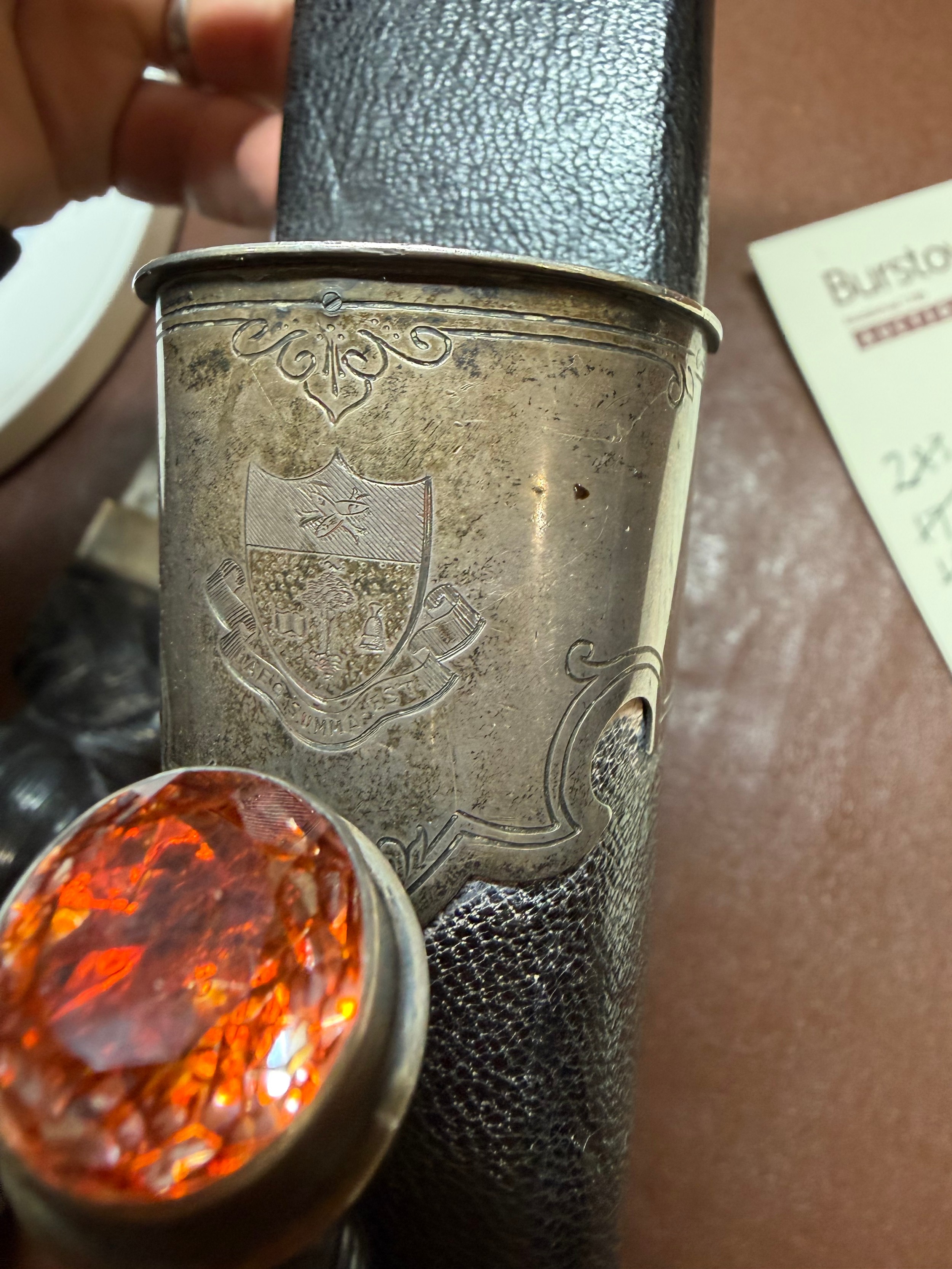 A George V Scottish silver-mounted dirk, with ebonised basket-weave hilt, the pommel set with a cut-glass Cairngorm, leather-covered scabbard, with companion fork (knife missing), hallmarks 1911, length 44cm
