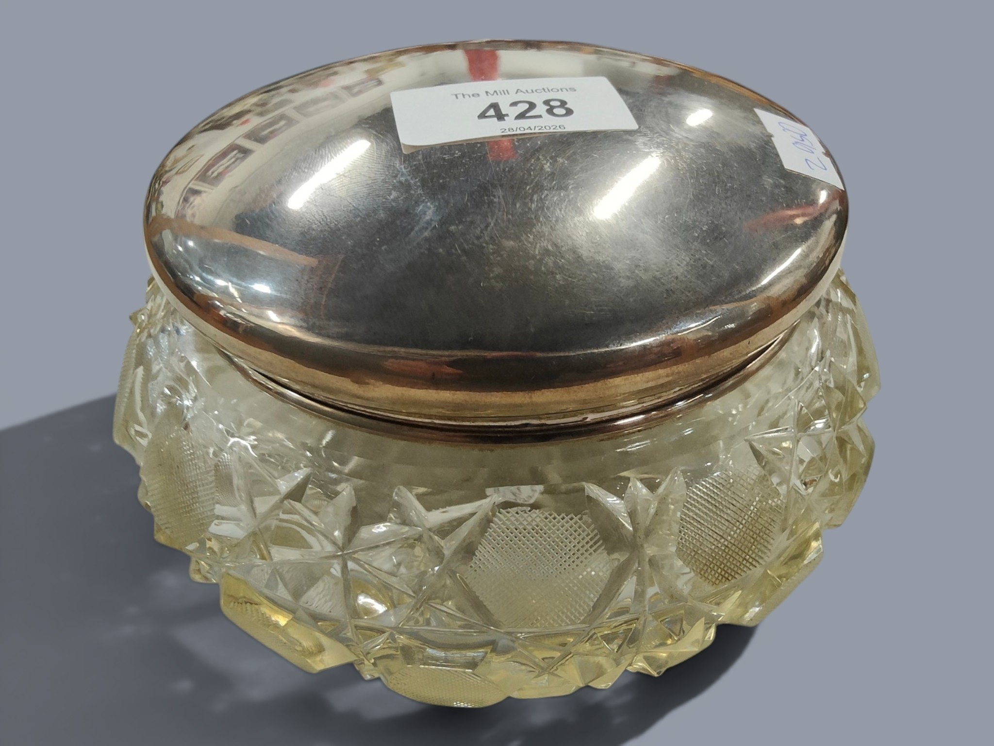 LARGE SILVER TOPPED DRESSING TABLE POT
