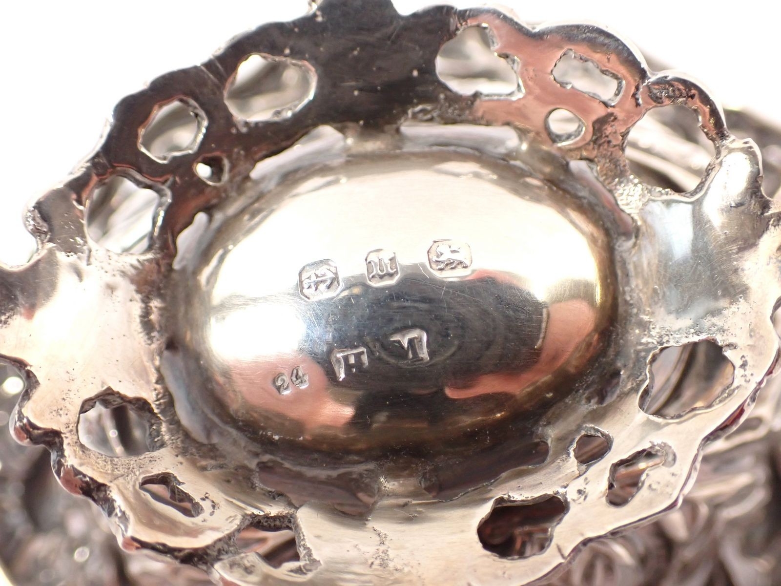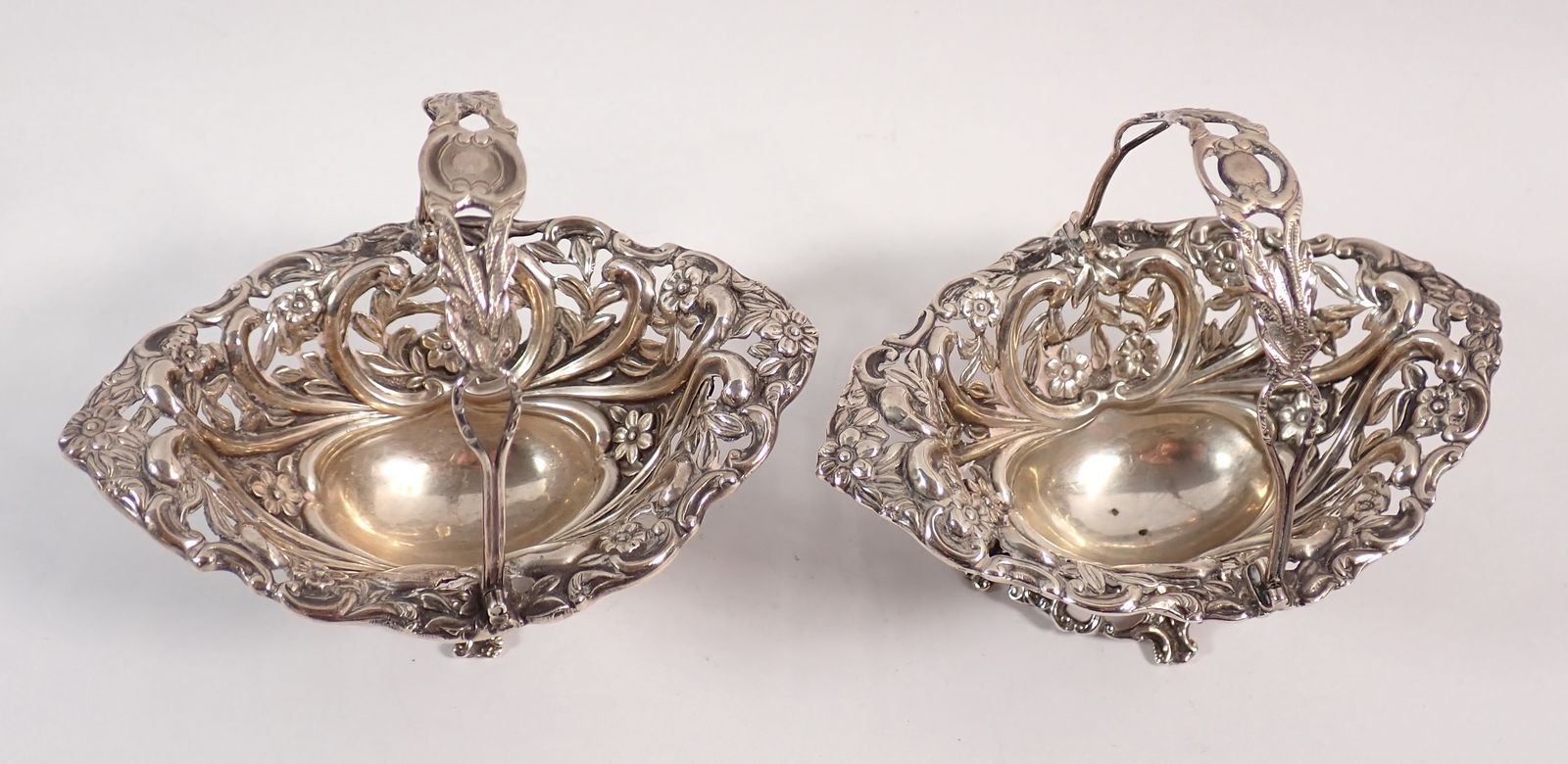 A pair of silver miniature baskets with embossed and pierced...